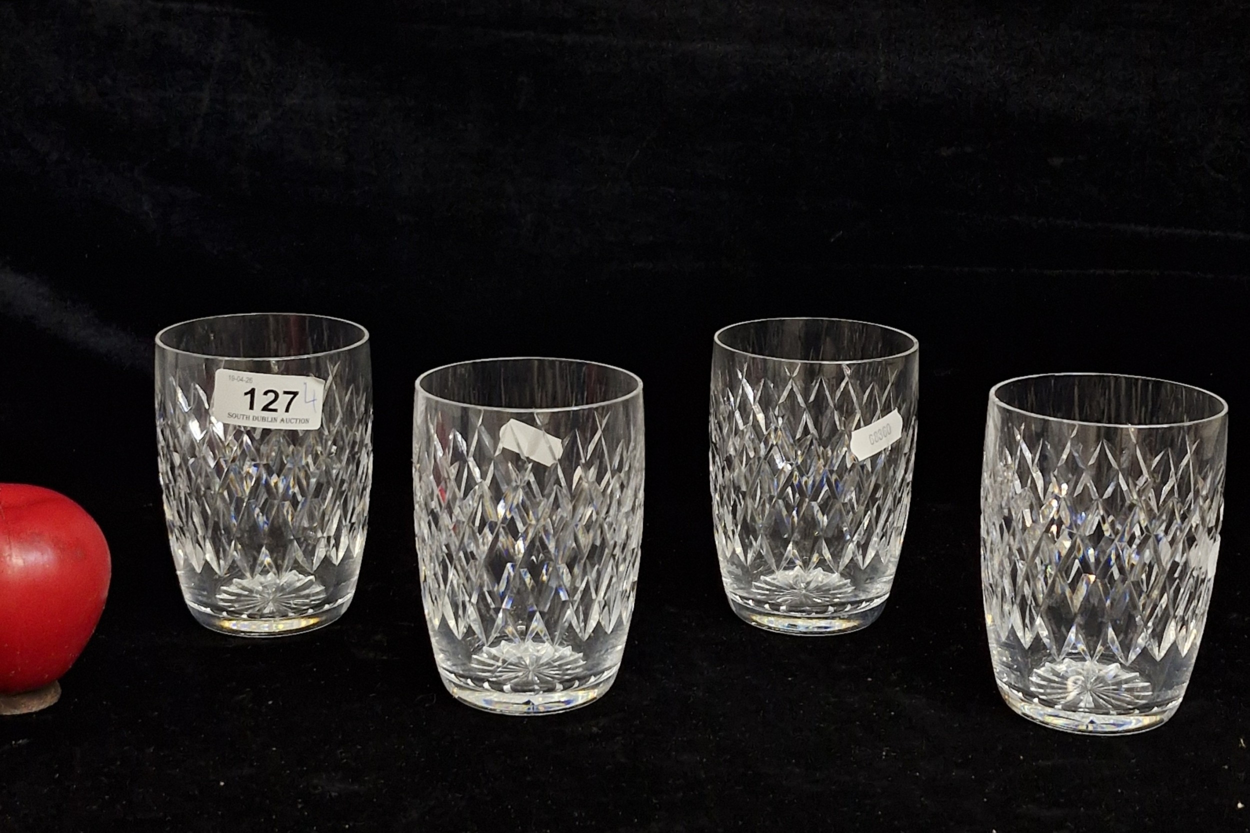 Four Waterford Crystal tumblers in the Boyne pattern. All in good condition with acid marks.