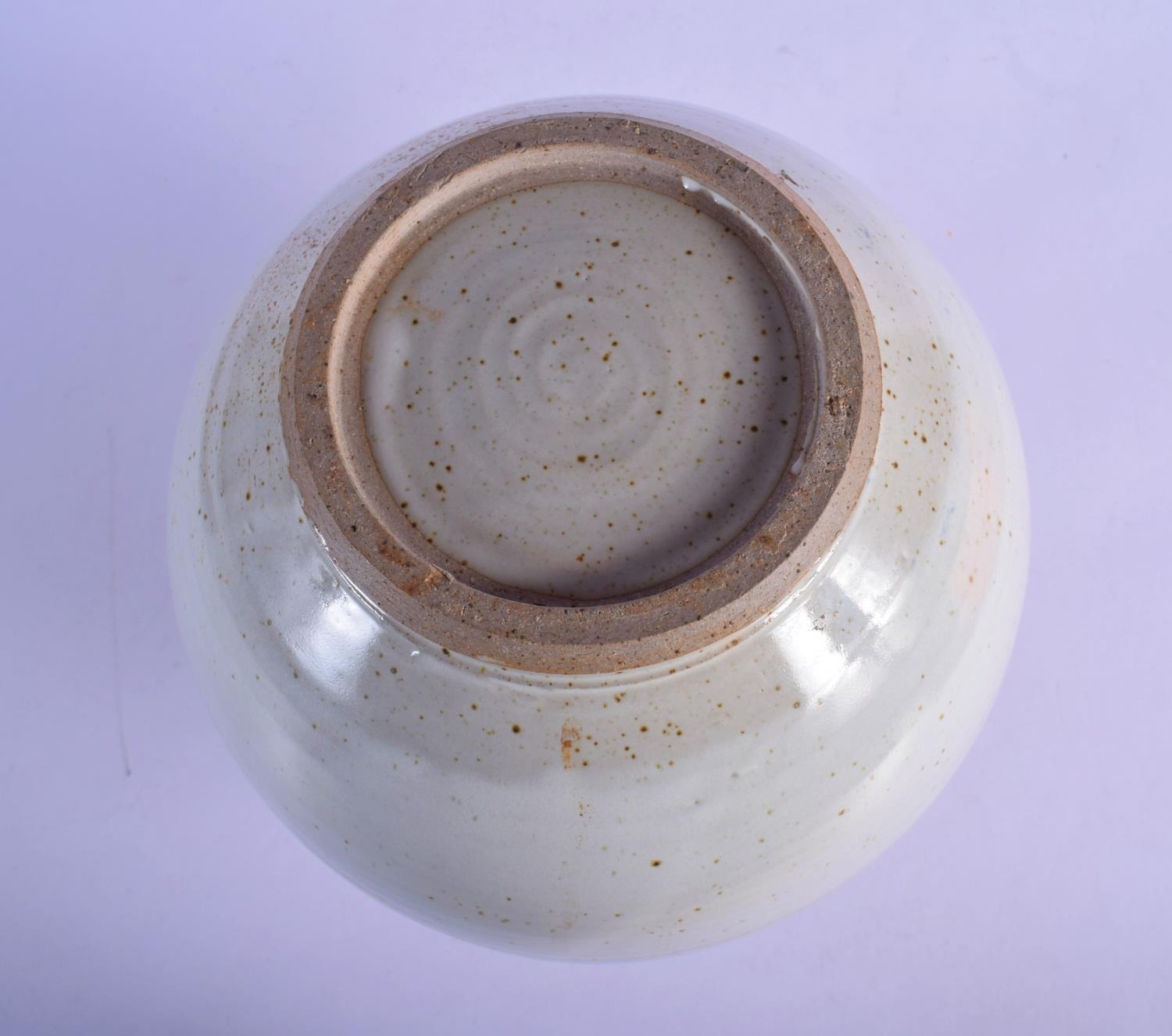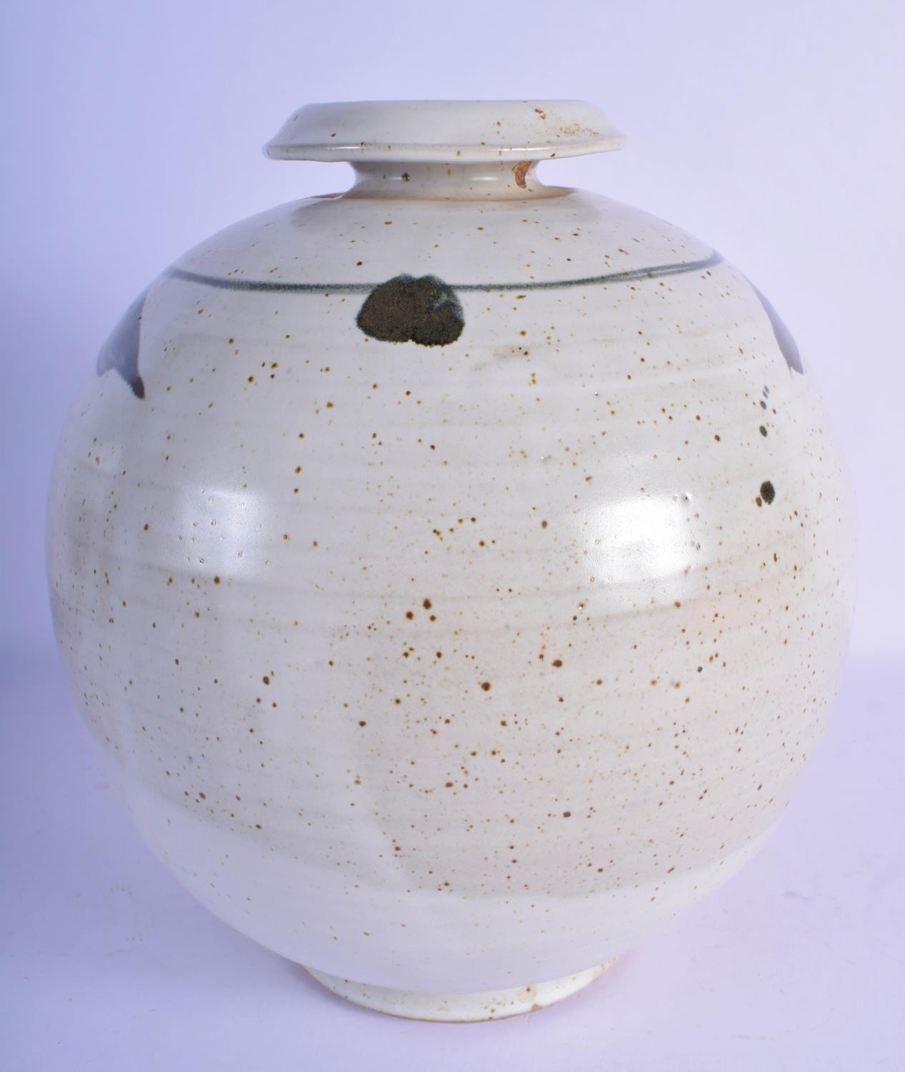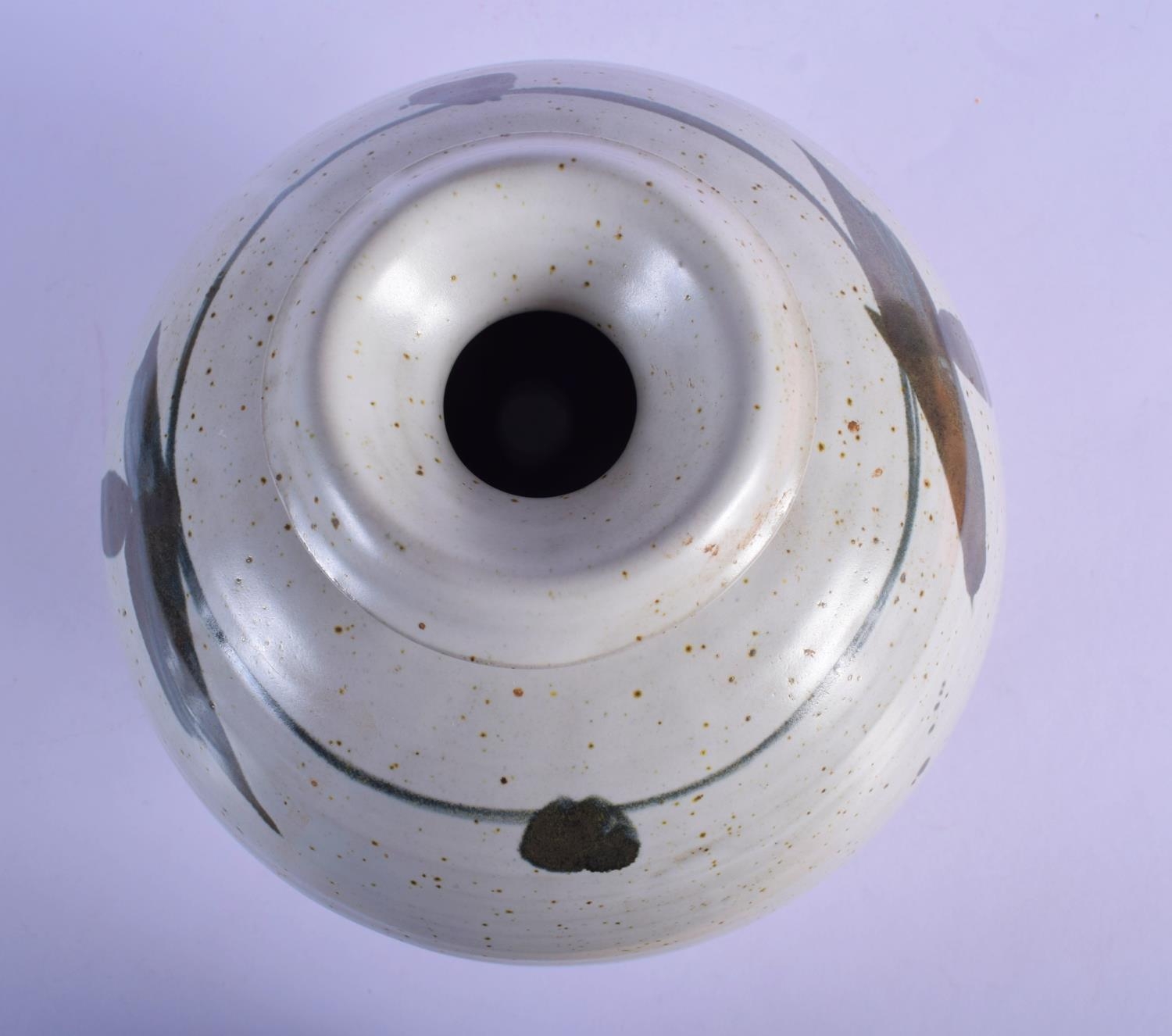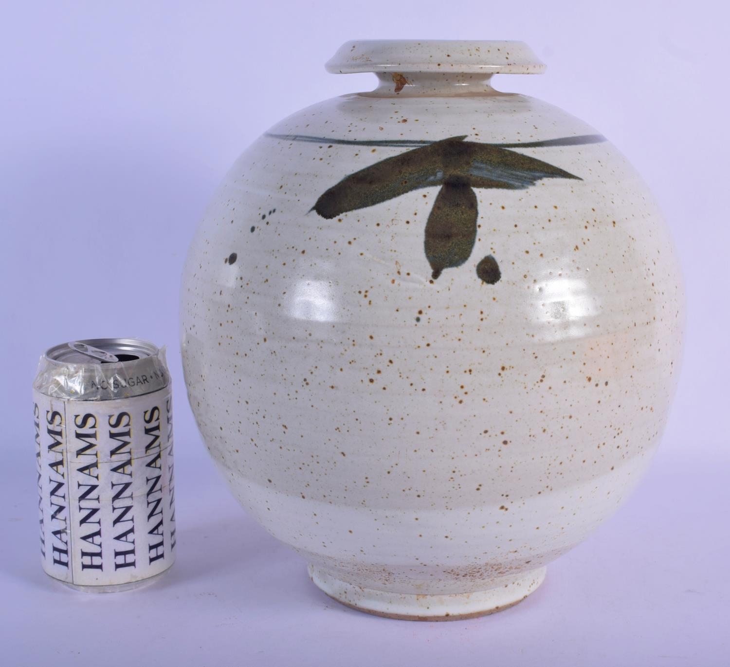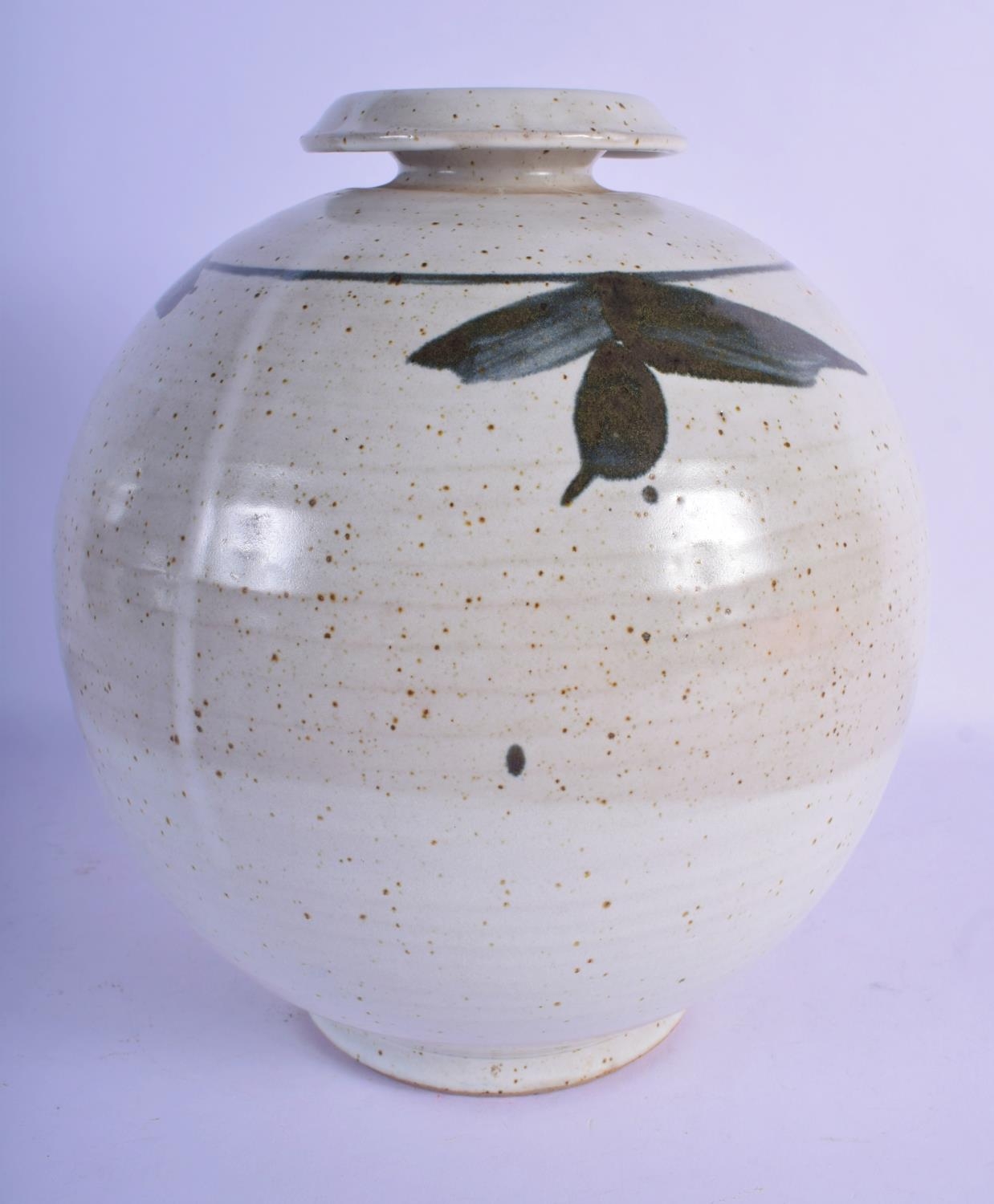 A LARGE STUDIO POTTERY STONEWARE VASE painted with sprays. 26 cm x 18 cm.