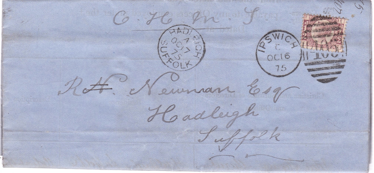 Great Britain 1875-O.H.M.S (m/s) Suffolk env Ipswich (very fine duplex on 1/2d rose) to Hadleigh, Tax Return