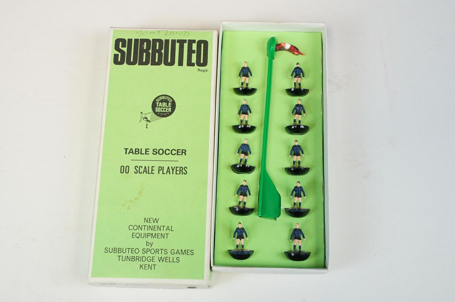 Subbuteo - Five boxed HW teams to include Coventry City, Belgium, Real Madrid, Inter Milan and Blackpool plus 2 x goals and cloth pitch