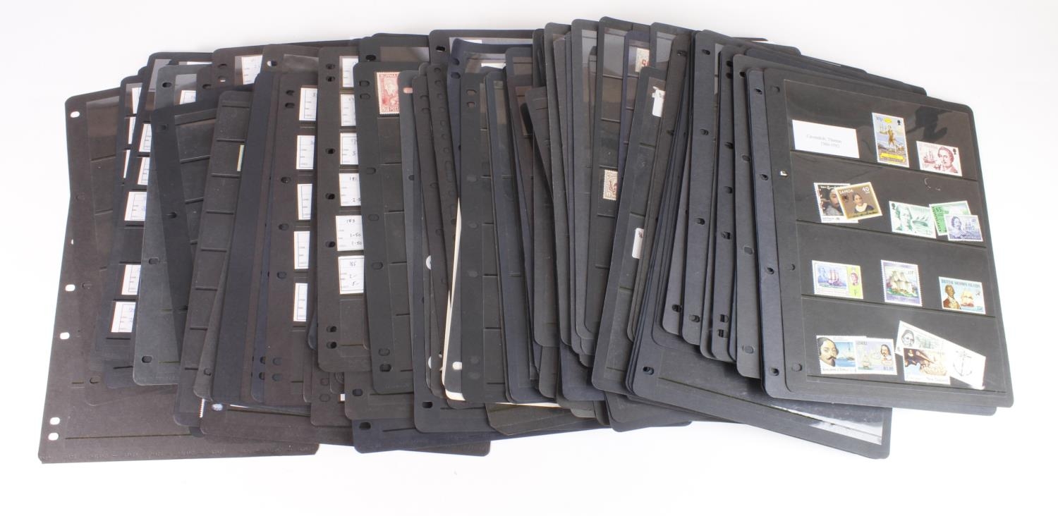 Cardboard tray with a large qty of hagners with stamps, useful lot with good values, thematics, etc etc. (Qty)
