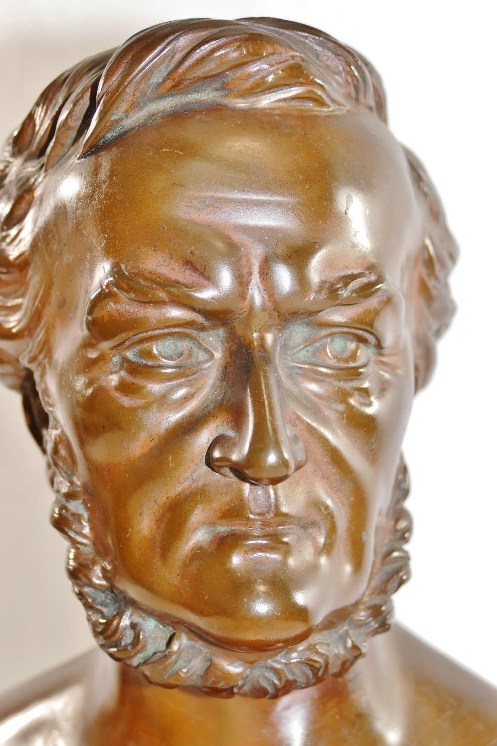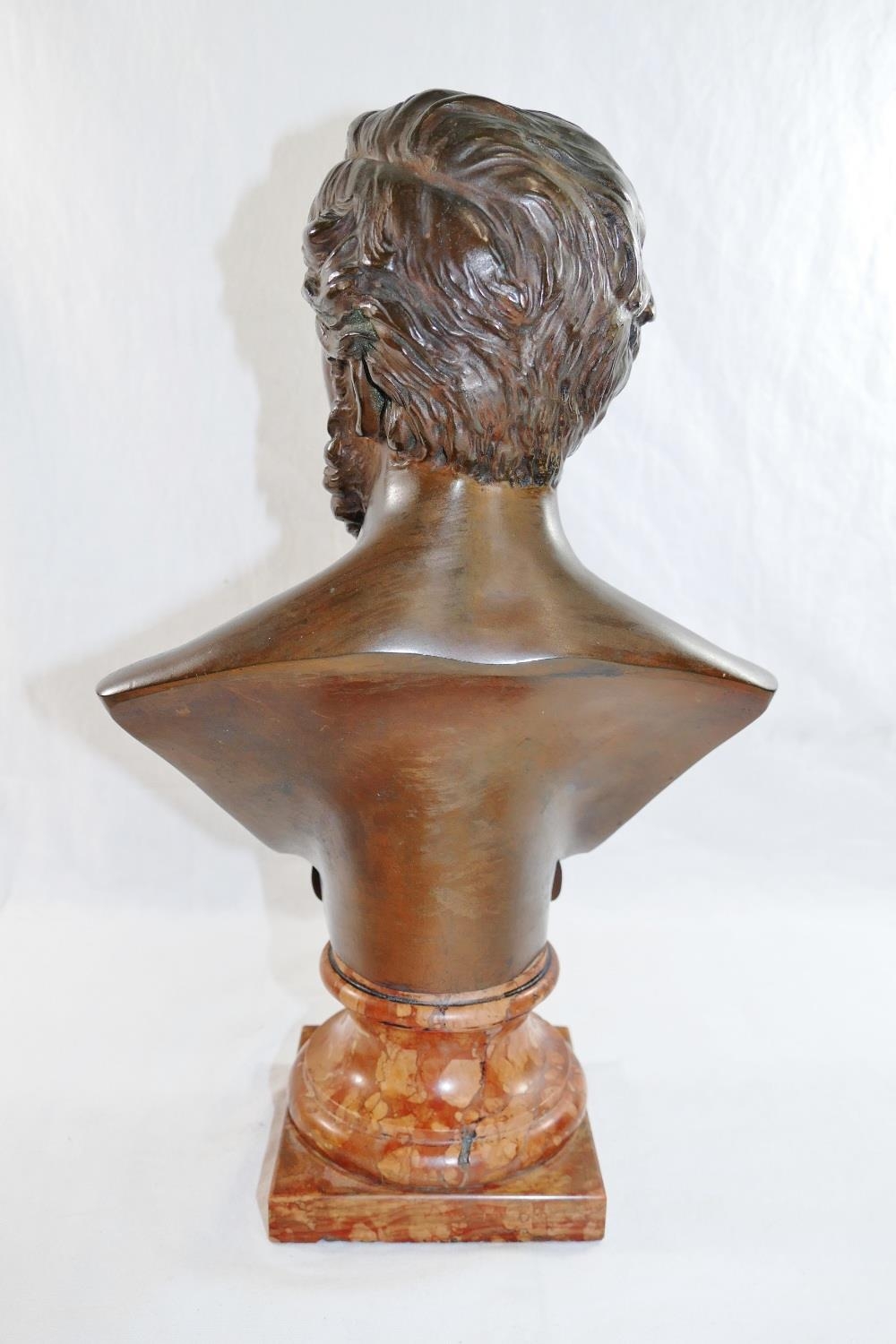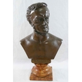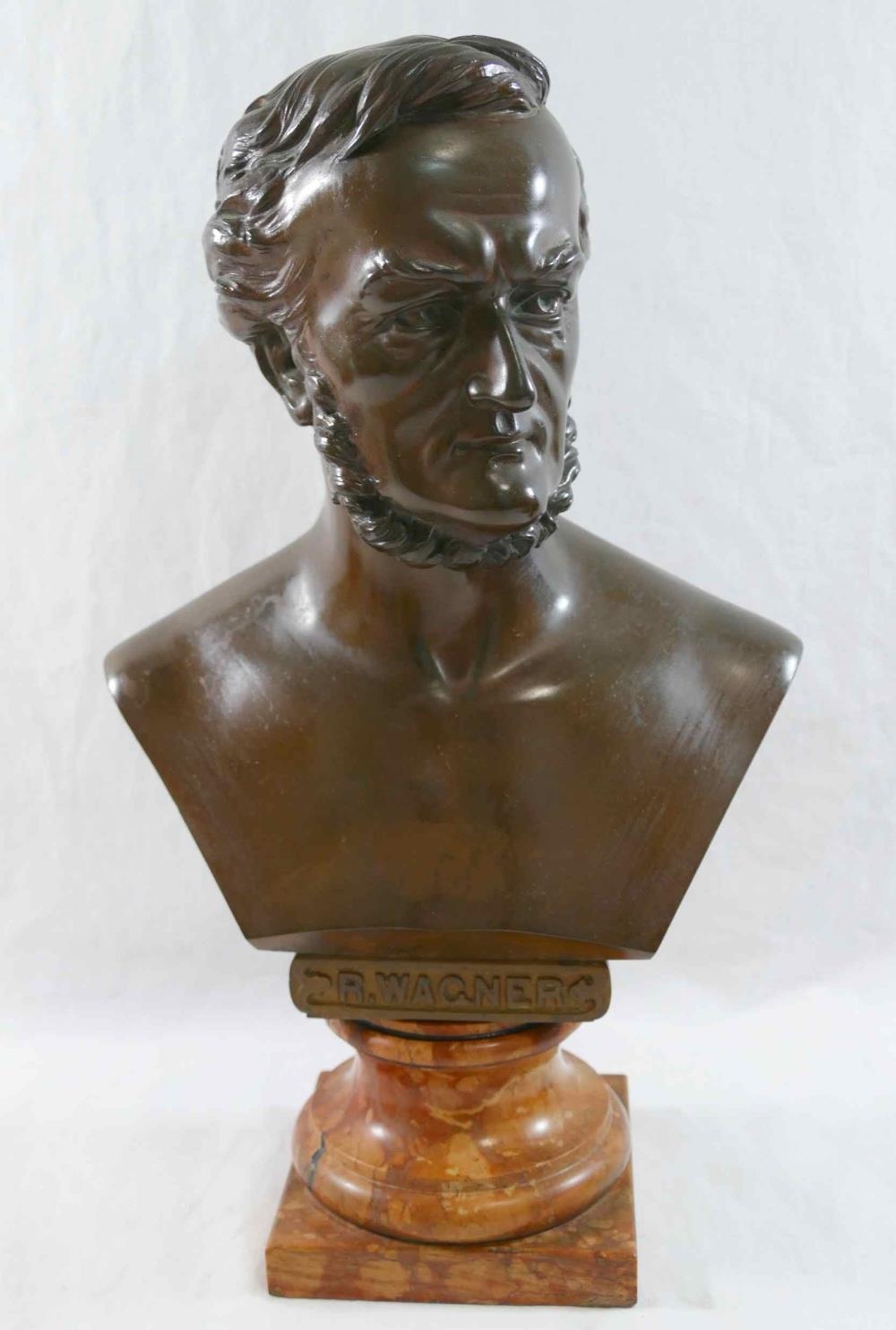 A bust of Richard Wagner, bronze, with bare chest on turned marble socle, unsigned, 36cm high