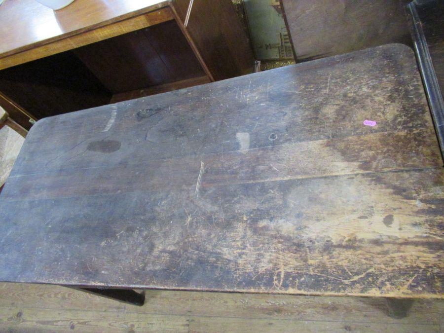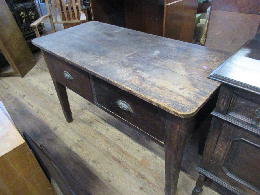 An Antique pine side table, fitted with two deep frieze drawers, 51ins x 24ins, height 32ins