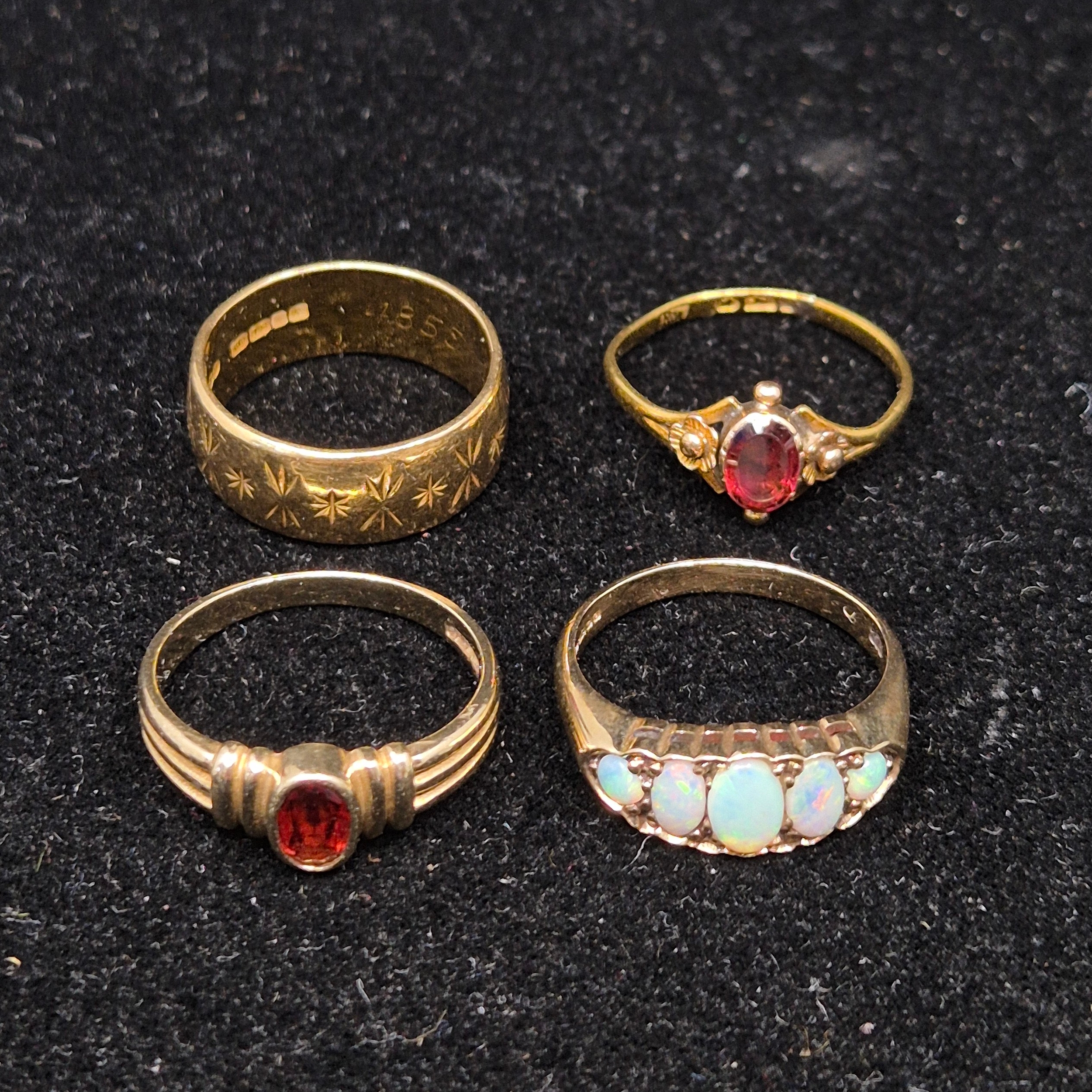 Four Hallmarked Gold Rings to include one 18ct (6.69g) and Three 9ct Gold Rings (6.45g)