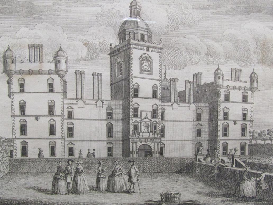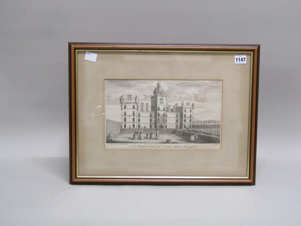 F/G B&W ENGRAVING, PROSPECTIVE VIEW OF THE FRONT OF HERIOTS HOSPITAL
