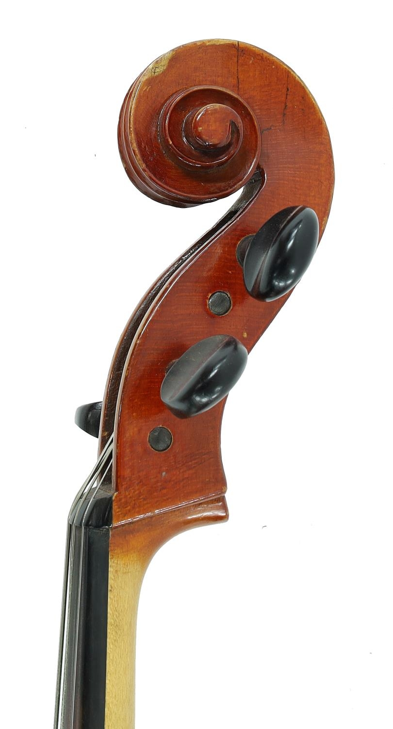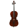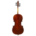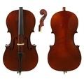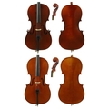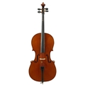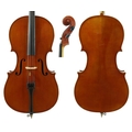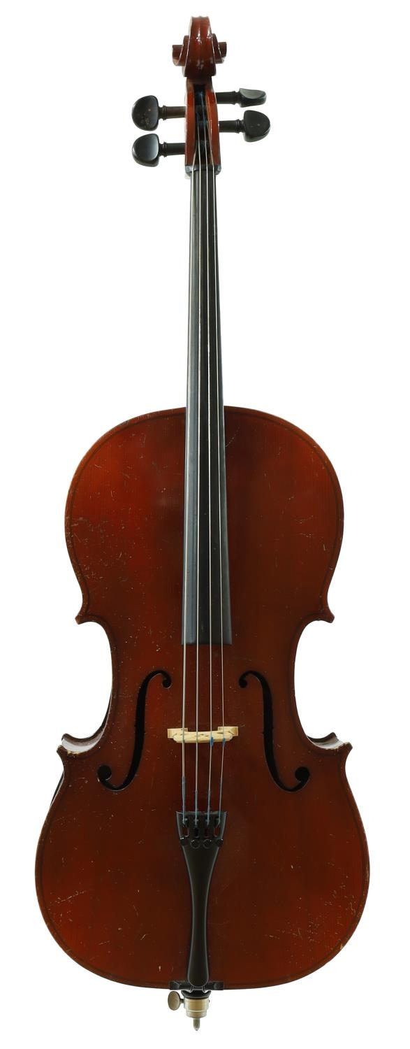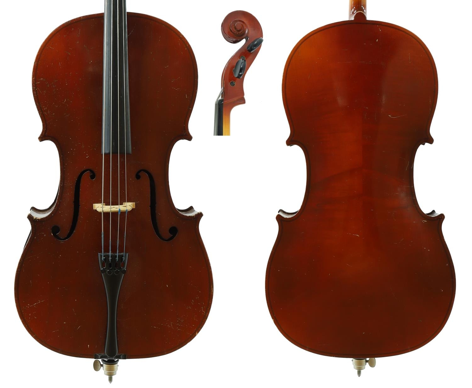 Orange varnished cello; long crack running up from the saddle on the table treble side and other minor cosmetic issues.