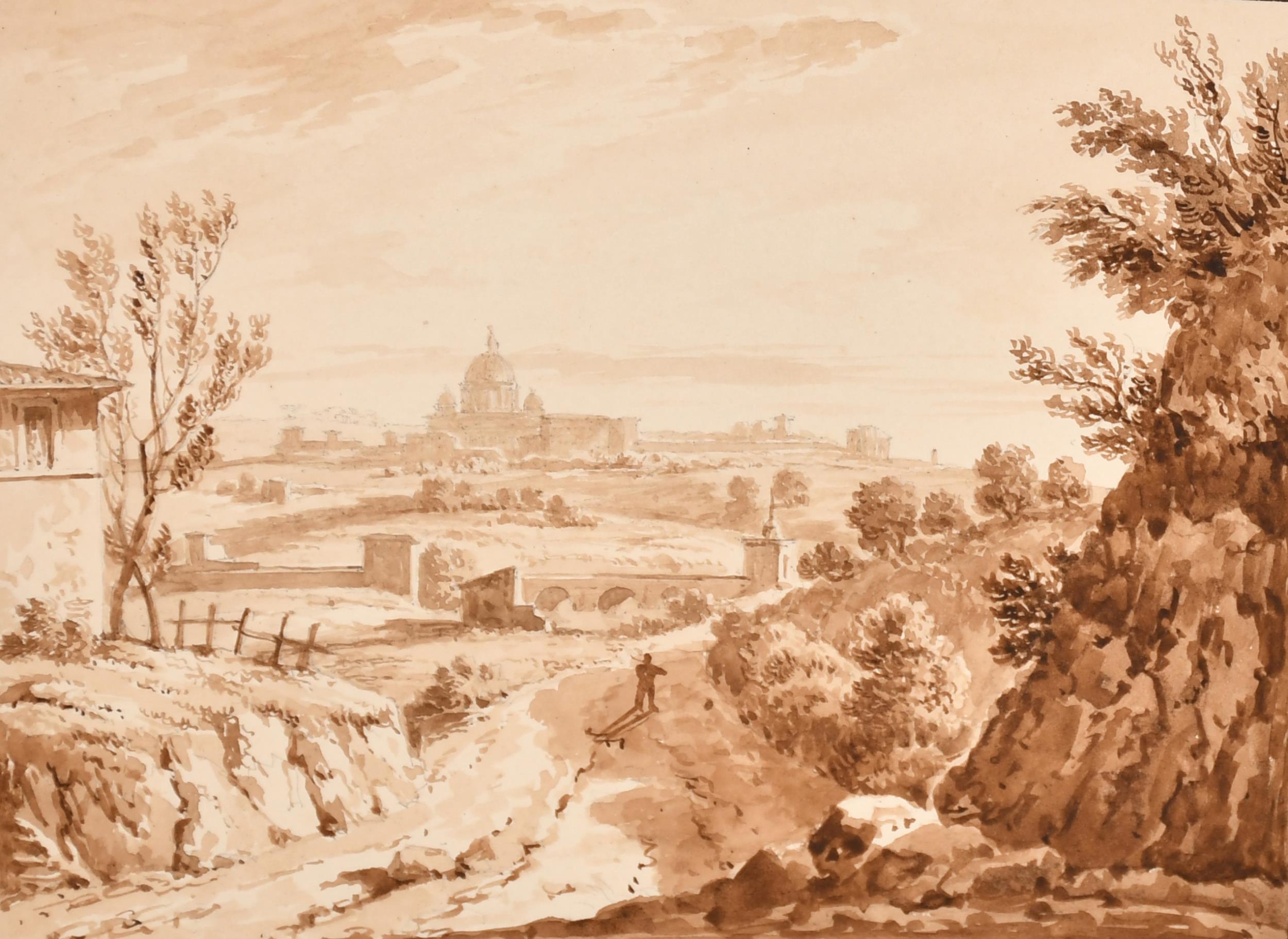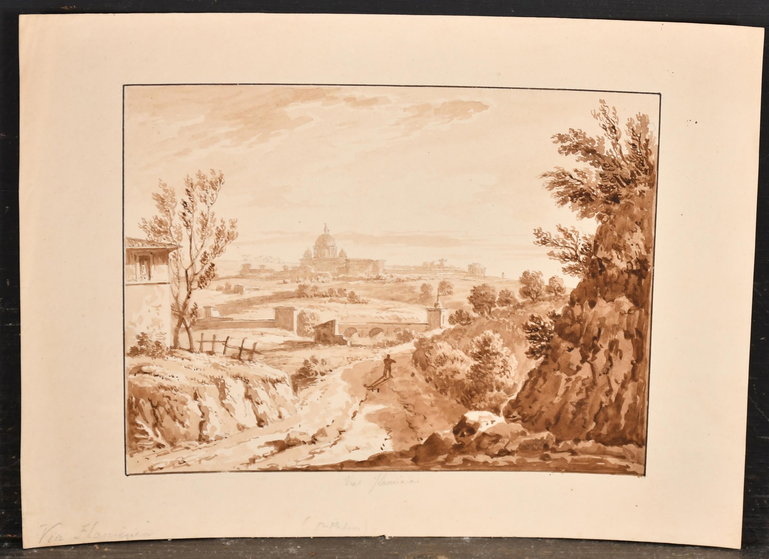 Early 19th Century Italian School. "Via Flaminia", Watercolour and wash, Inscribed in pencil, unframed 5.5" x 7.25" (14 x 18.4cm), together with two watercolours by other hands (3)