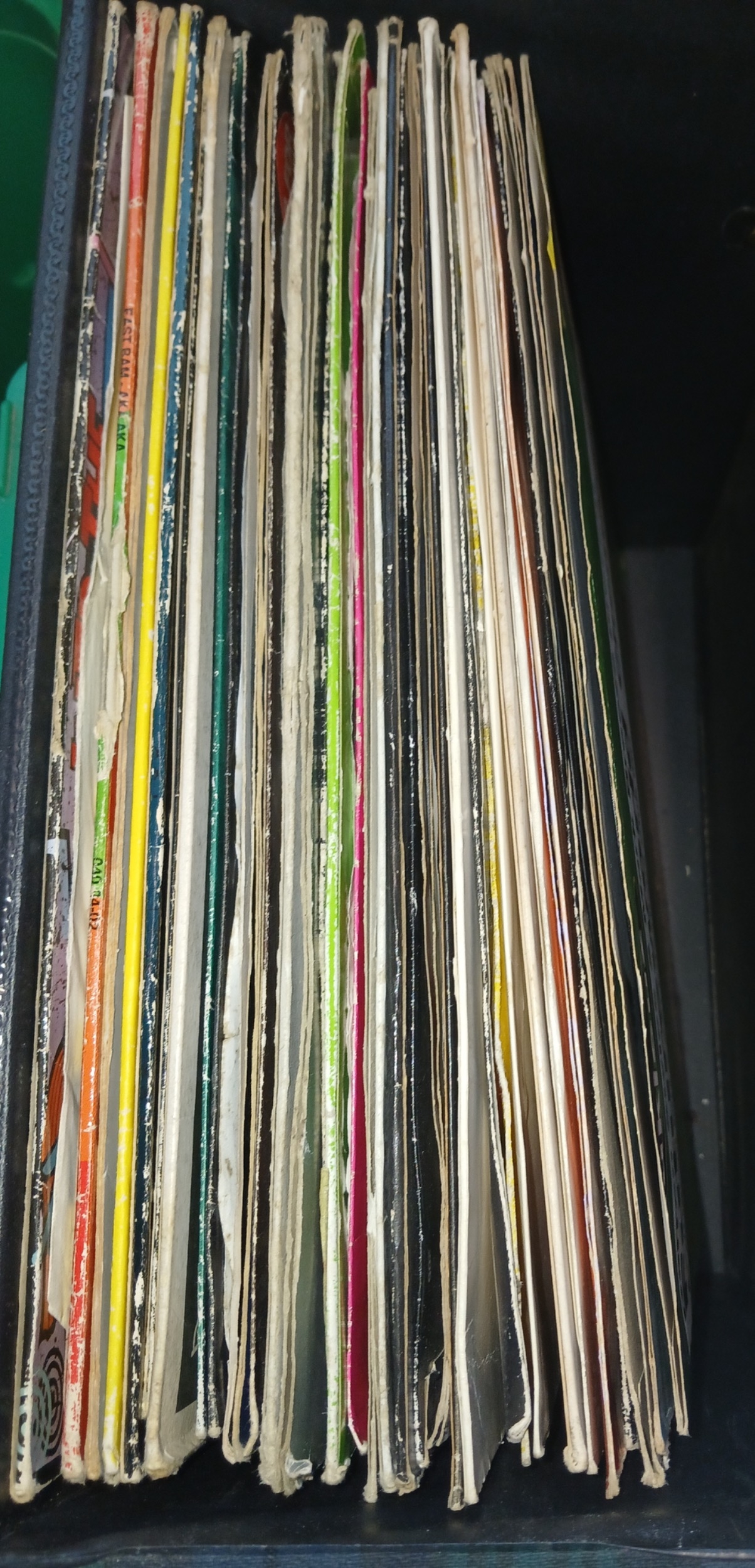 A box of 12" singles including Futureworld Chemical Love, Abbacadabra, Black Box remixed, Vatos Locos Bros etc