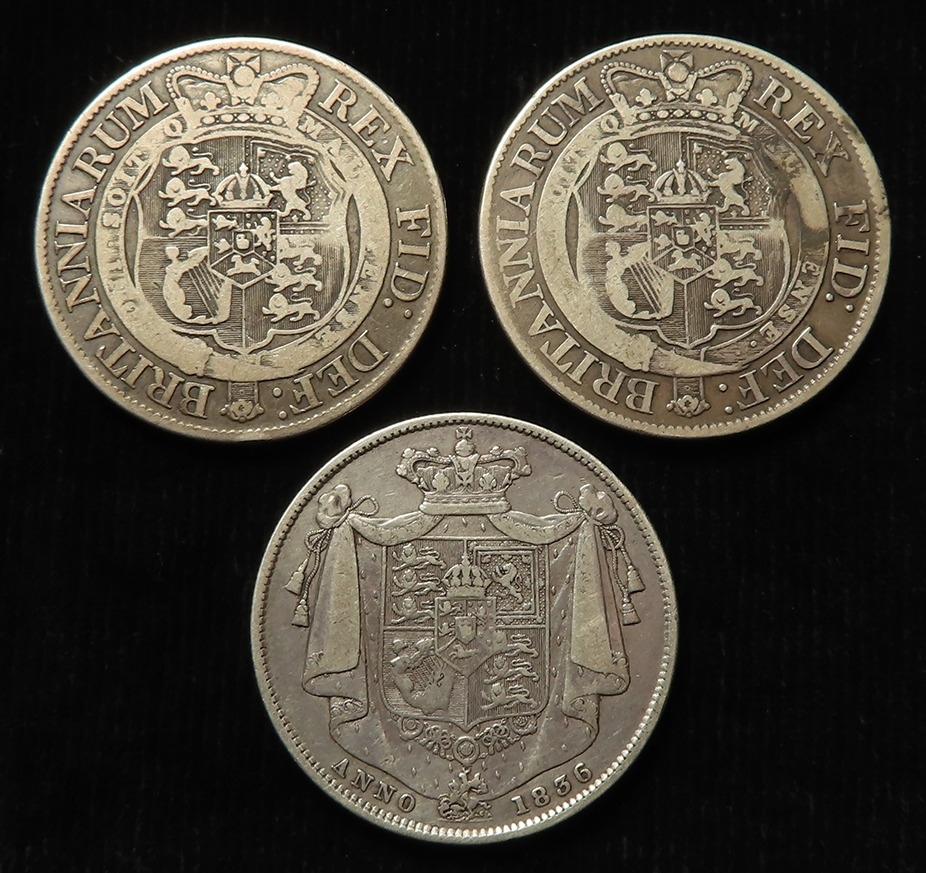 Halfcrowns (3): 2x 1819 VG, and 1836 GF.
