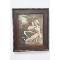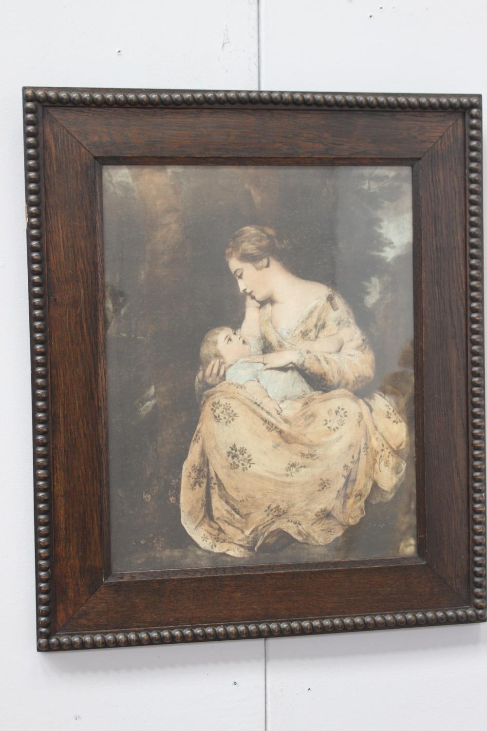 Black and white print Mother and Child mounted in an oak frame {67 cm H x 56 cm W x 3 cm D}.