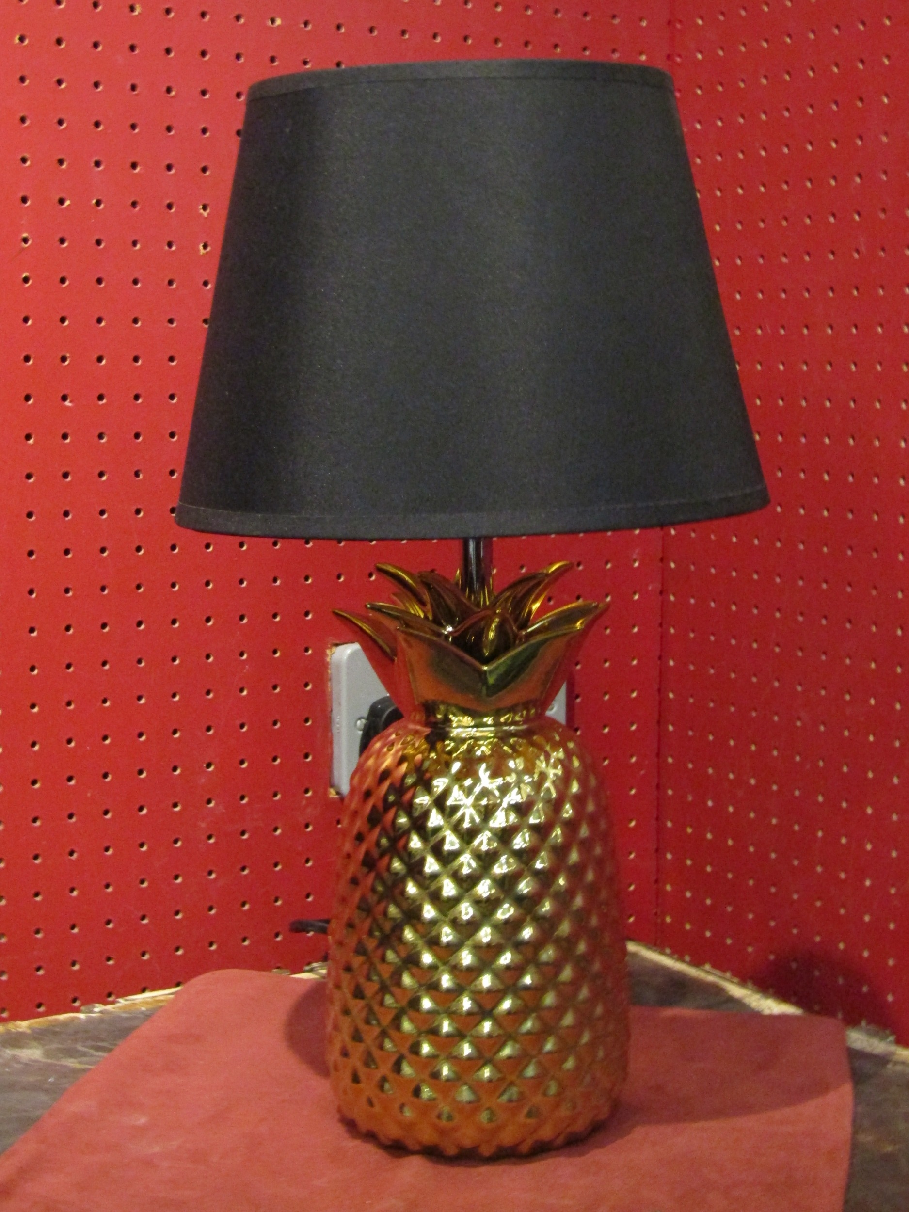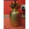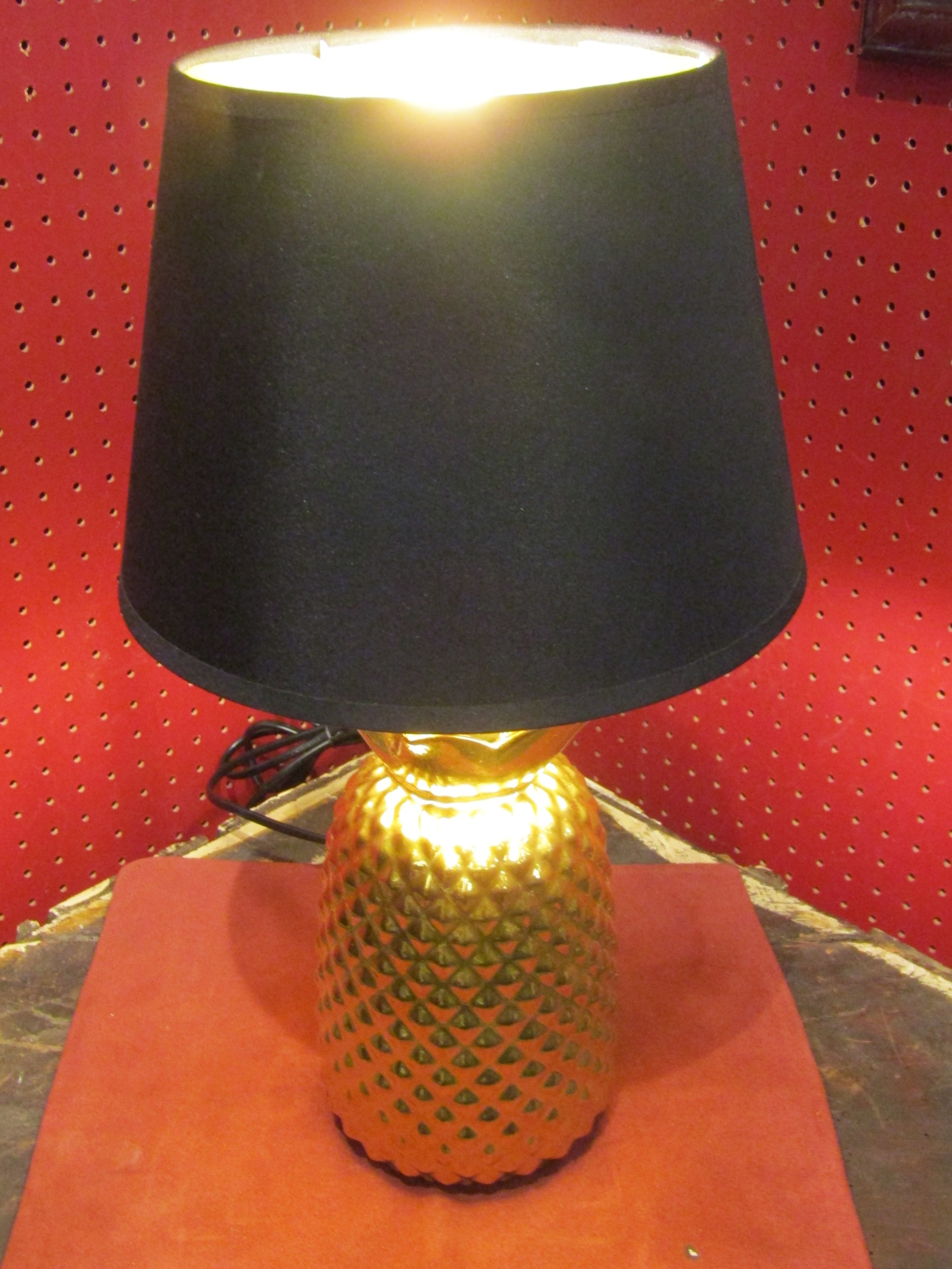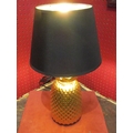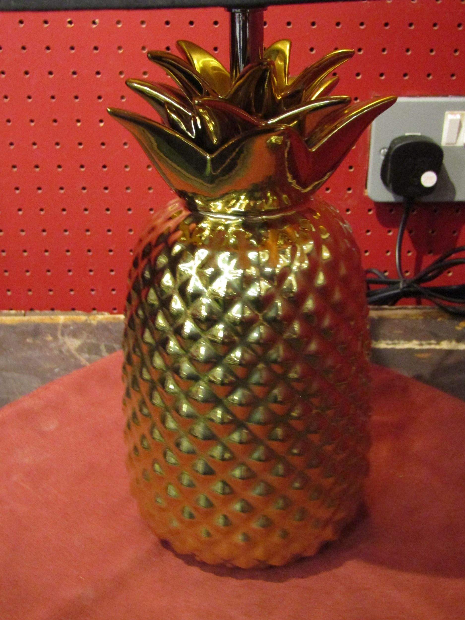 A gilt ceramic pineapple form table lamp, black/gilt lined shade
