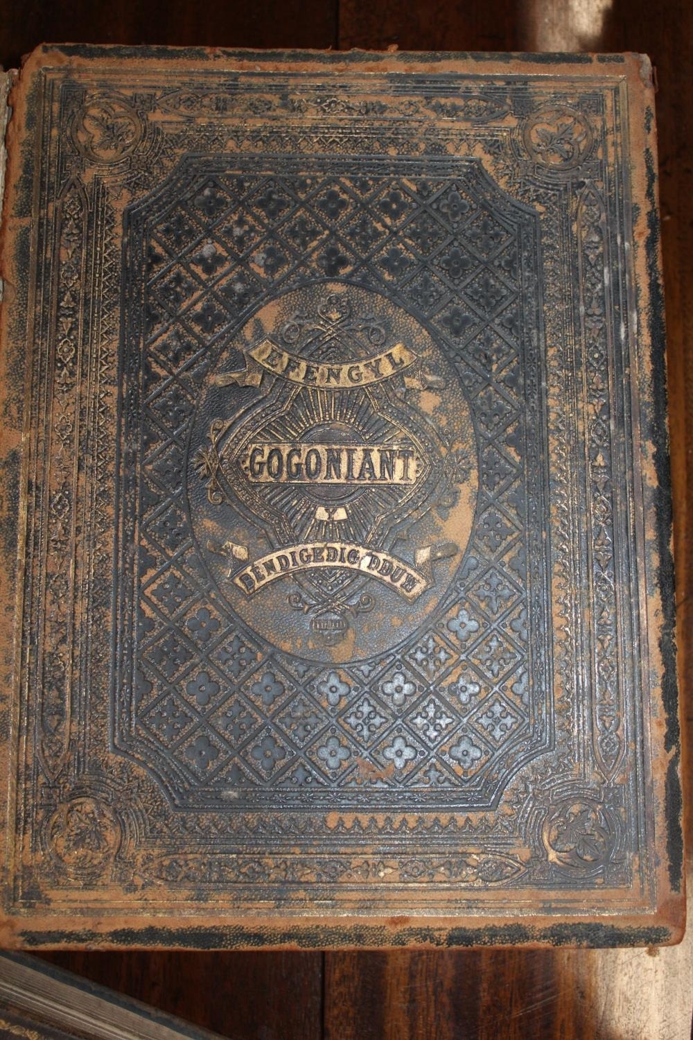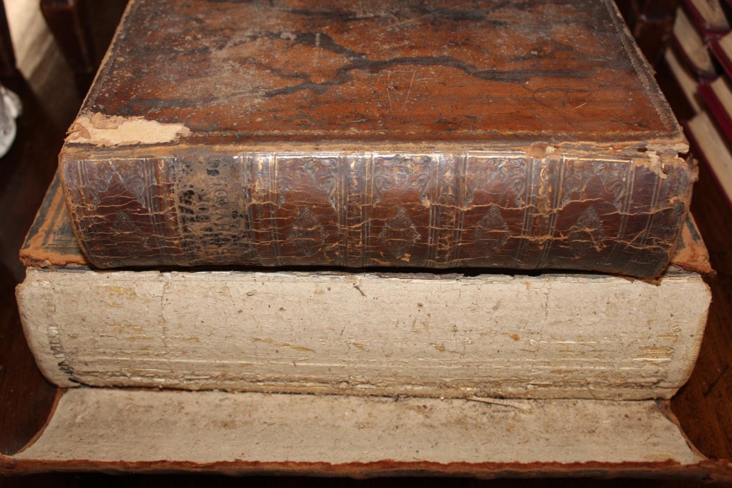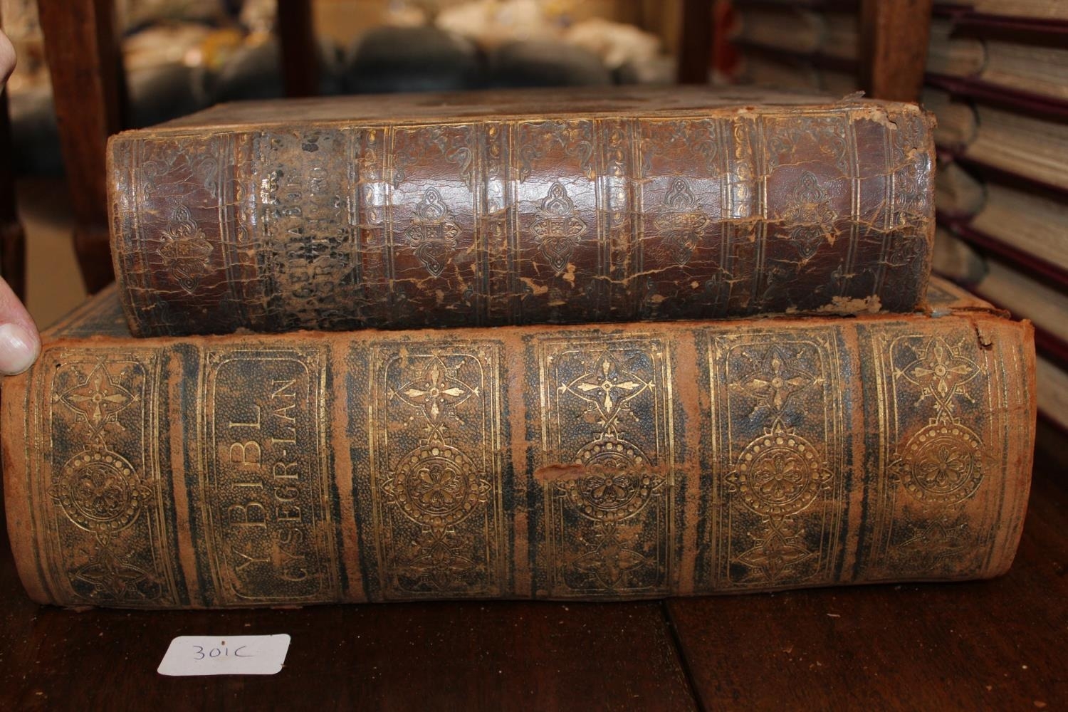 Leather bound Bible and another leather bound.