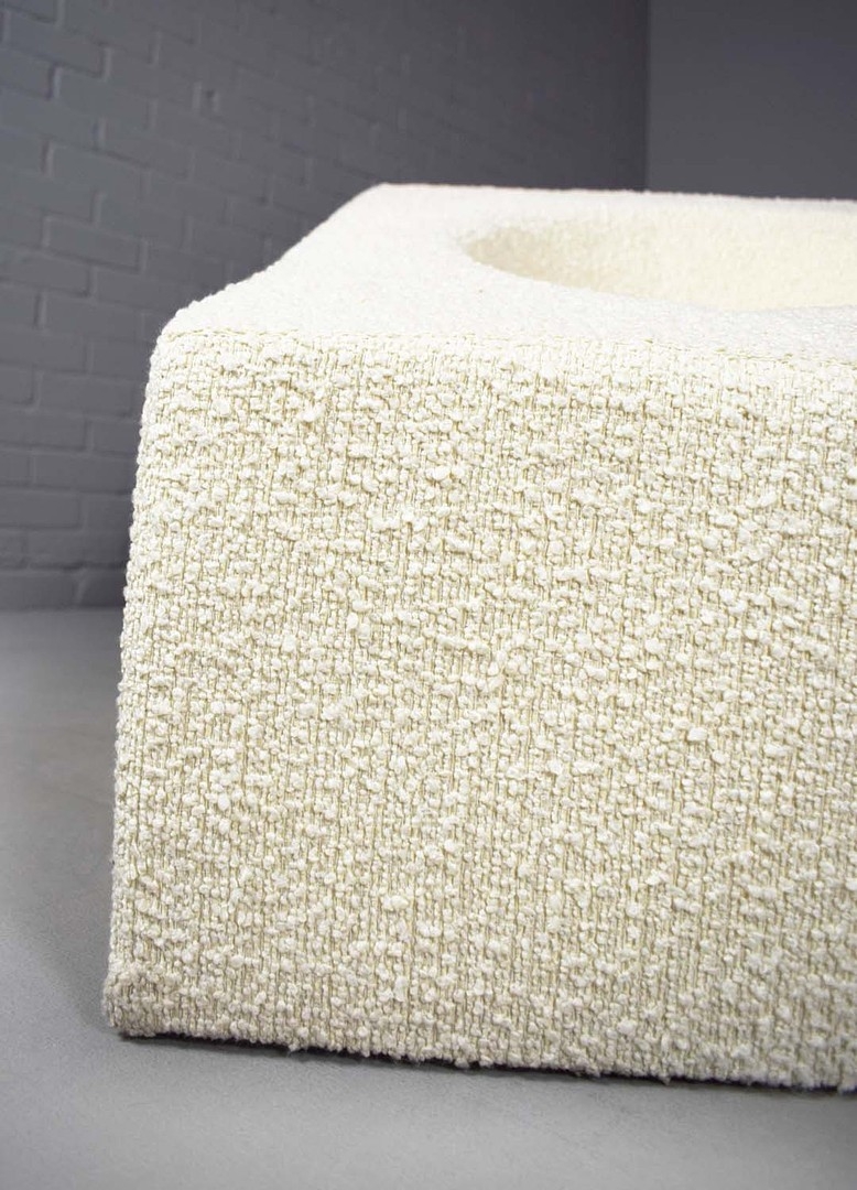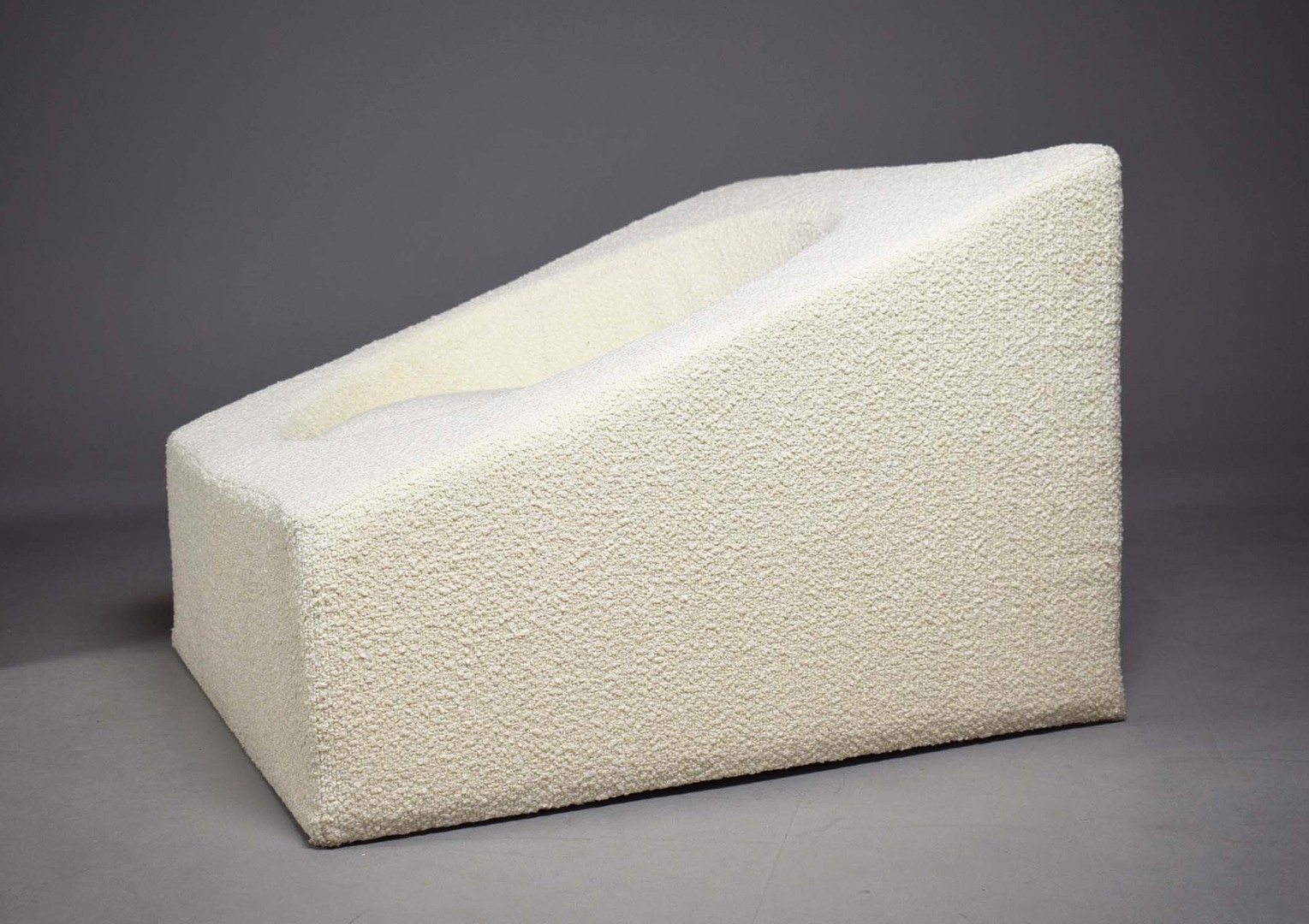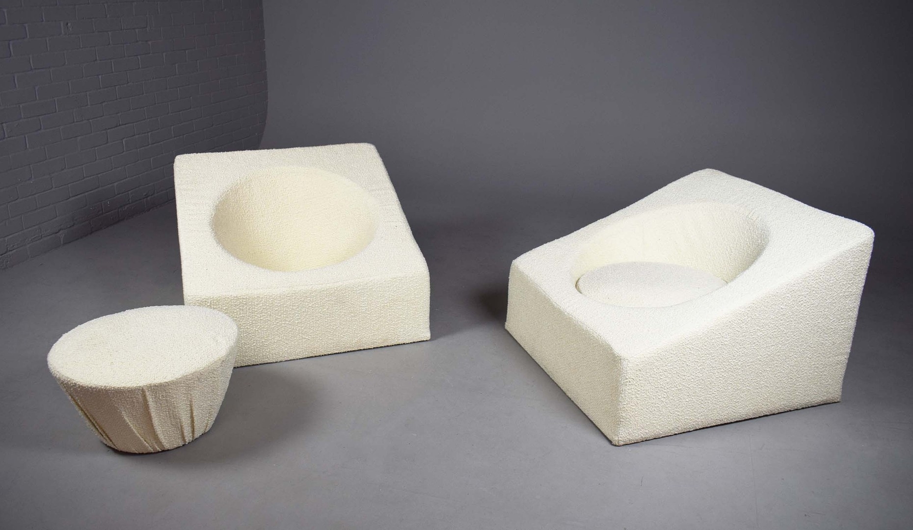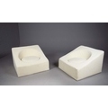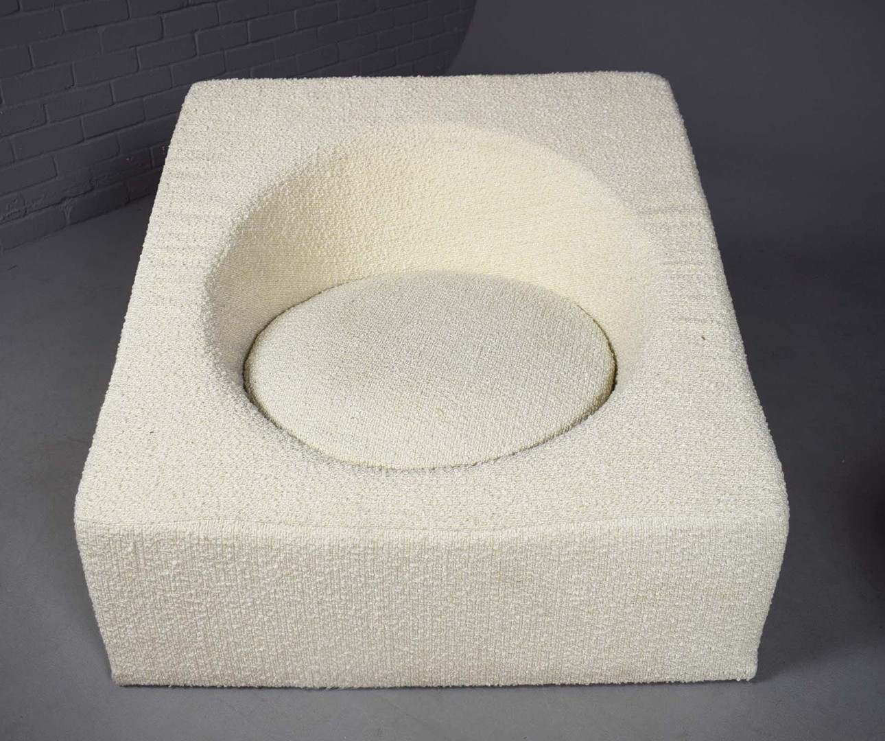 PAIR OF 1980s ITALIAN SPACE AGE LOUNGE CHAIRS. With off white boucle upholstery 62cm H x 88cm W x 88cm D.