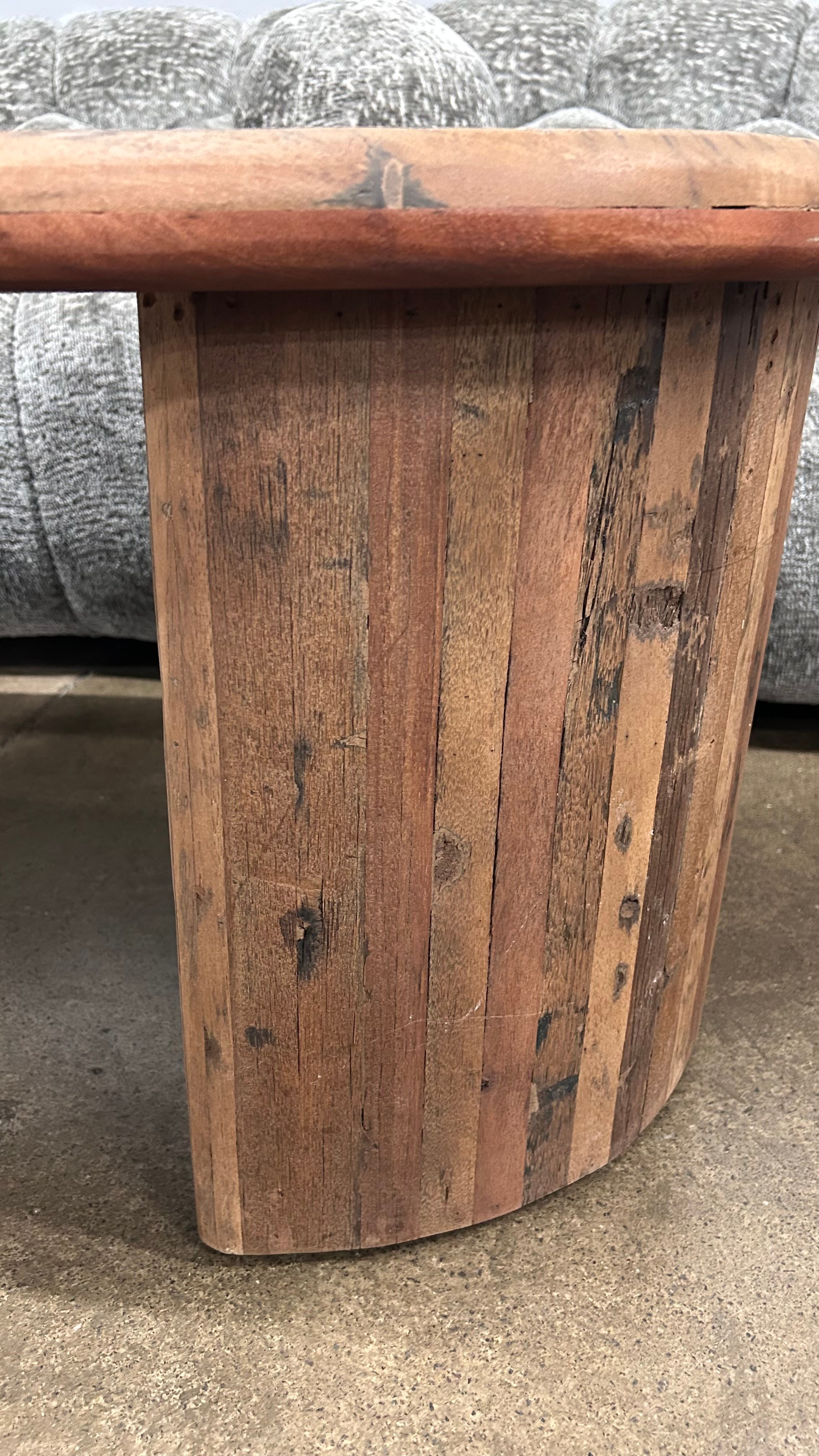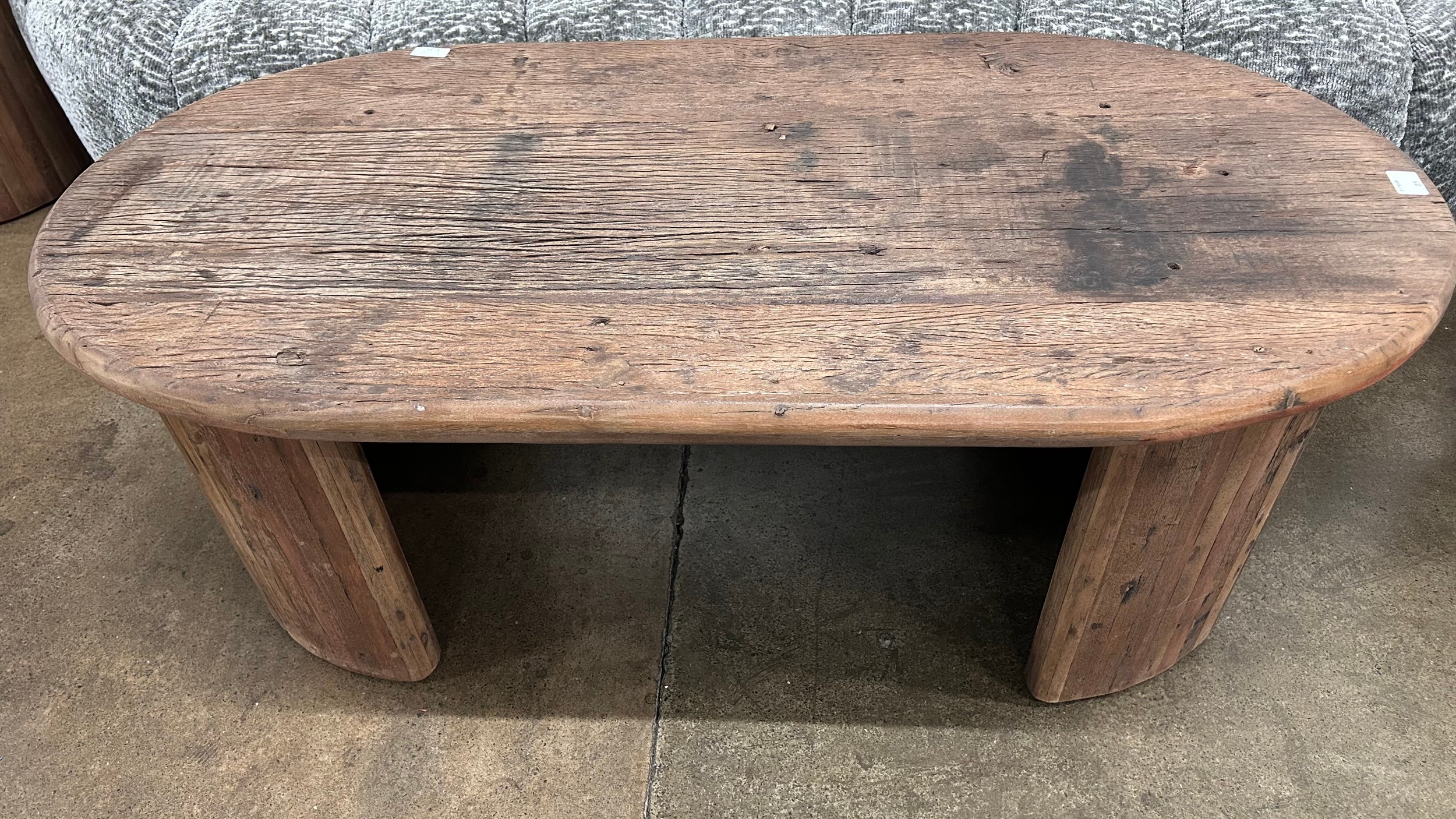 A driftwood oval coffee table