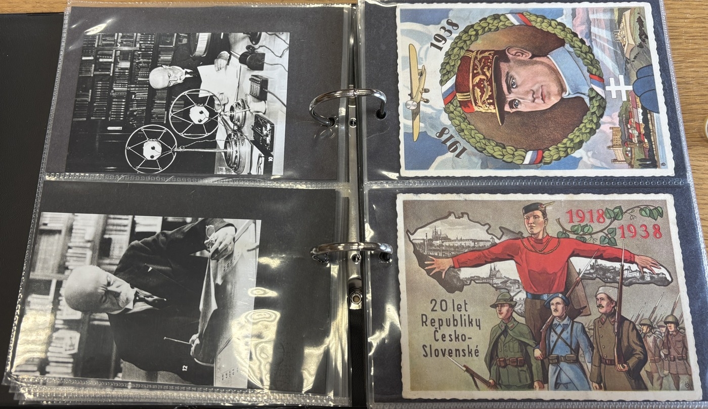 Misc. Coln. in 3 albums, with ranges of mostly vintage cards, with ptd, R.P's, artist drawn, incl. political with ranges celebrating the 20th anniversary of Czechoslovakia, Edvard Beneš, Prague, one album with creasing, causing slight damage to cards. Plus range of stamps. Approx. Qty. 200+. (B)