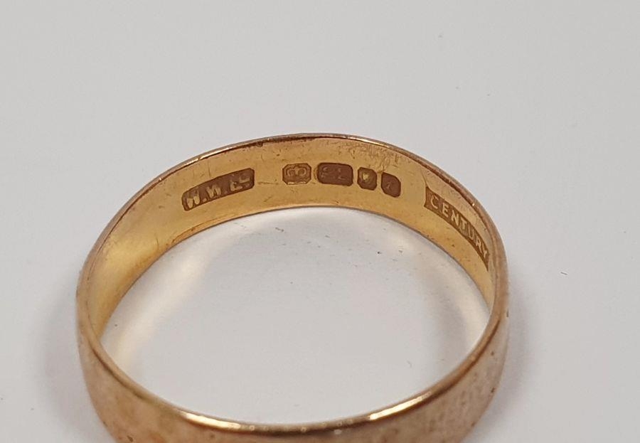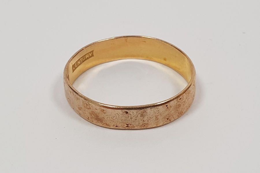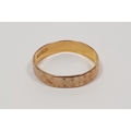 22ct gold wedding band with engraved detail (worn), 2.5g