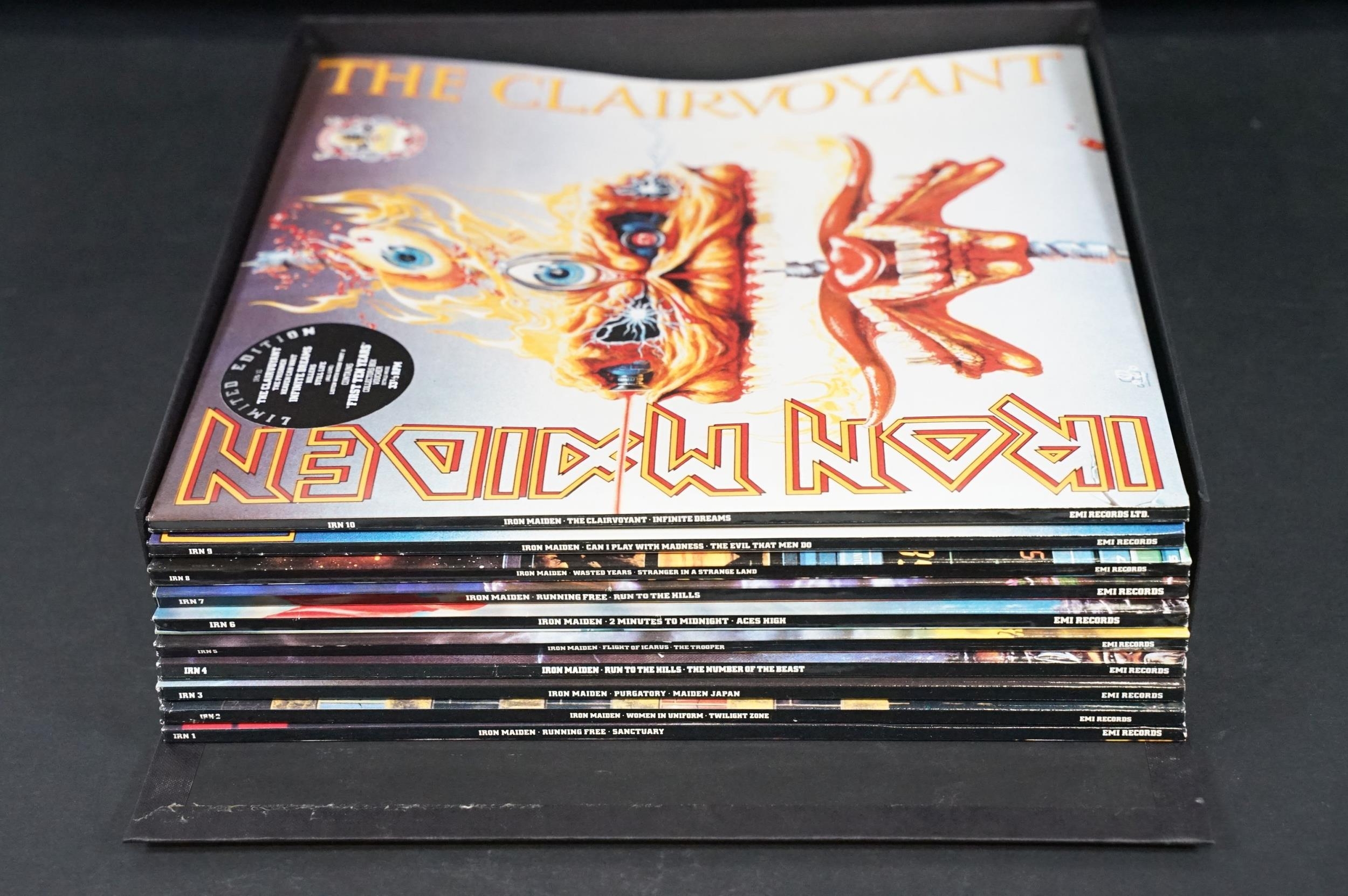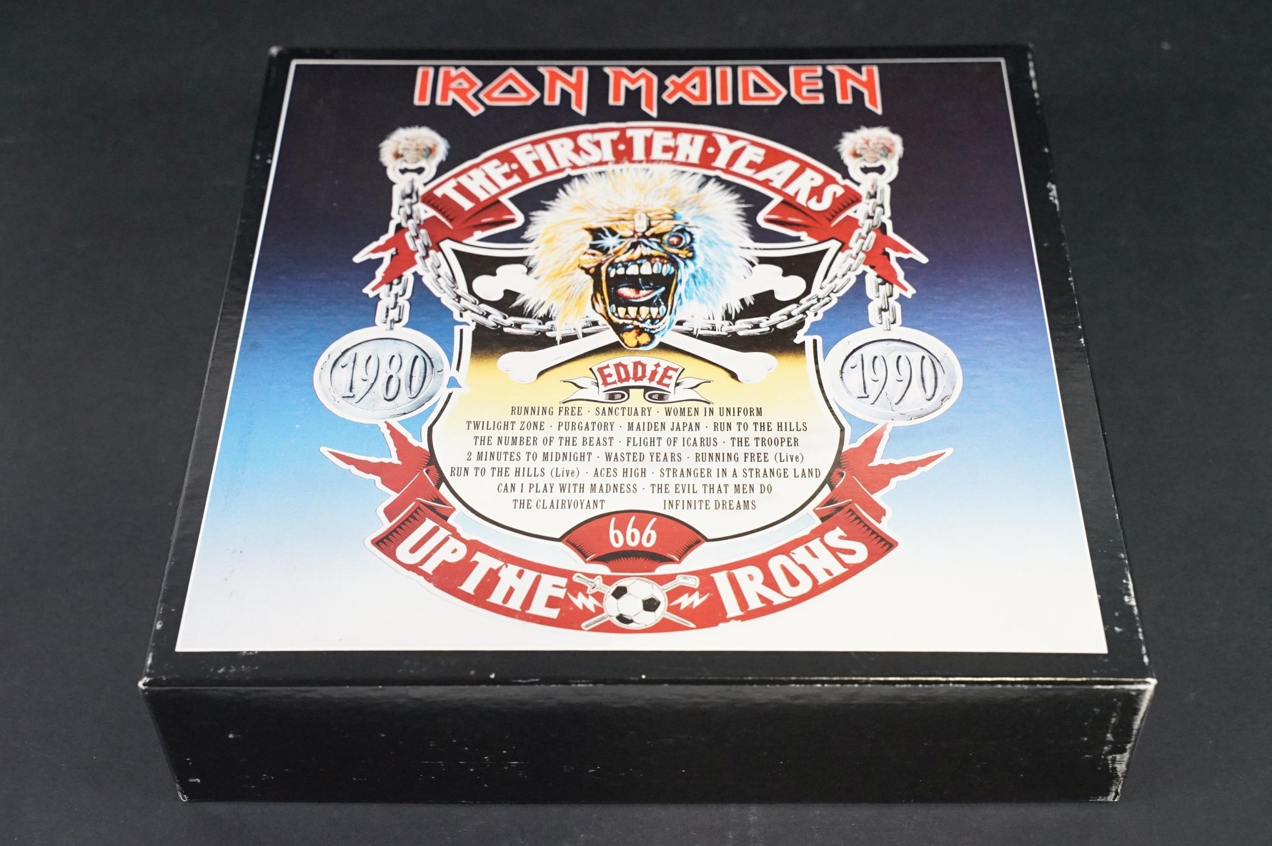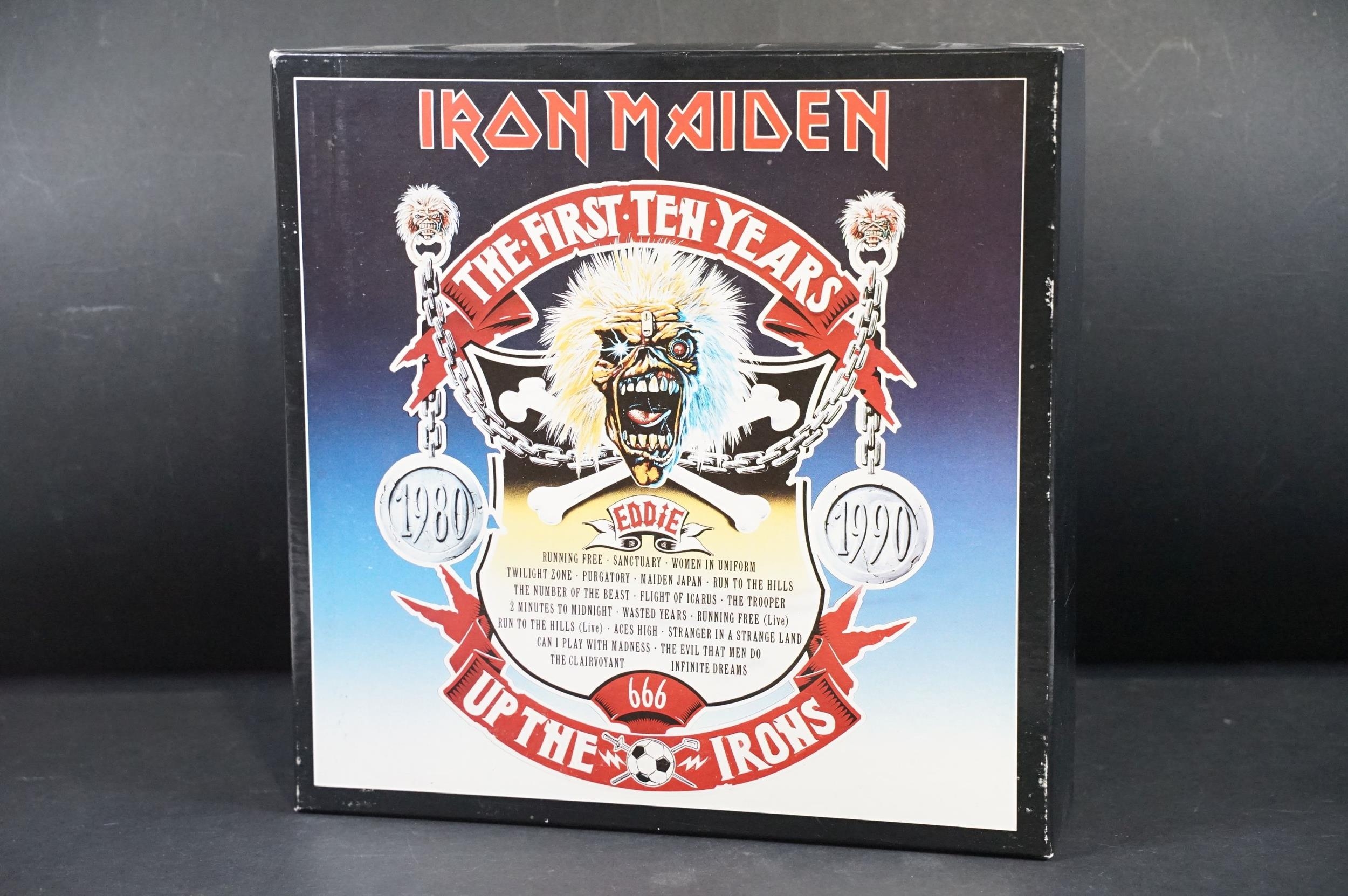 Vinyl - Iron Maiden The First Ten Years Up The Irons box set on EMI (IRN 1-10). Box EX- (minor wear to corners and edges) / Sleeves and vinyl Ex