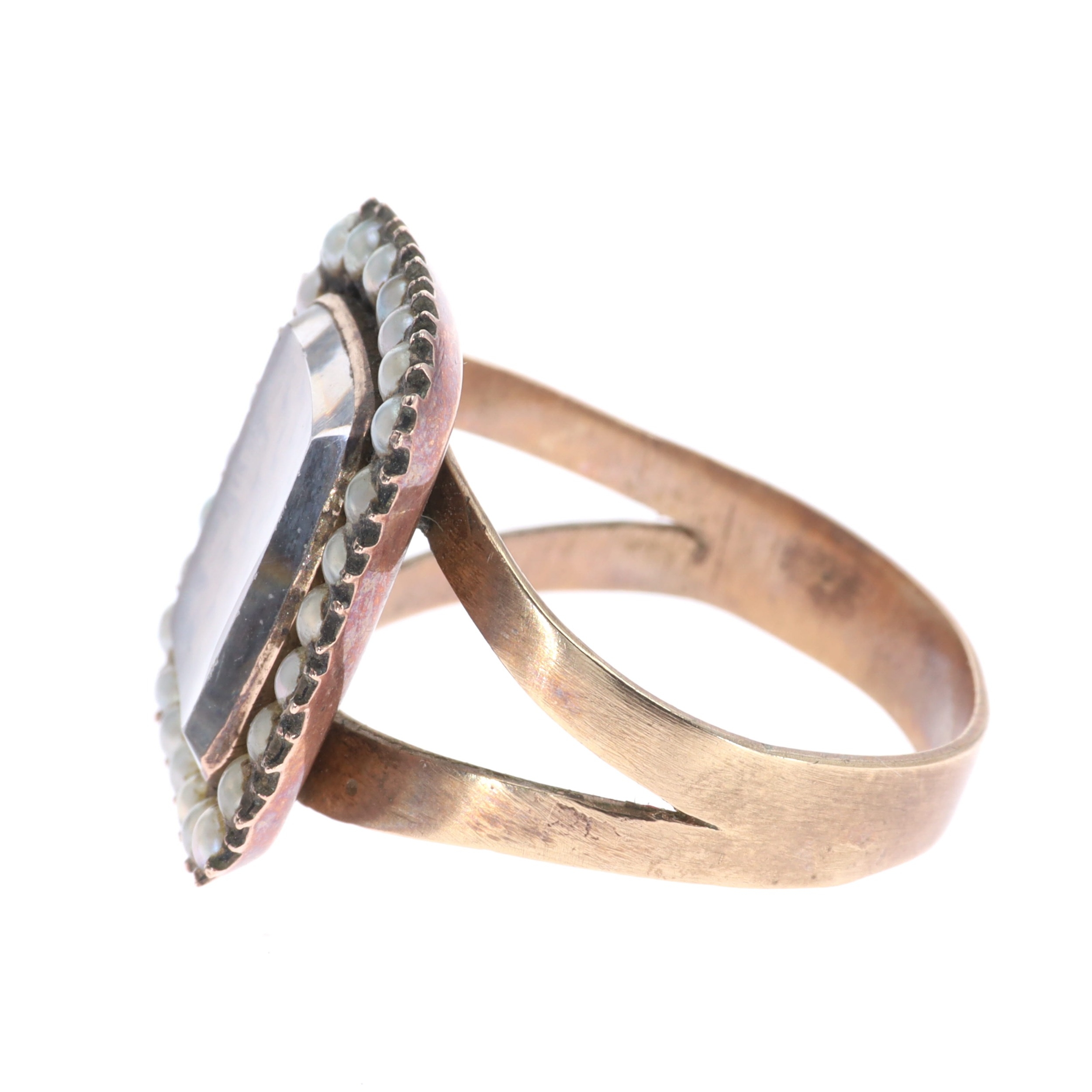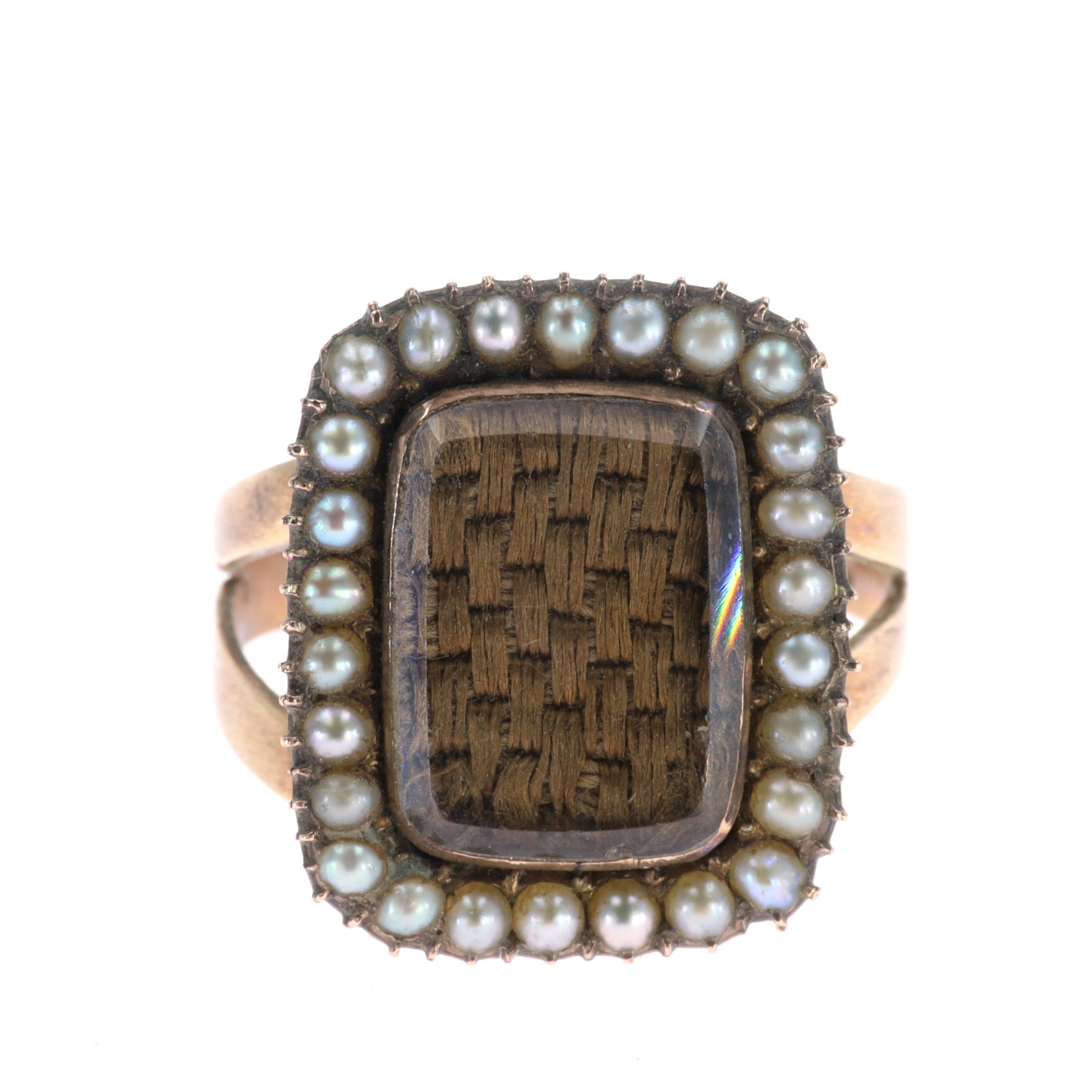 Victorian Mourning Hairwork and Split Pearl Gold Ring