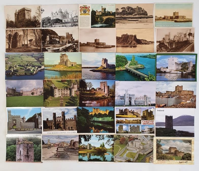 Irish Castles Interest Postcards. Colour and black and white. Some vintage, others later. Collection of approximately 60 individual blank postcards