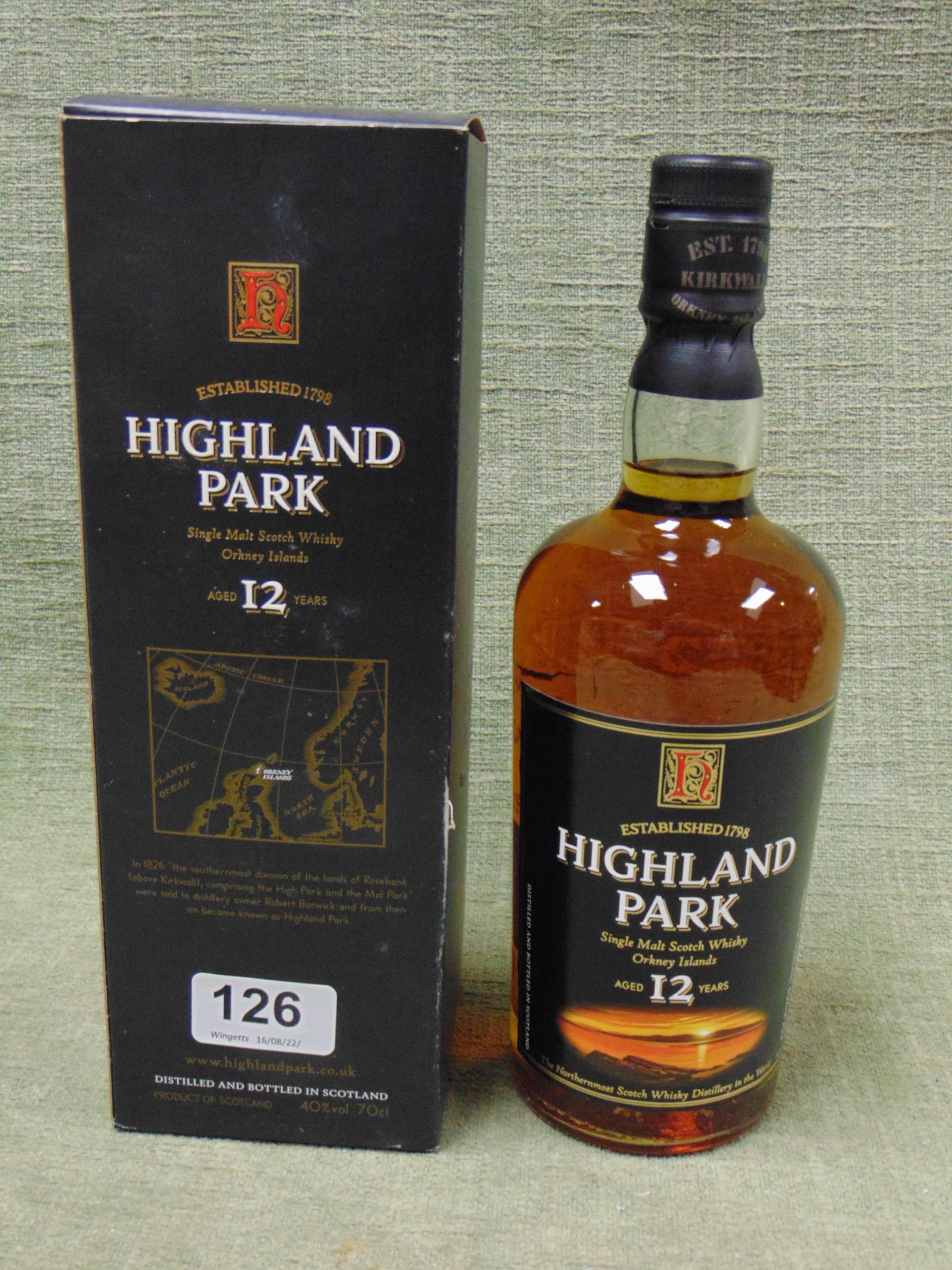 70cl bottle of Highland Park 12 Year Old Single Malt Whisky.