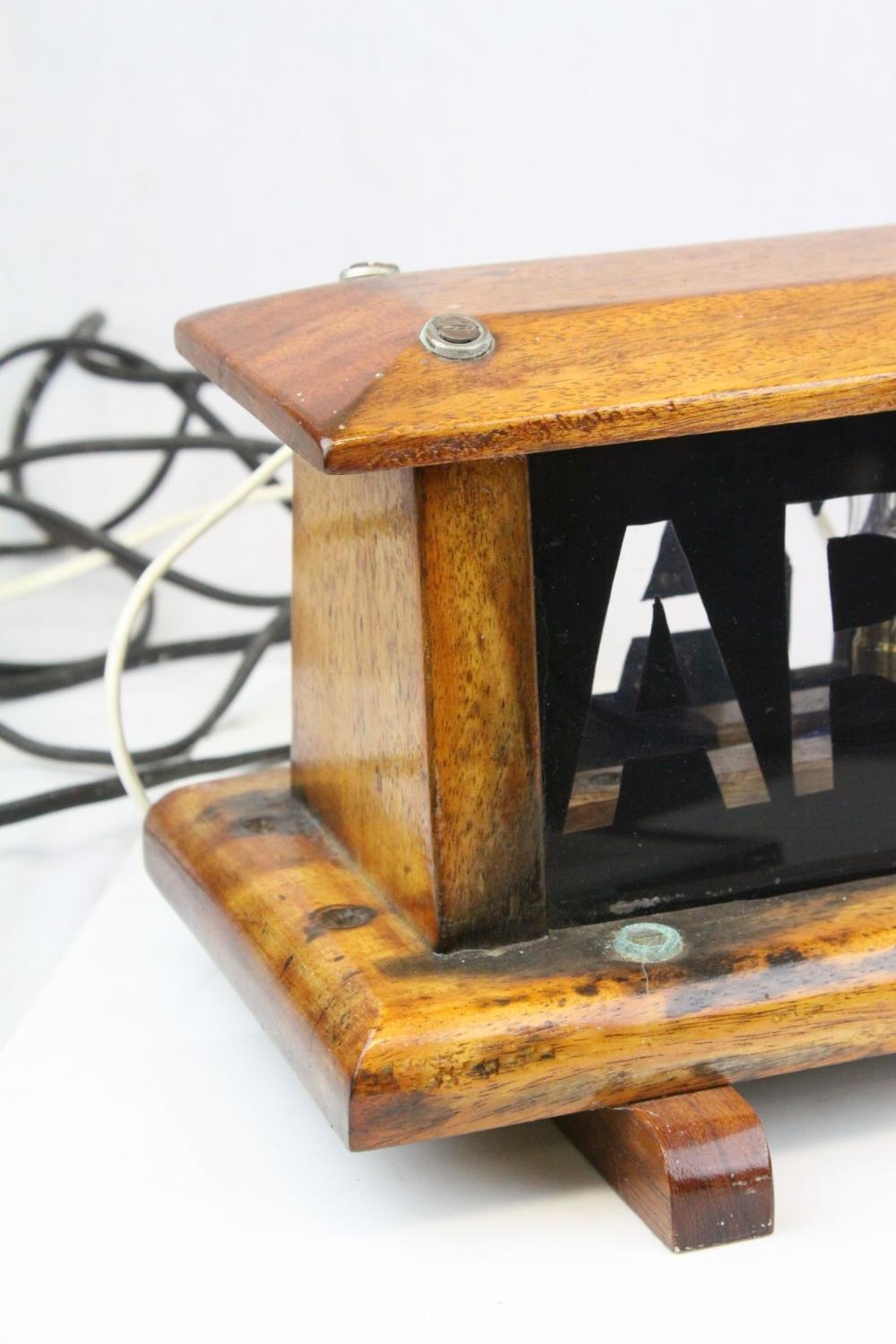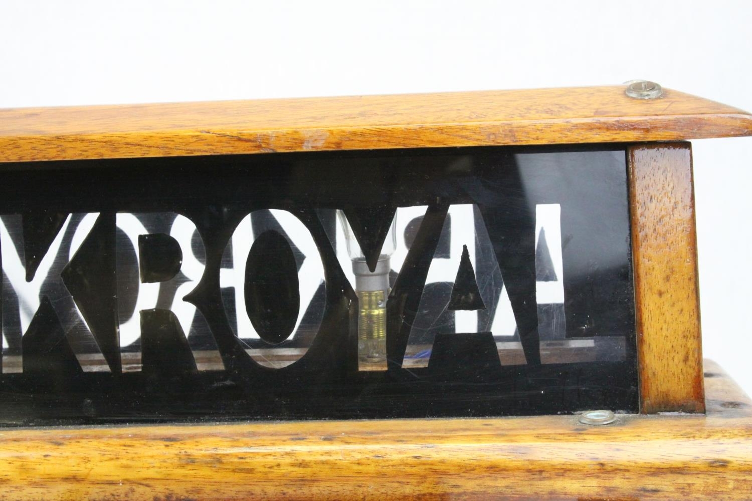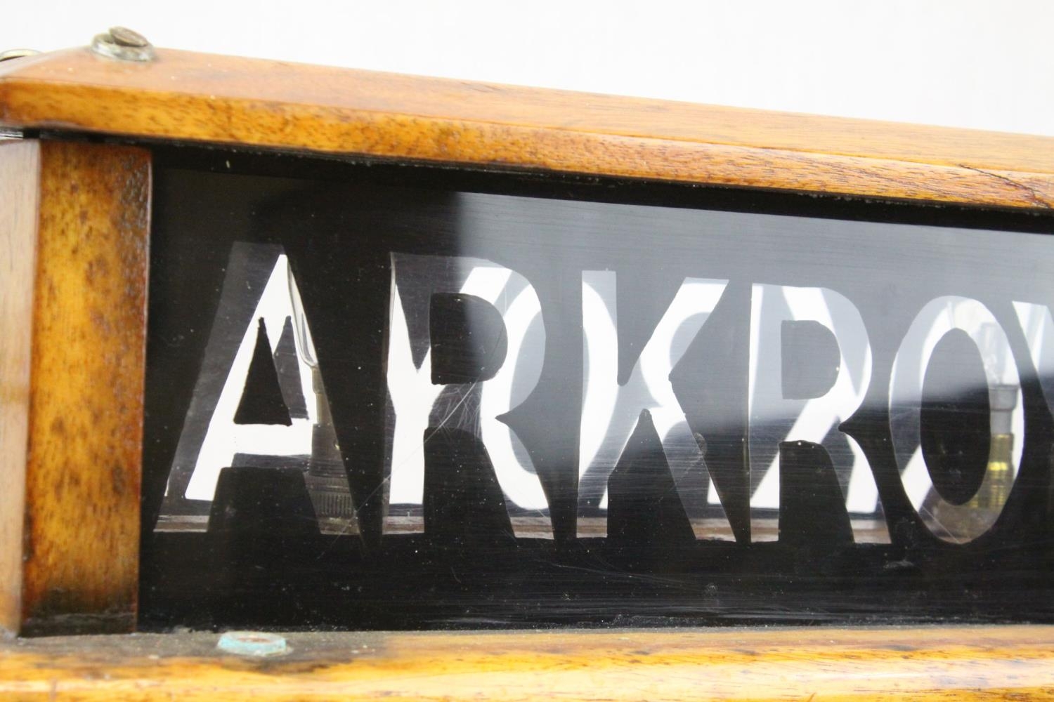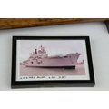 Naval / General Interest- Mid 20th century Wooden Framed Double Sided ' ARK ROYAL ' Illuminated (when re-wired) Sign, this sign would have been placed on one of the launch boat / tender on HMS Ark Royal bringing sailors to and from the shore, together with framed photograph of the ship, 50cms long