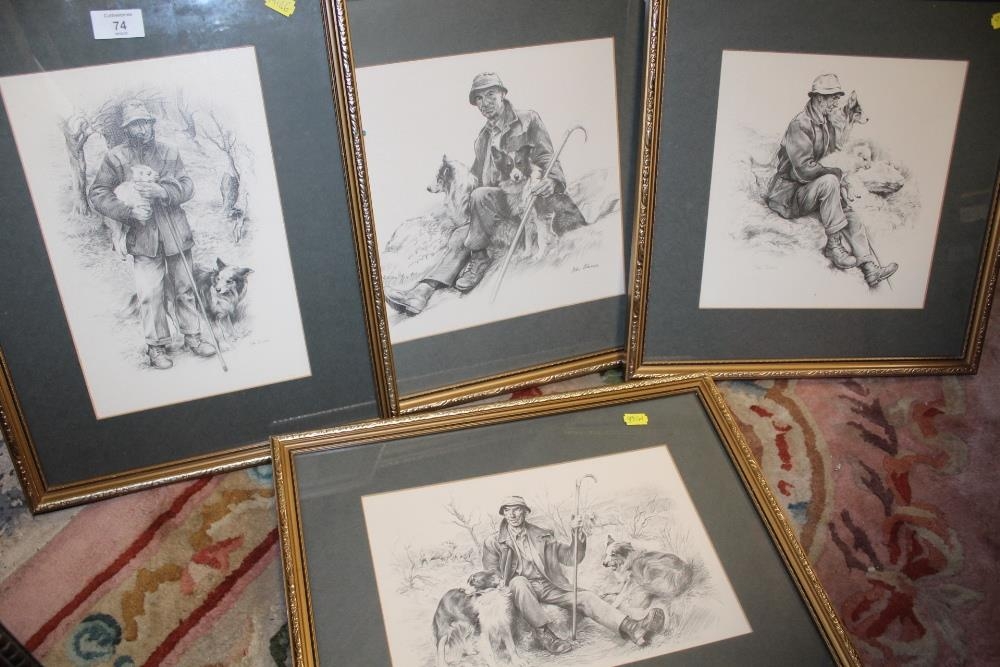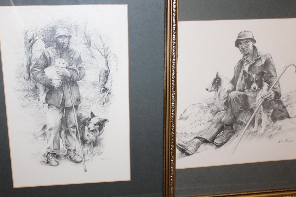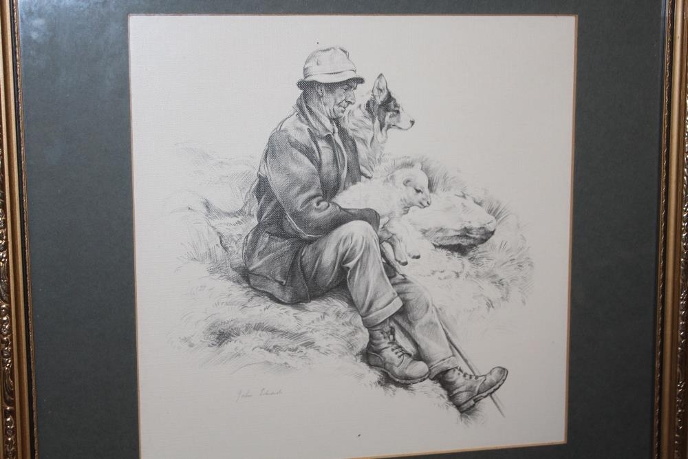 FOUR JOHN EDWARDS PRINTS OF RURAL COUNTRY LIFE - MEN WITH DOGS