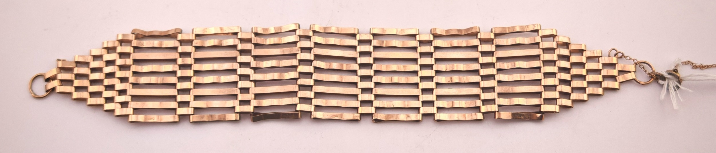 20thC 9ct gold Gate bracelet 14.4g total weight