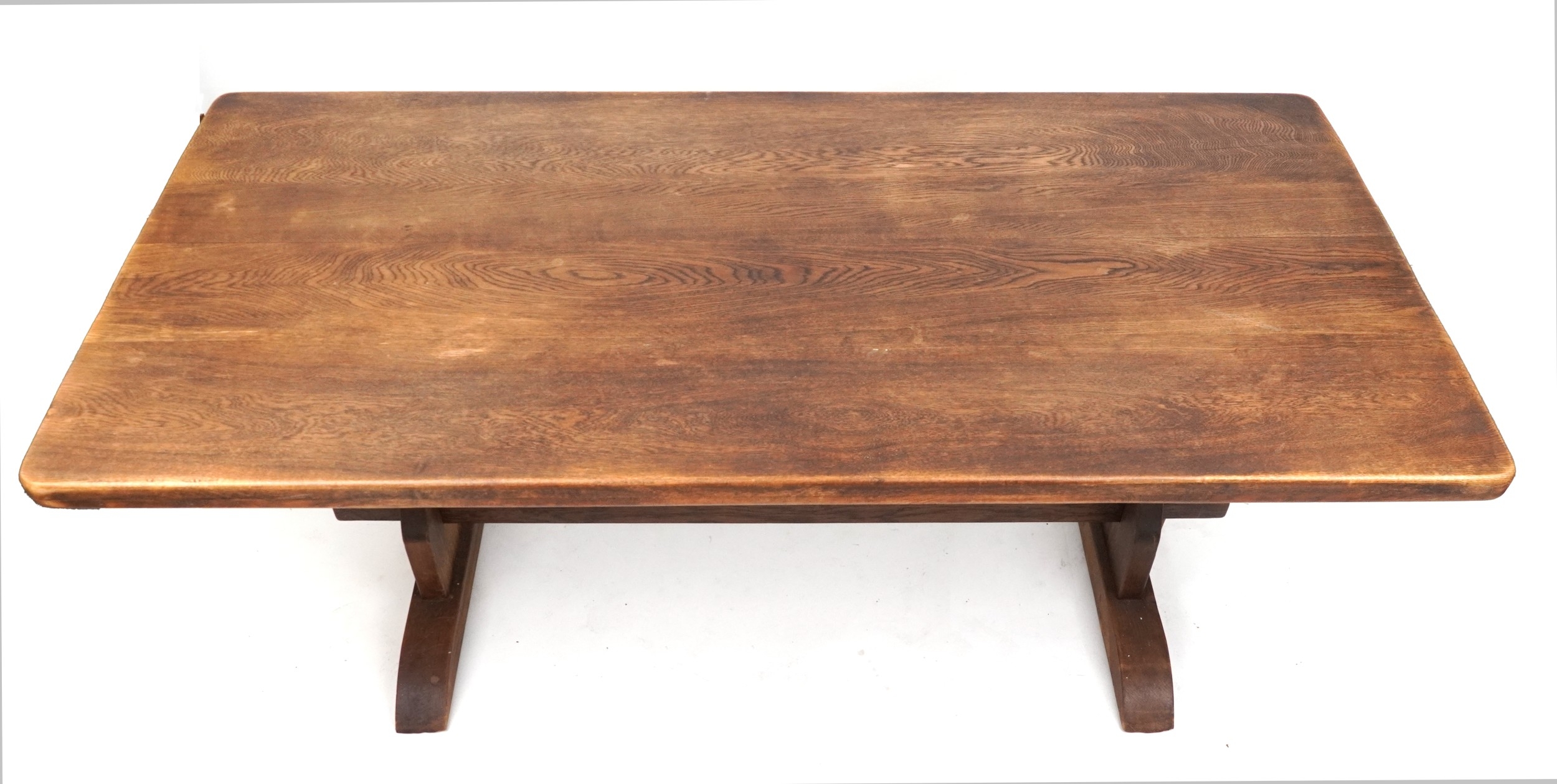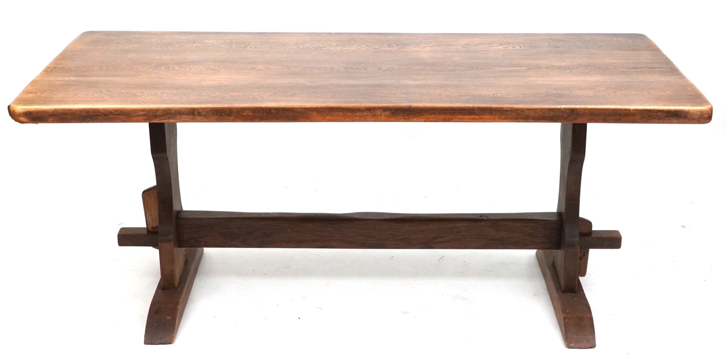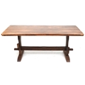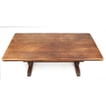 A 20th century oak refectory table, the rectangular top raised on shaped supports and bracket feet, 73cm H x 183cm W x 88cm D.