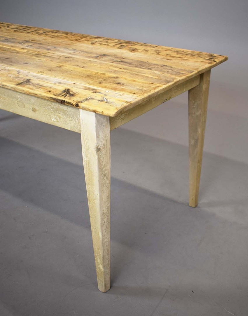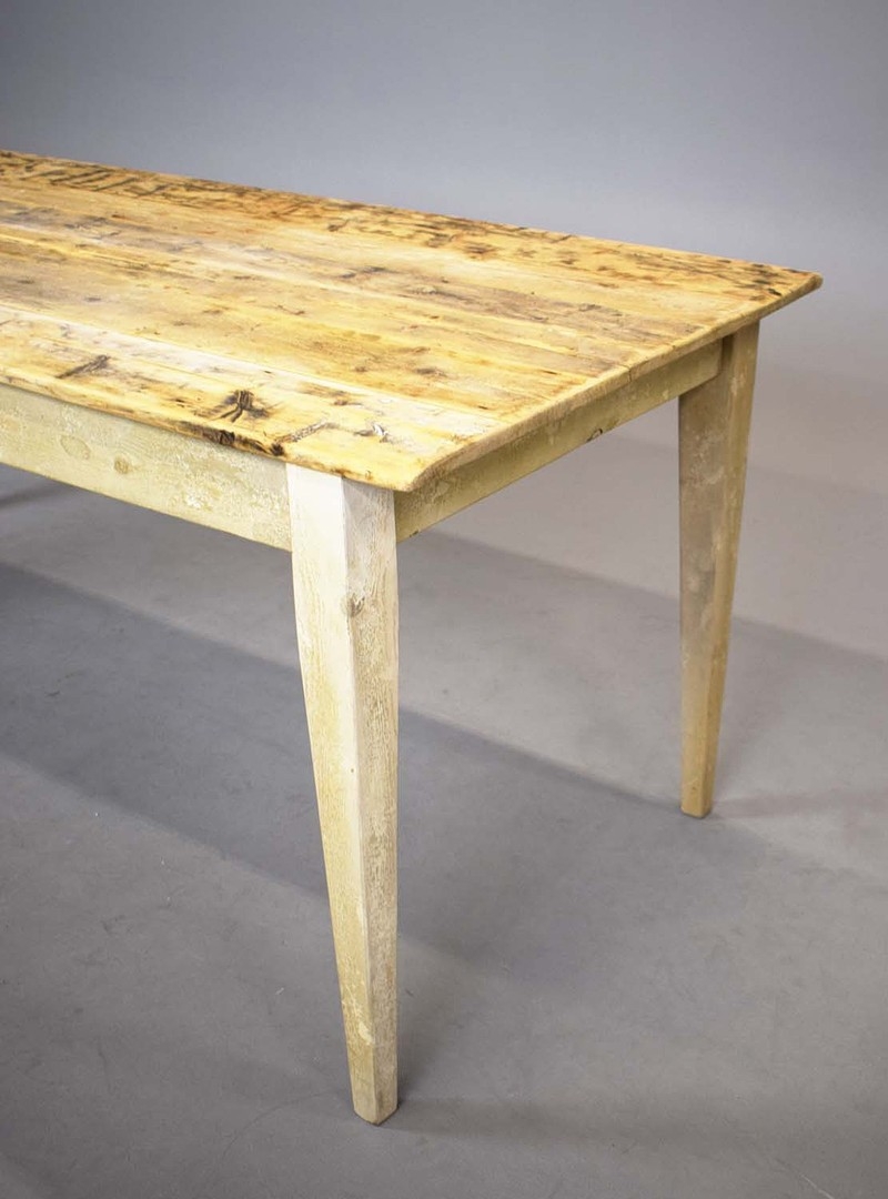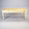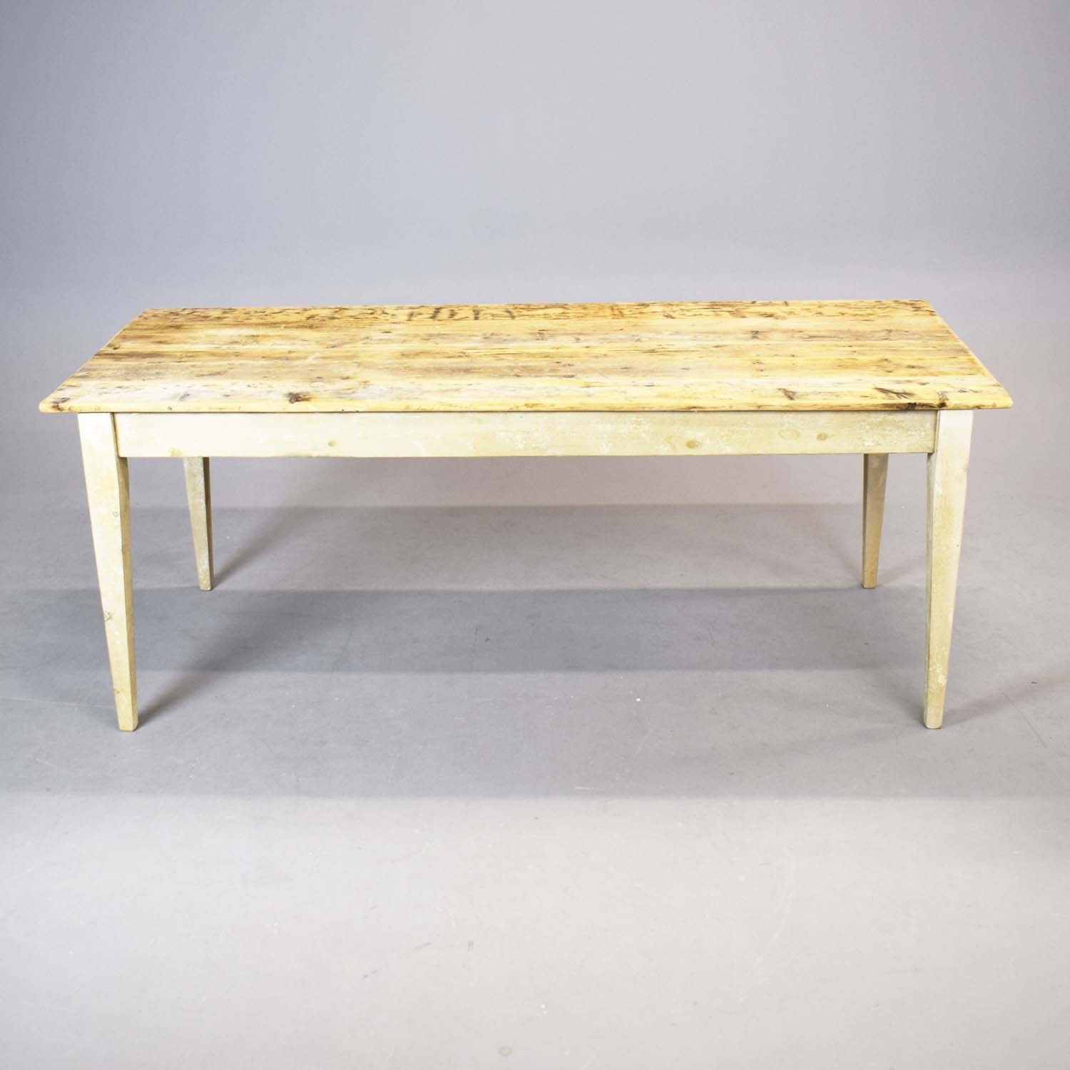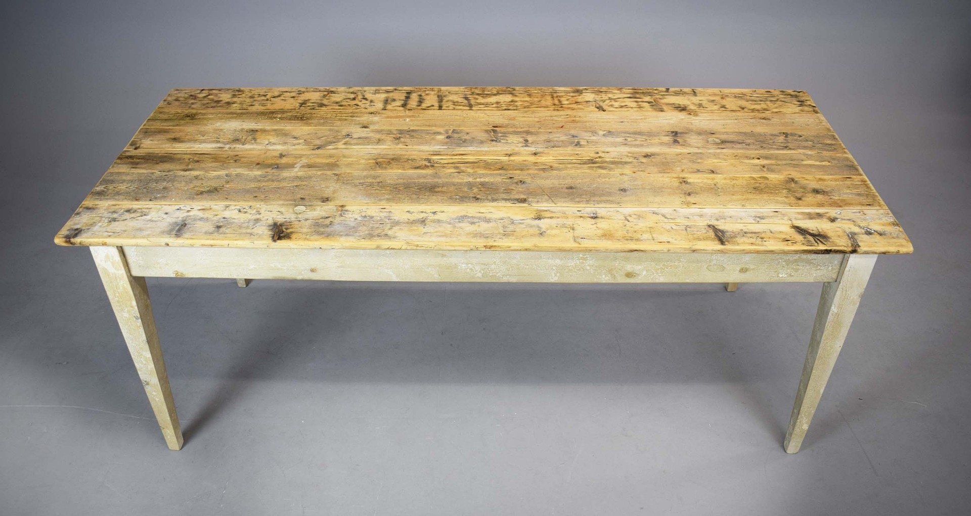 FRENCH FARMHOUSE TABLE. with scrubbed pine plank top on painted base, 76cm H x 183cm W x 76cm D.