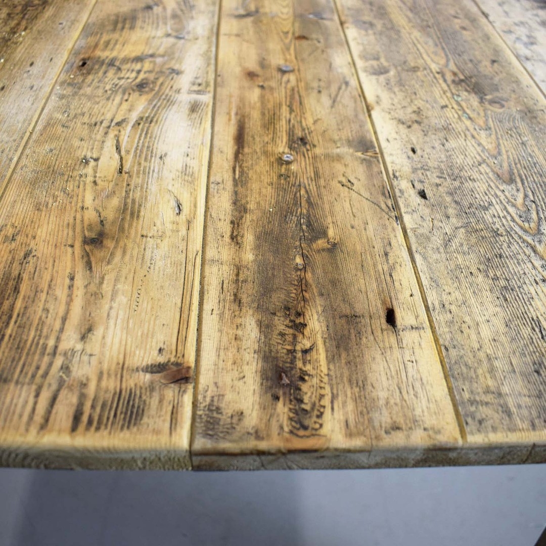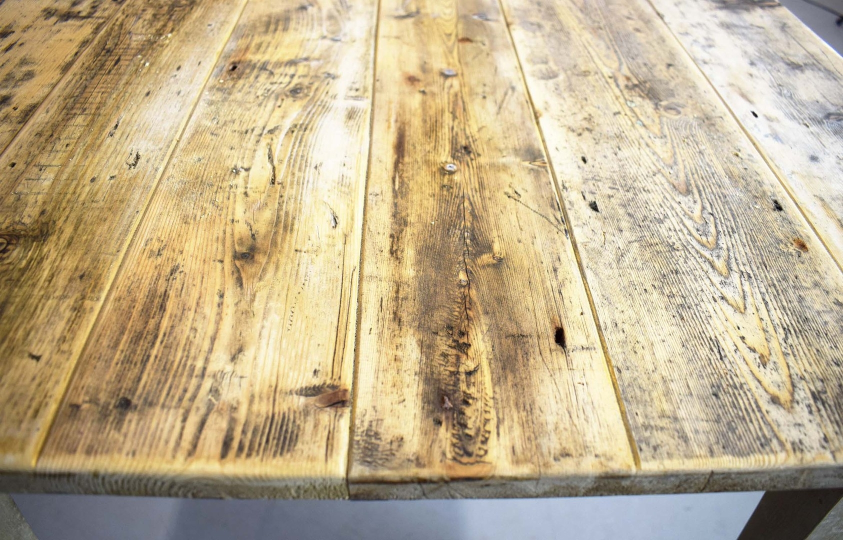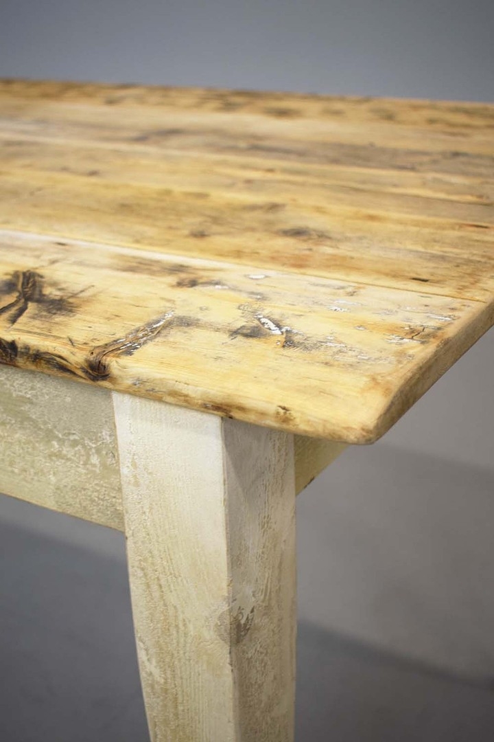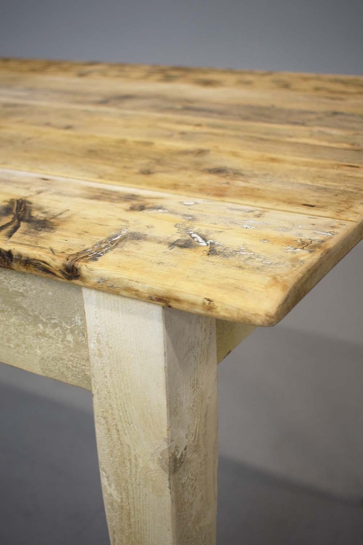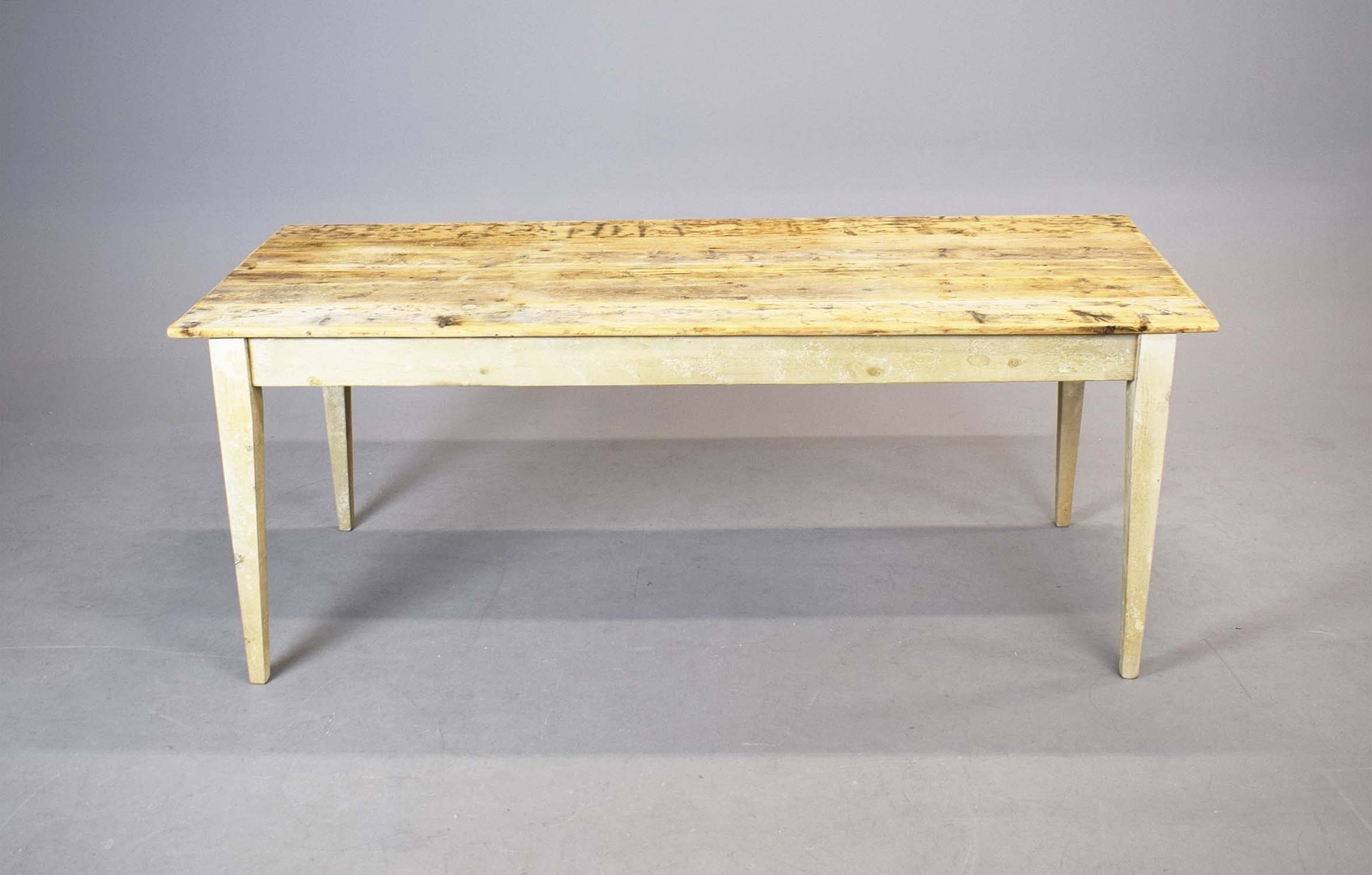 FRENCH FARMHOUSE TABLE. with scrubbed pine plank top on painted base, 76cm H x 183cm W x 76cm D.