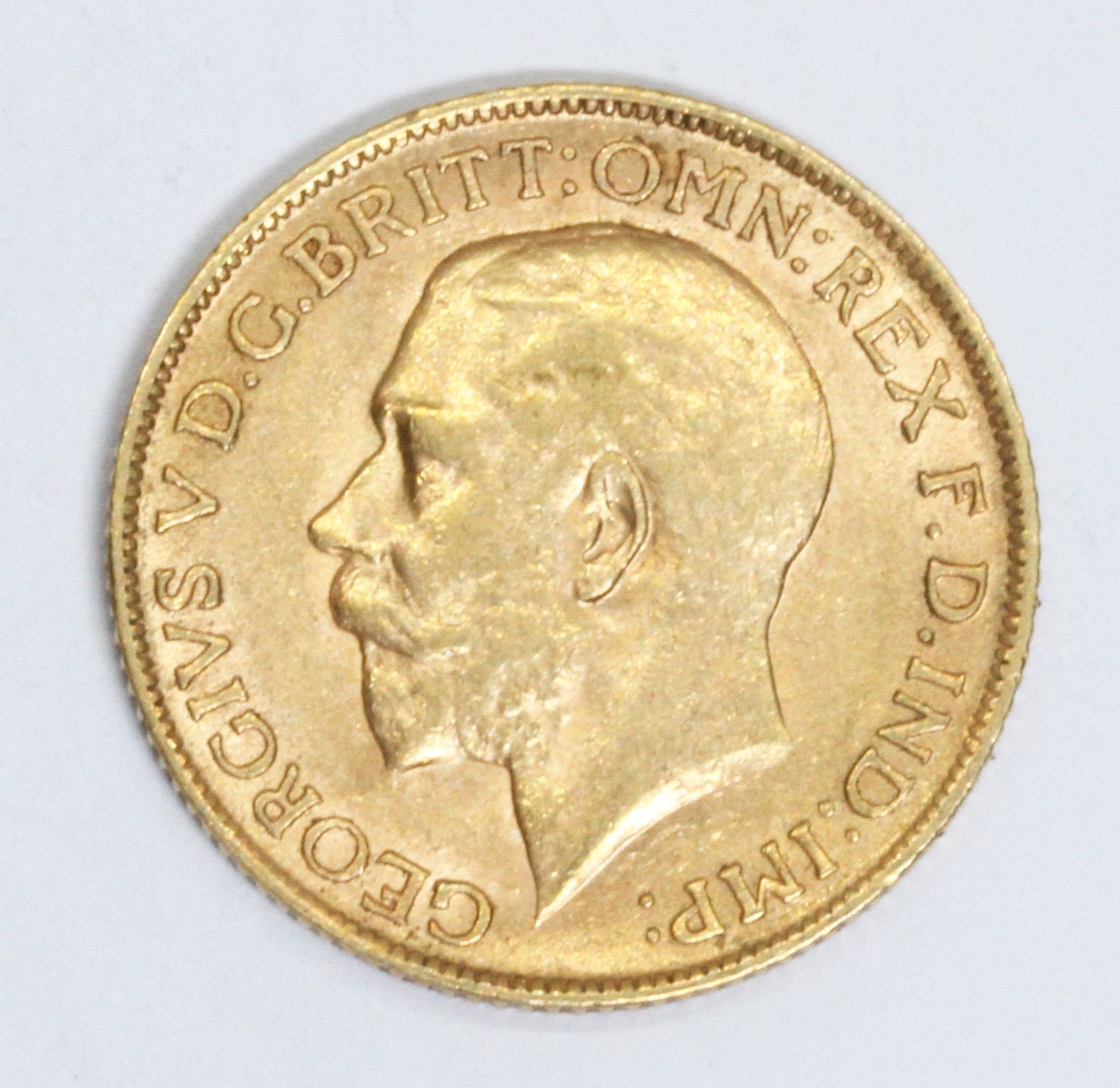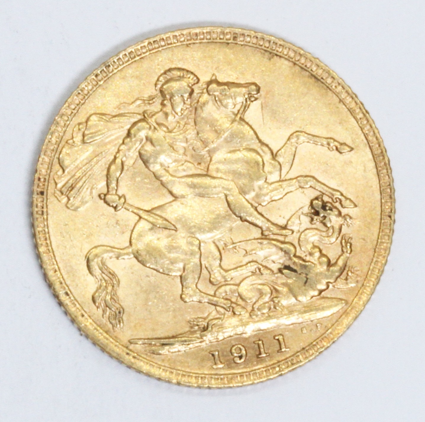 George V 1911 sovereign, 10% buyer's premium (inclusive of VAT), normal online bidding fees apply.