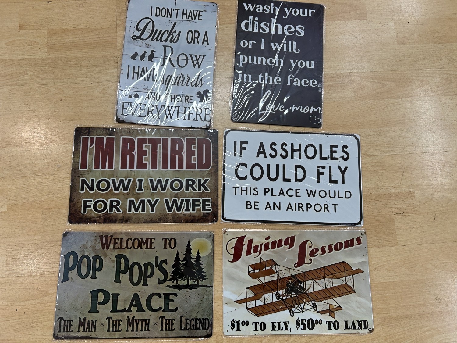 6 x Tin Plate 'Comical' Signs - 12" x 8"