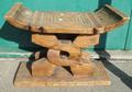 Asian/African Style Carved Wood Seat, scoop carved top with geometric carving, rectangular base with scrolling supports