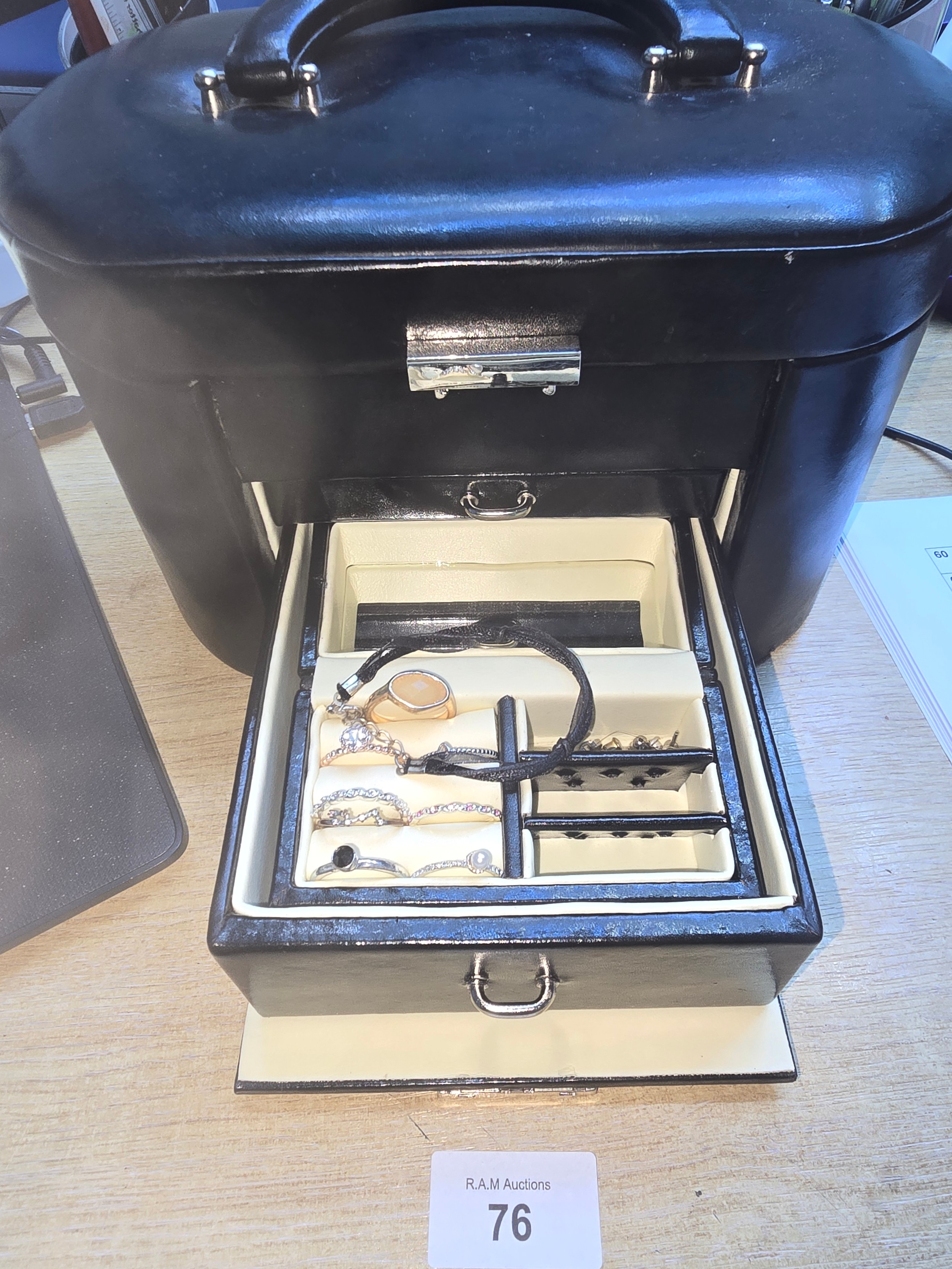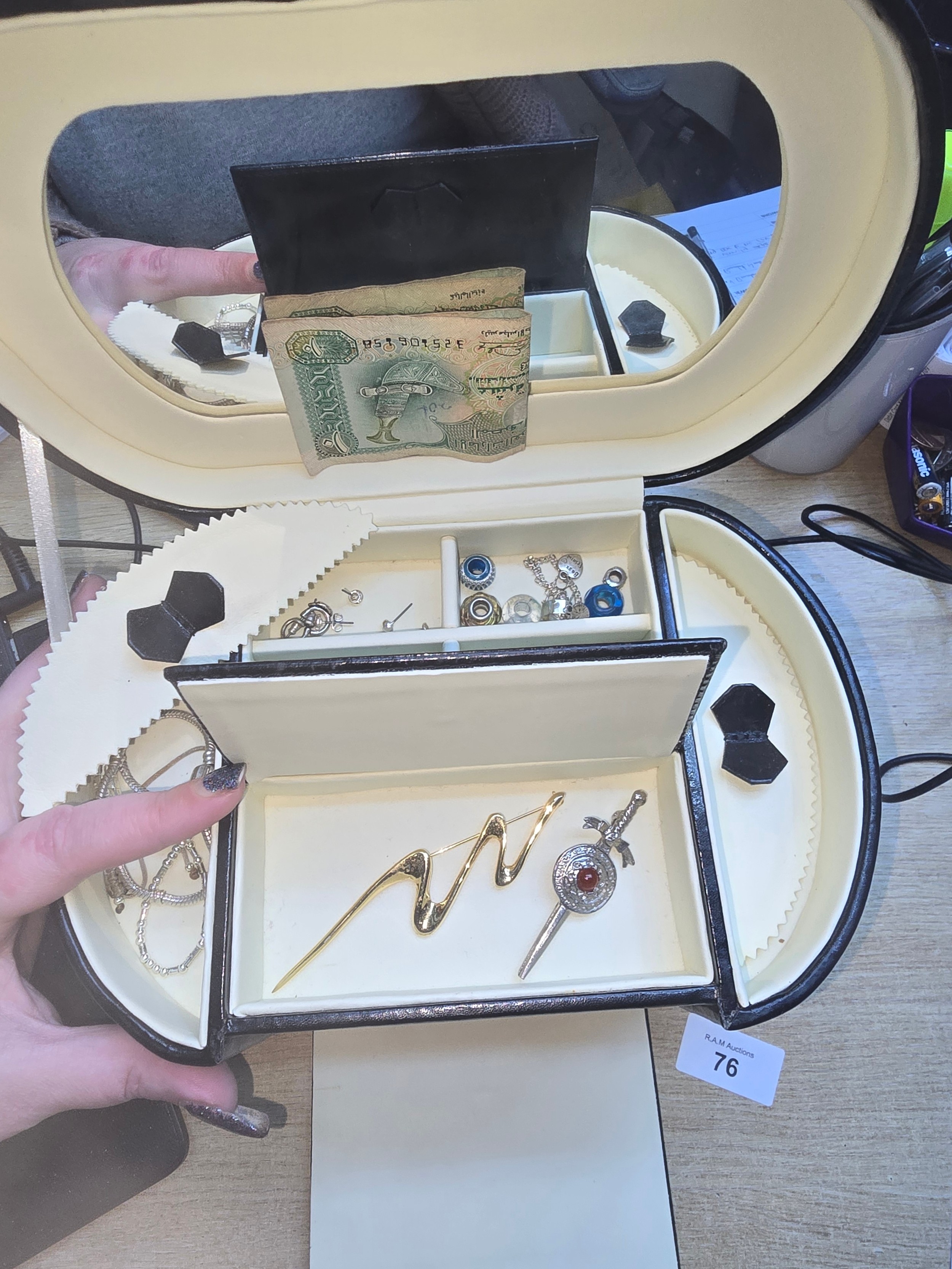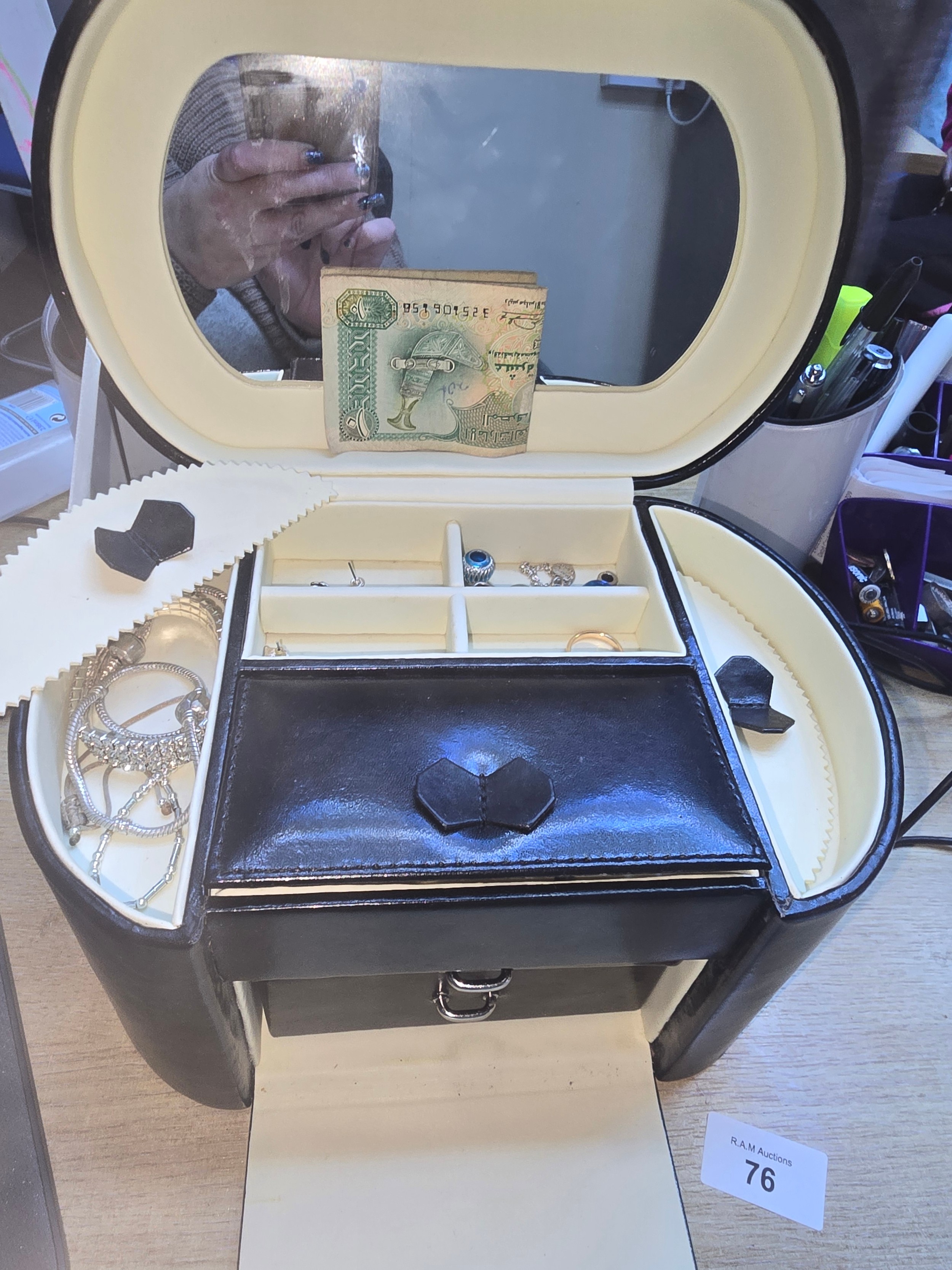 Black Vanity Style Jewellery Box To Include Fashion and Vintage Jewellery and a Bank Note