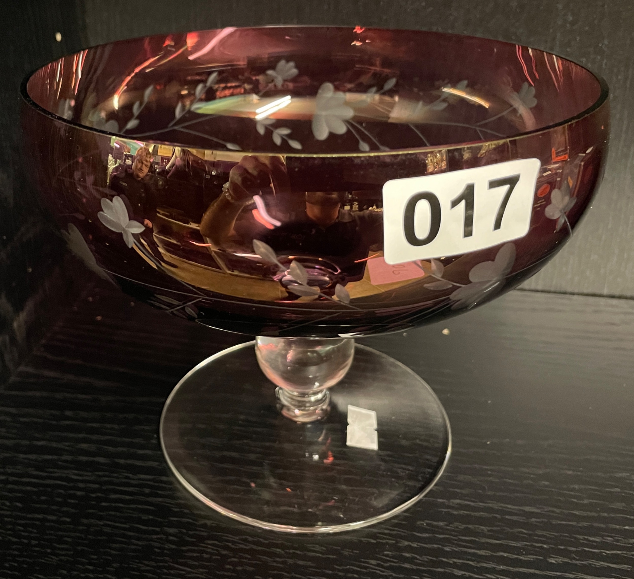 Etched cranberry glass bars