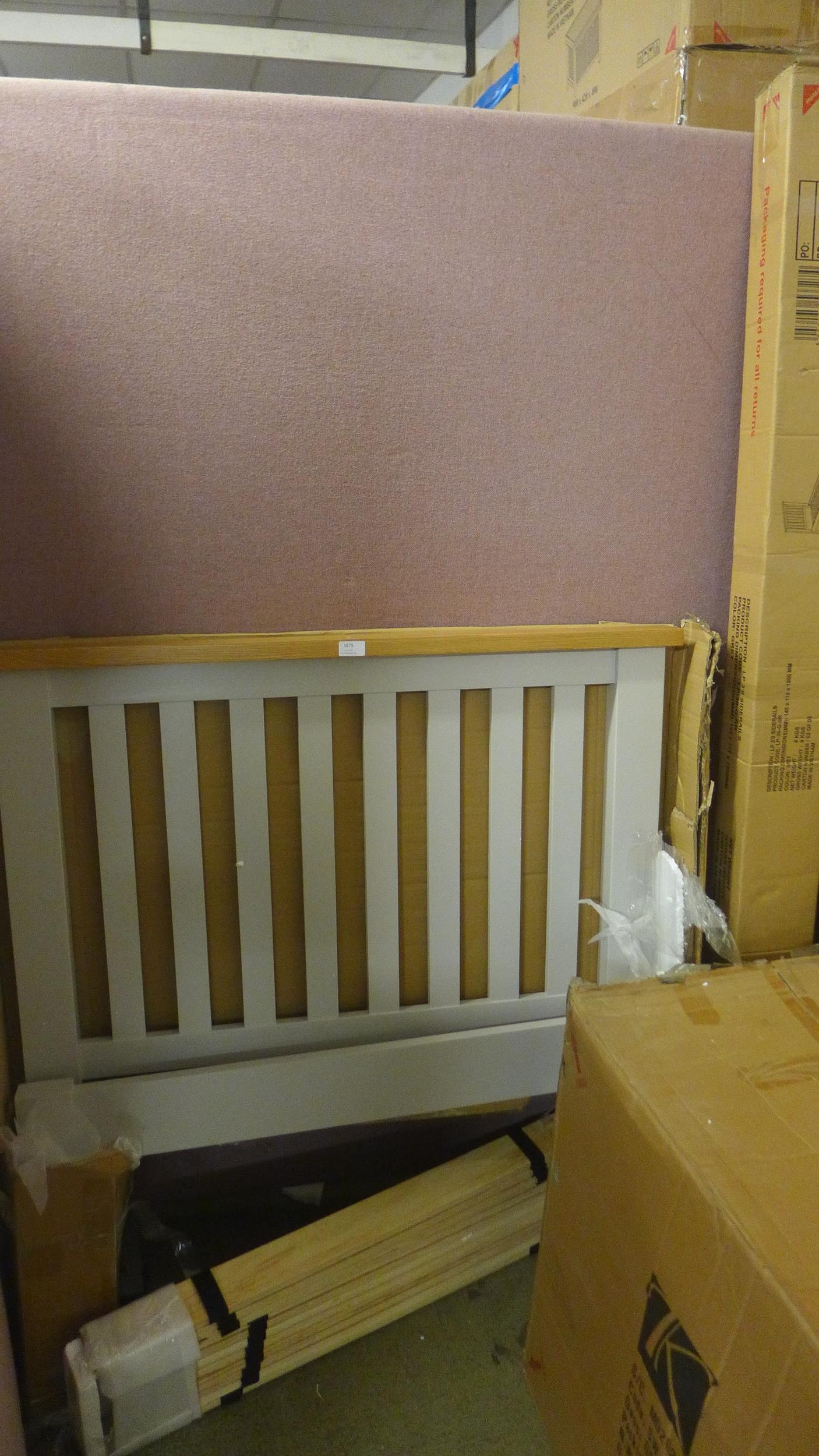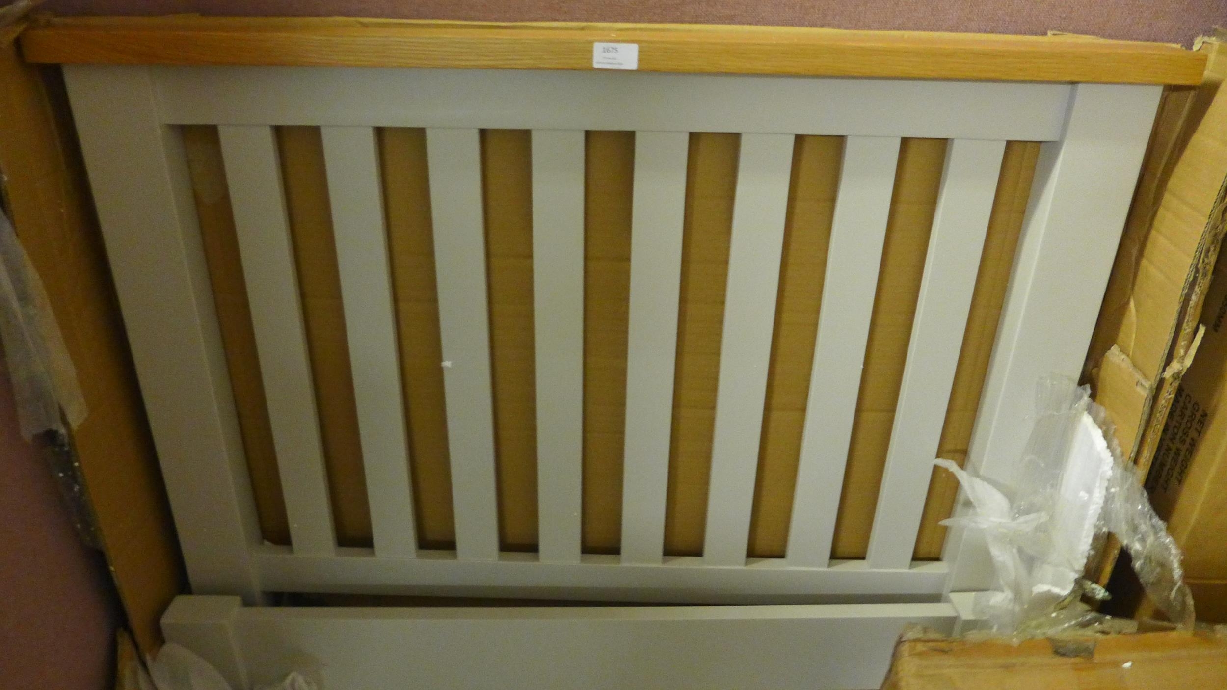A grey painted and oak single bed frame, part boxed, not checked *this lot is subject to VAT
