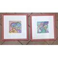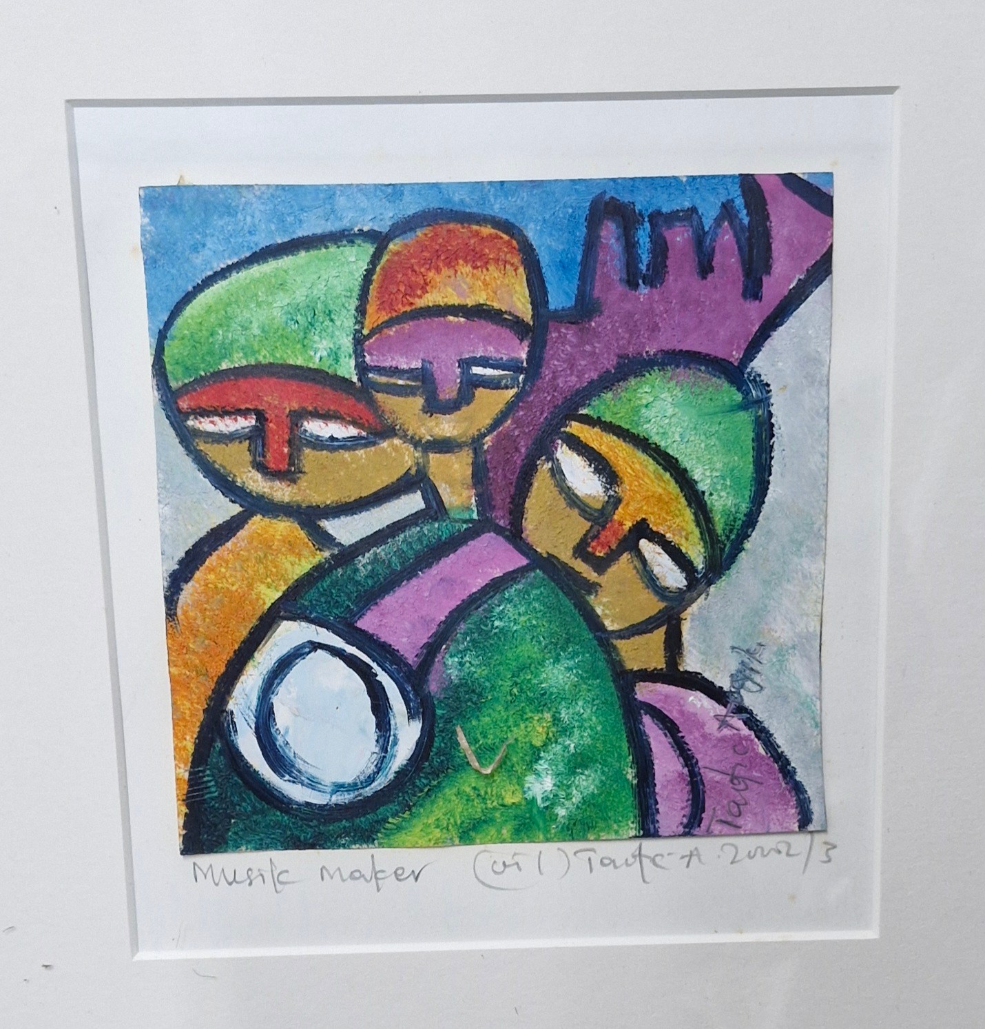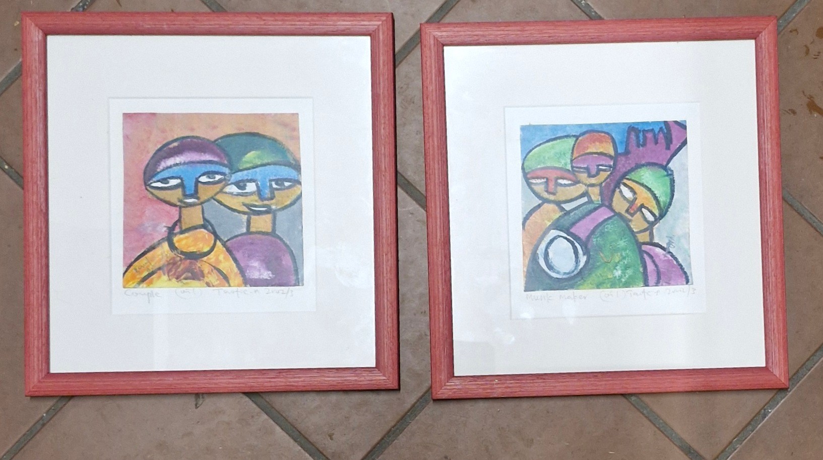 two paintings by Taofic Adeyinka traditionalist painter African culture, here depicting the Yoruba tribe.