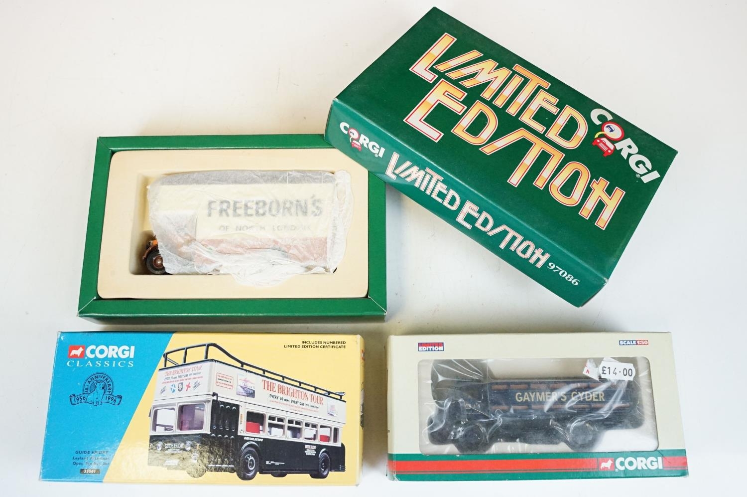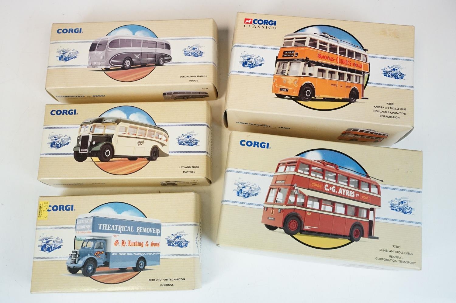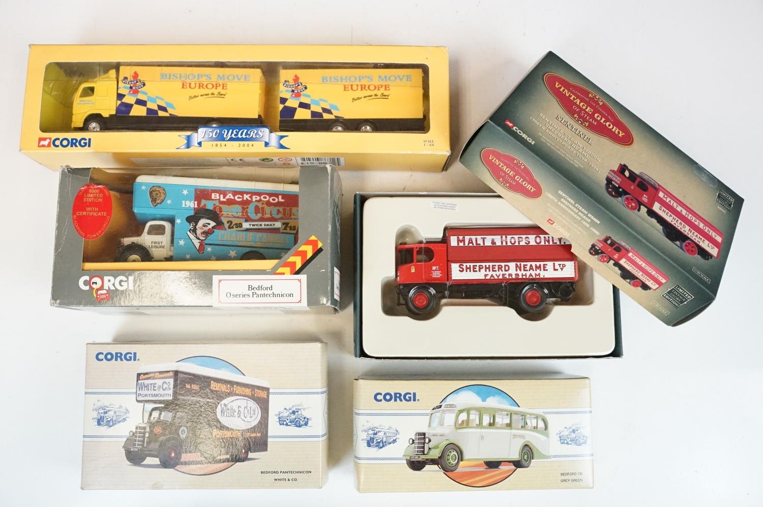 23 Boxed Corgi diecast models to include 6 x Commercials, 3 x Public Transport, Corgi Original Omnibus Bus Operators In Britain, Corgi Classics 33501, The Beatles Collection 35006, Vintage Glory Of Steam 80003, 150 Years Bishop & Sons TY86712, ltd edn Road Transport Heritage The Golden Years CC13310, etc, diecast ex, boxes vg overall