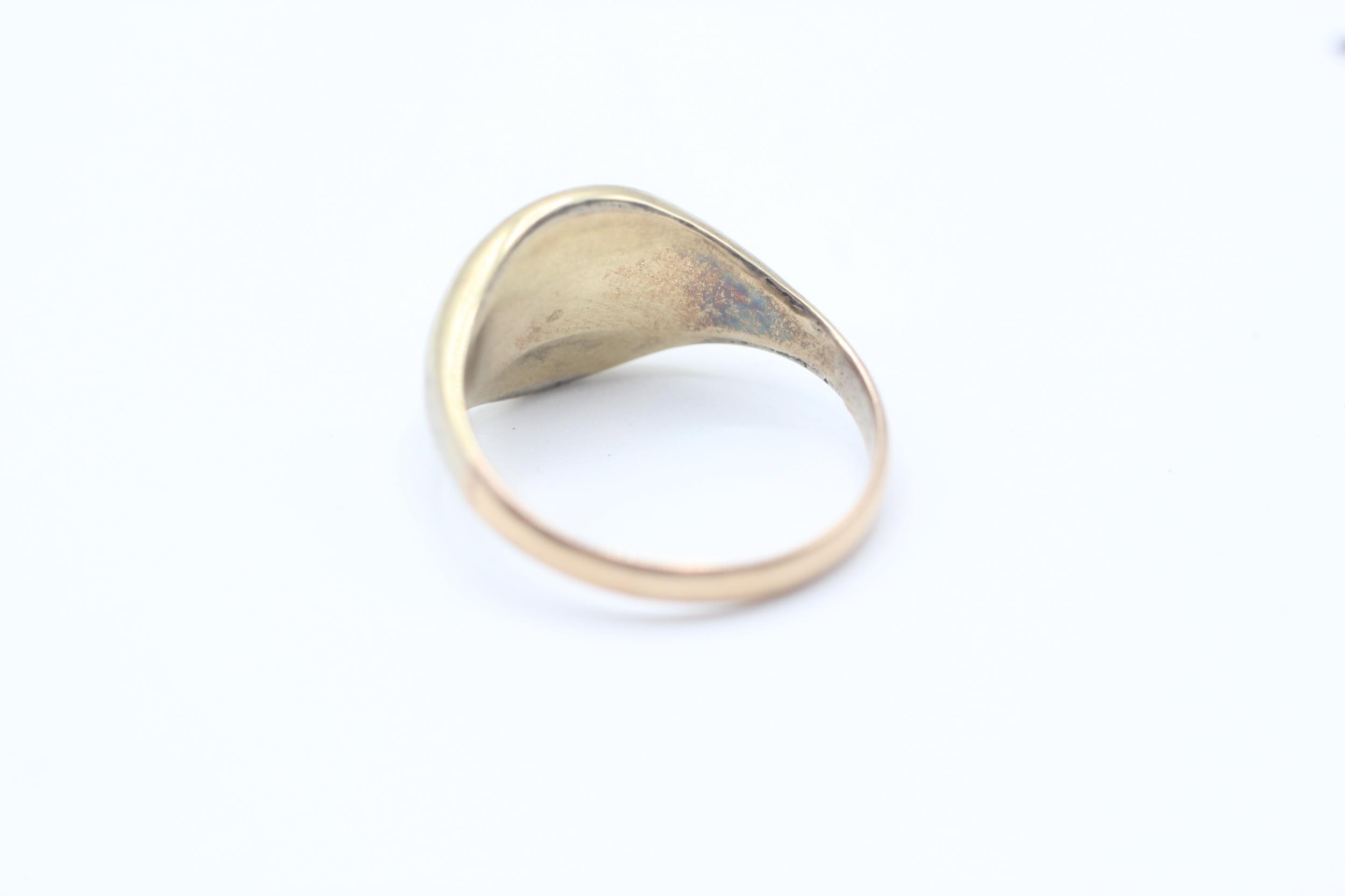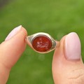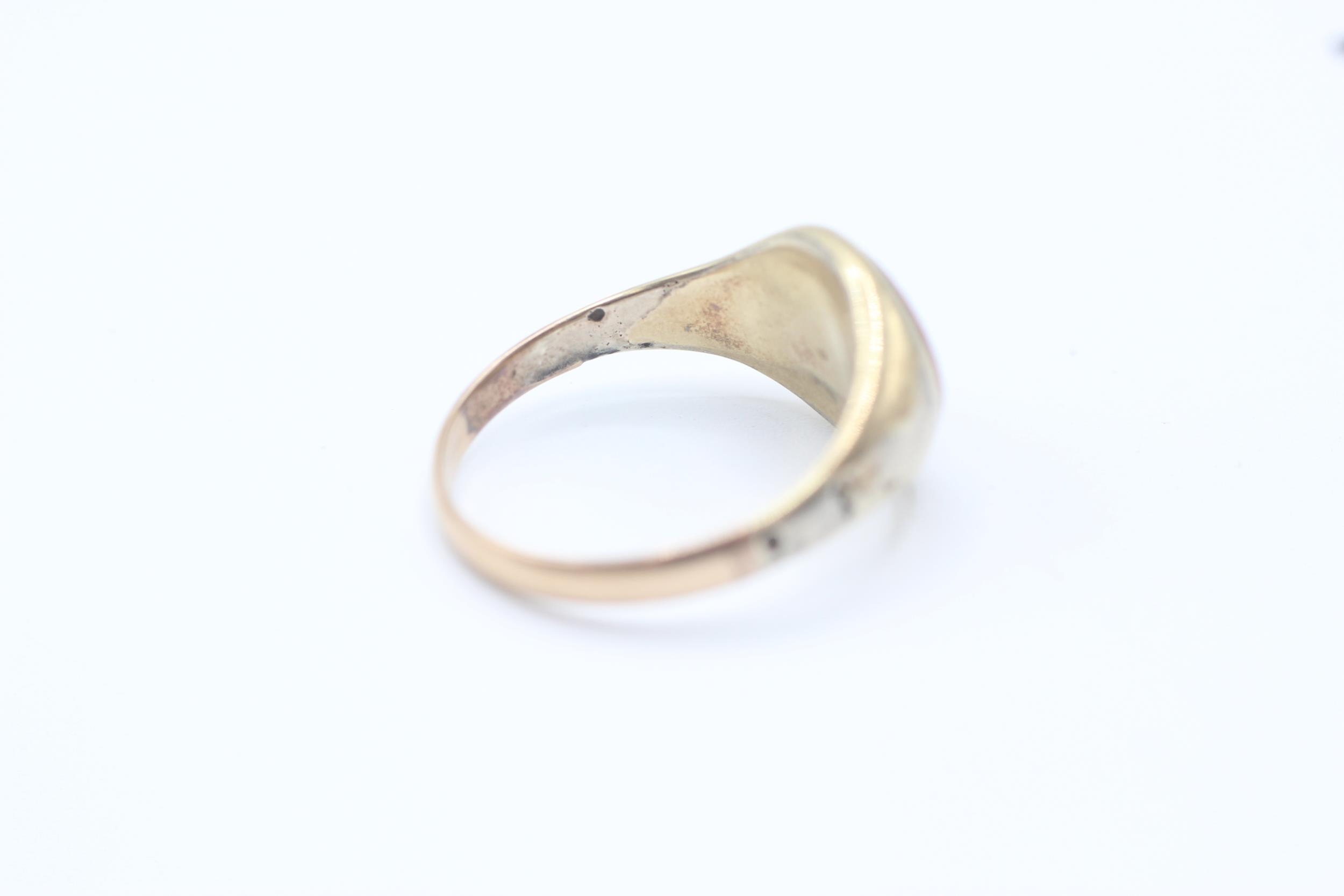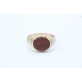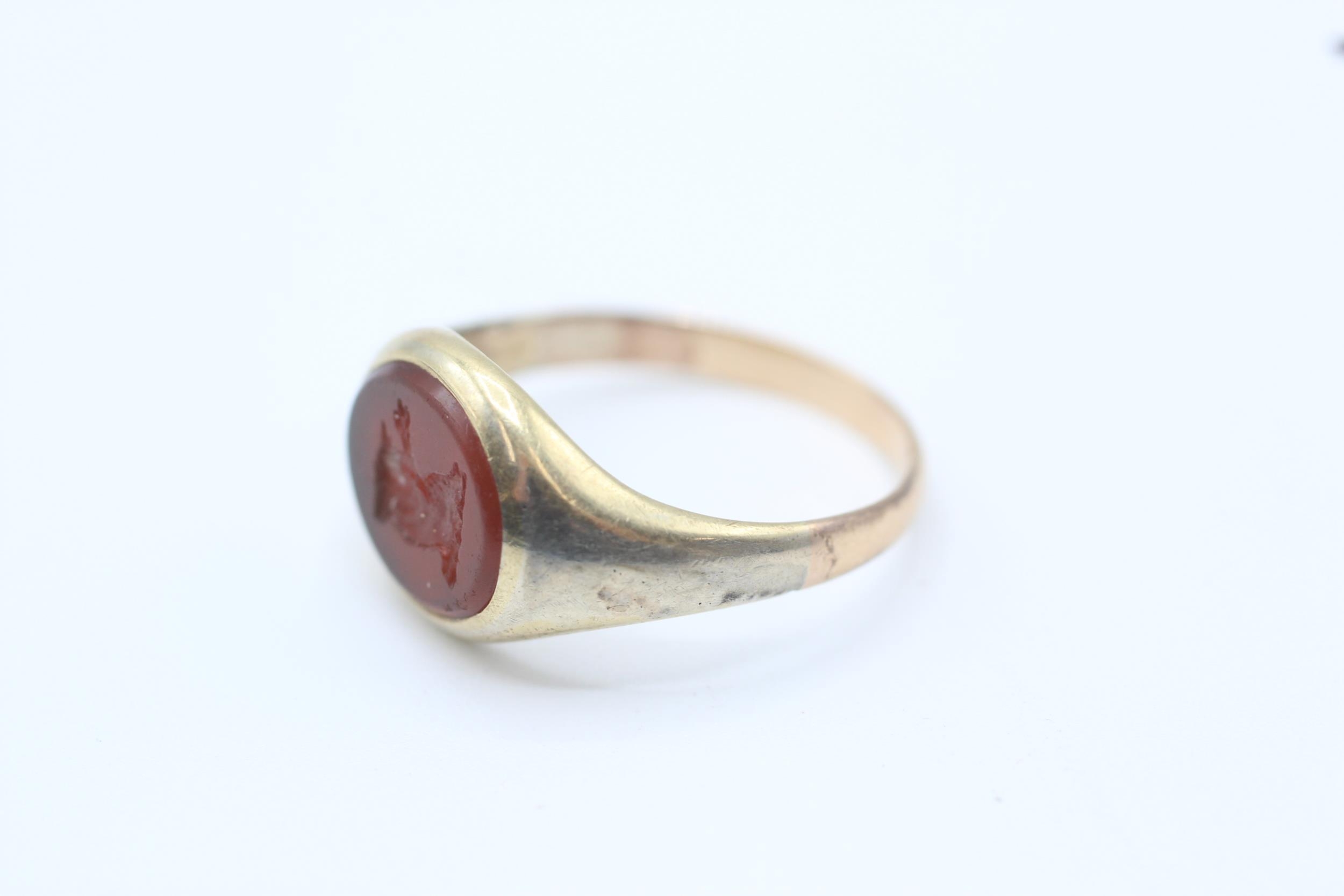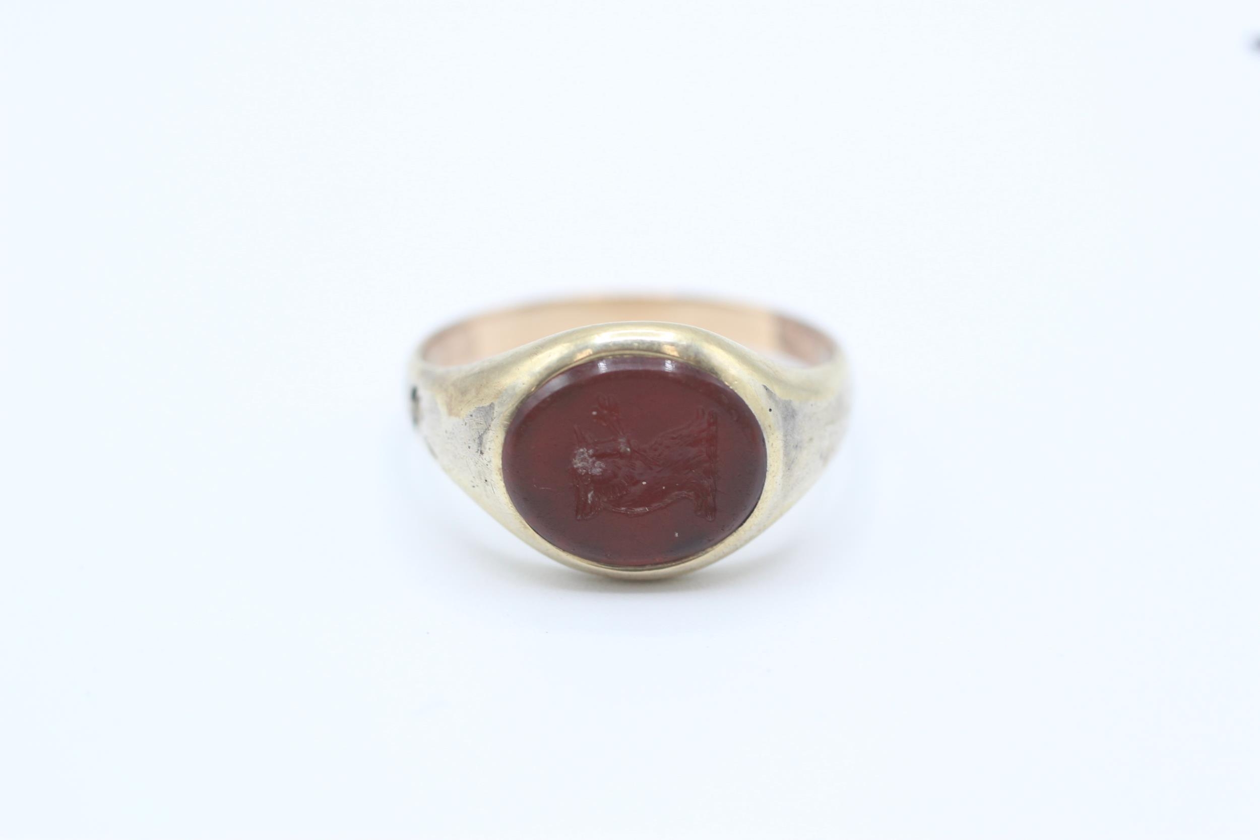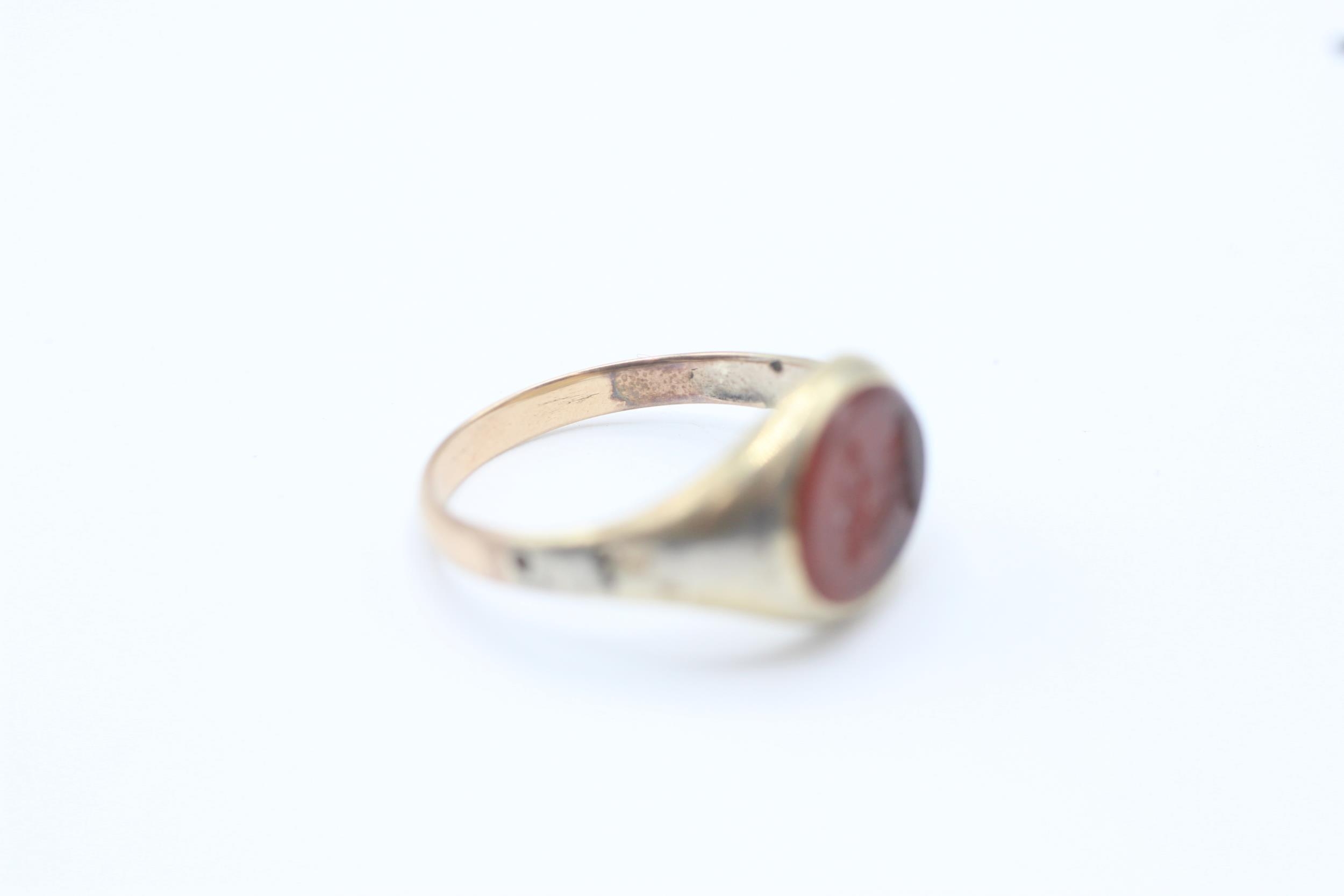 14ct gold band and 5ct gold headed antique carnelian bull intaglio set signet ring - as seen Size O 1/2 3 g