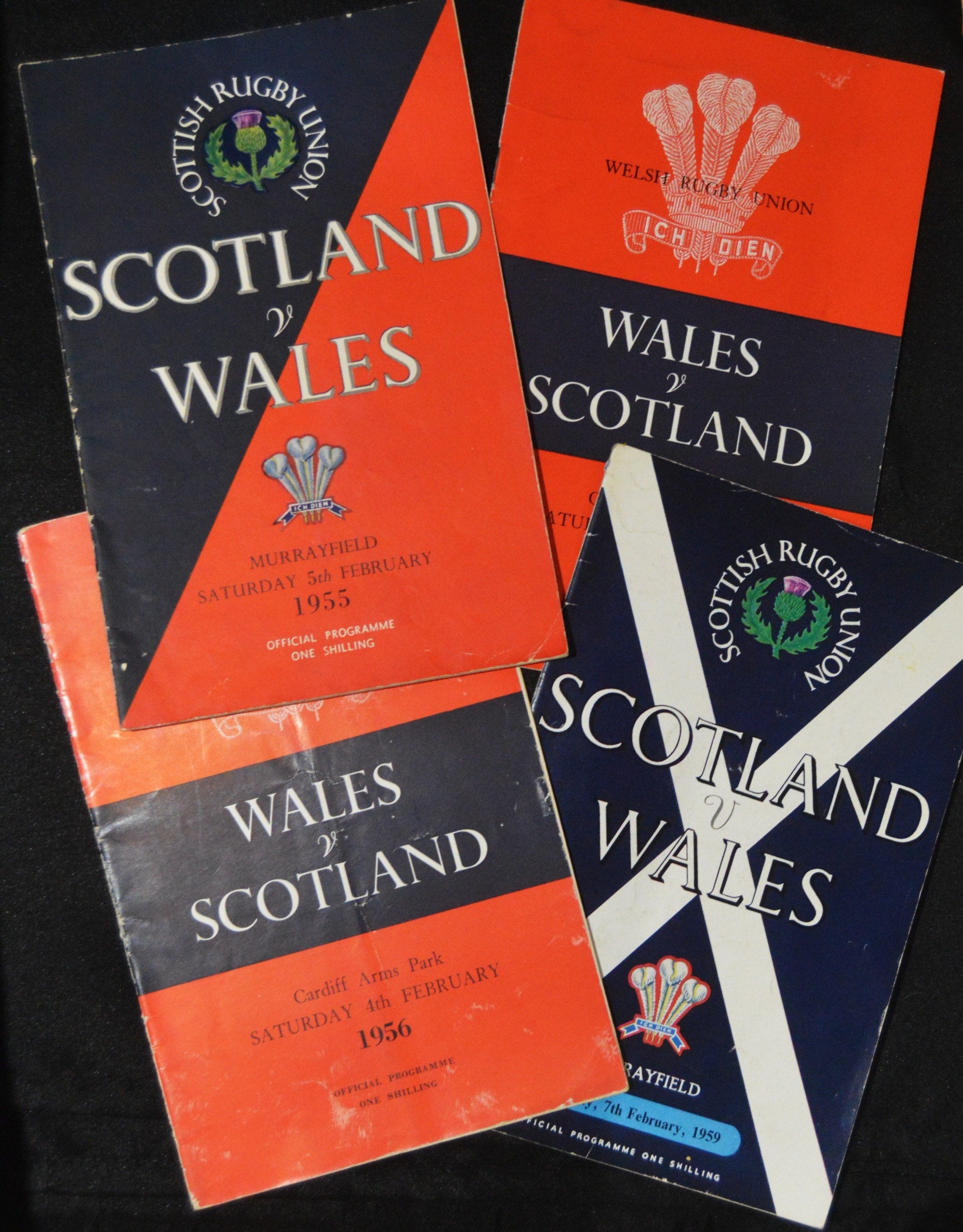 1955-59 Wales and Scotland Rugby Programmes (4): At Murrayfield 1955, one of the best-looking covers, and 59, and at Cardiff 1956 and 58. G/VG