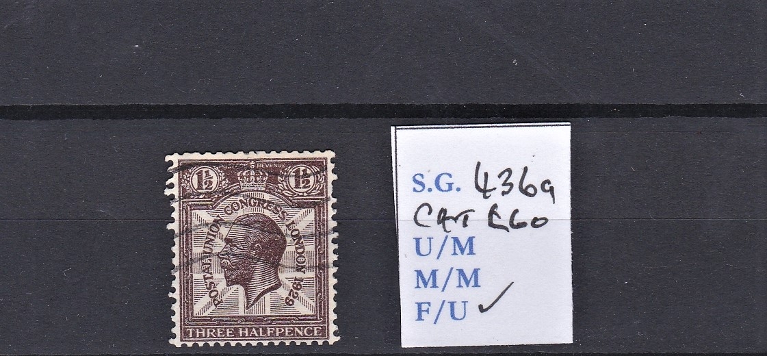 Great Britain 1929 1 1/2d purple brown, UPU. Congress, watermark sideways SG 436a, light used. Cat £60