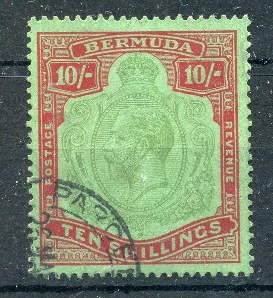 BERMUDA 1924 - 32 10/- green & red on pale emerald fu with a scarce parcel cancel. SG 92. Cat £250