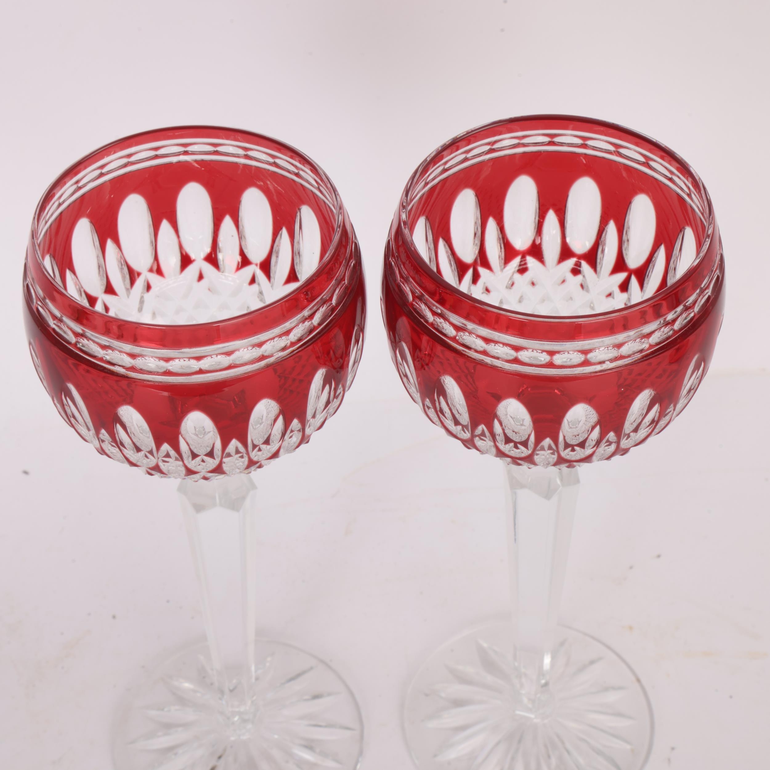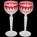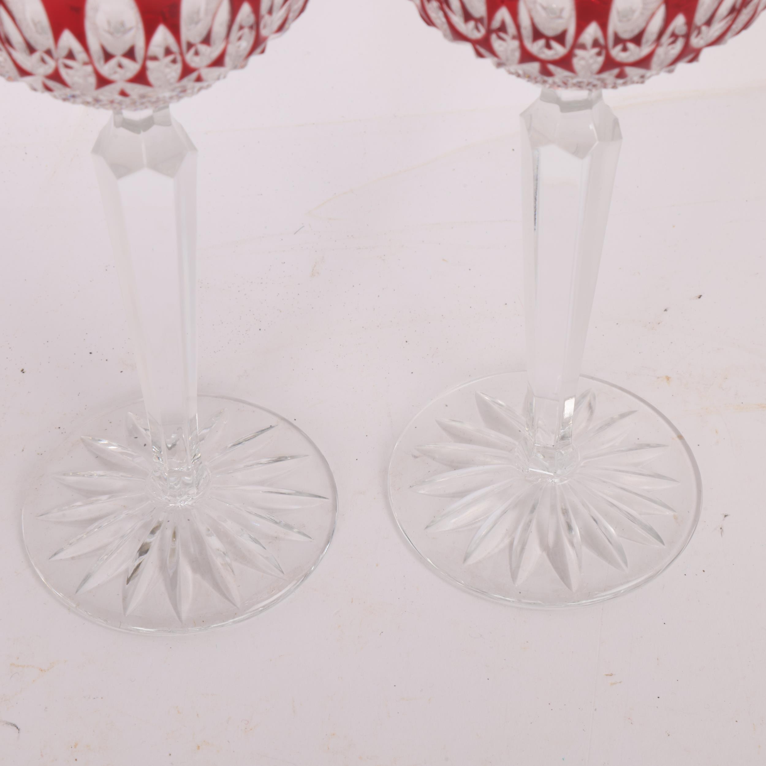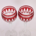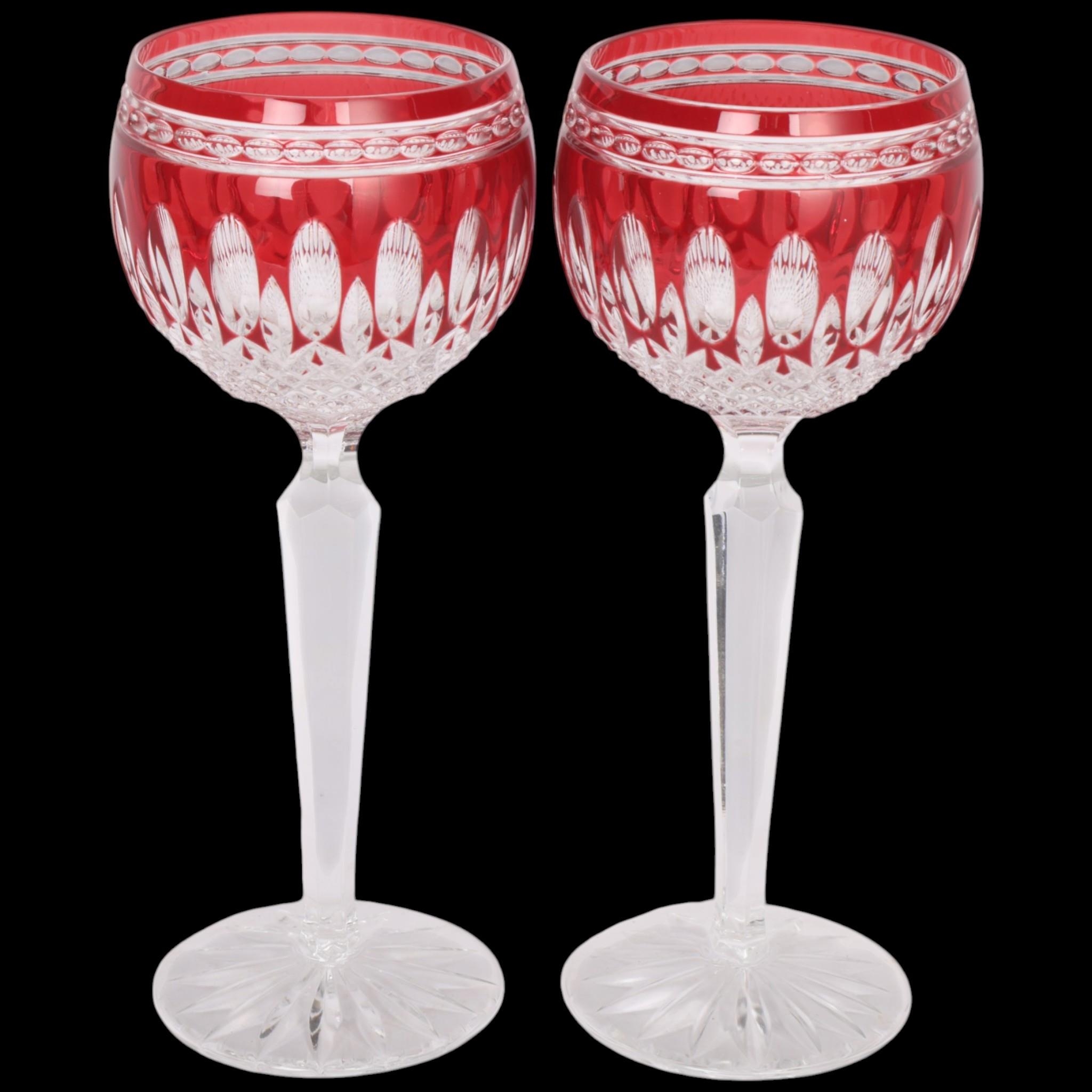 A pair of Waterford ruby overlay glass wine glasses, height 20cm