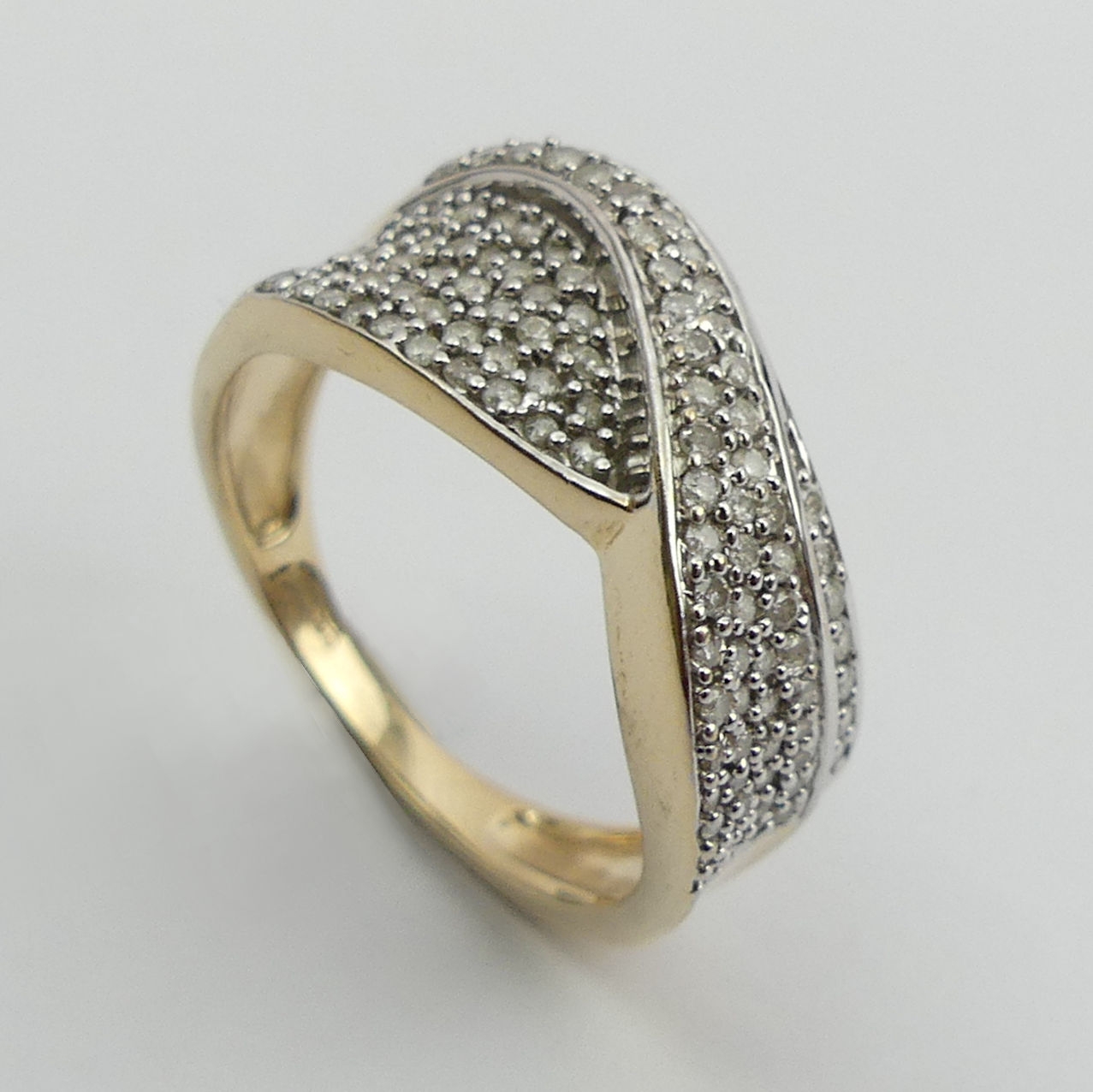 9ct gold pave set diamond ring. Size N, 9.2 mm. UK Postage £12.