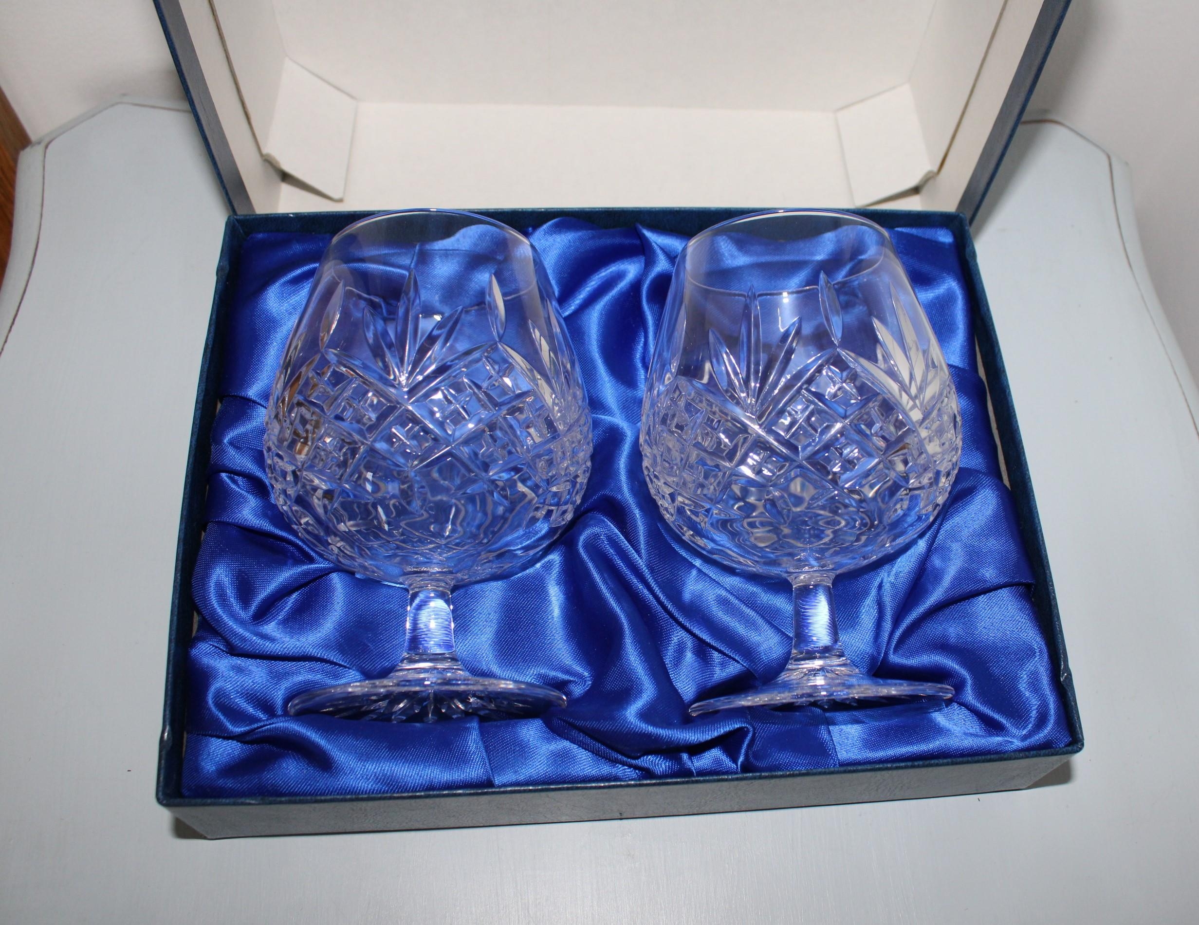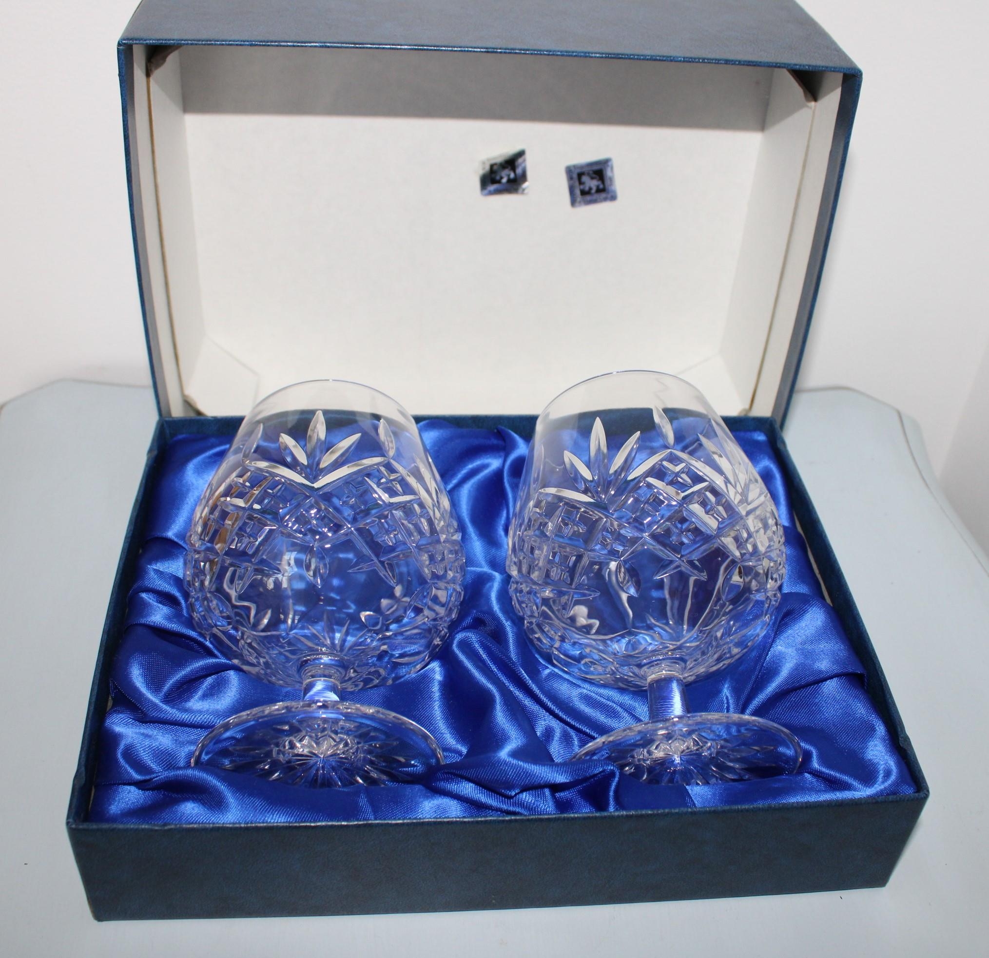 Two Hand Cut Edinburgh International Italian Crystal Glasses In Box.