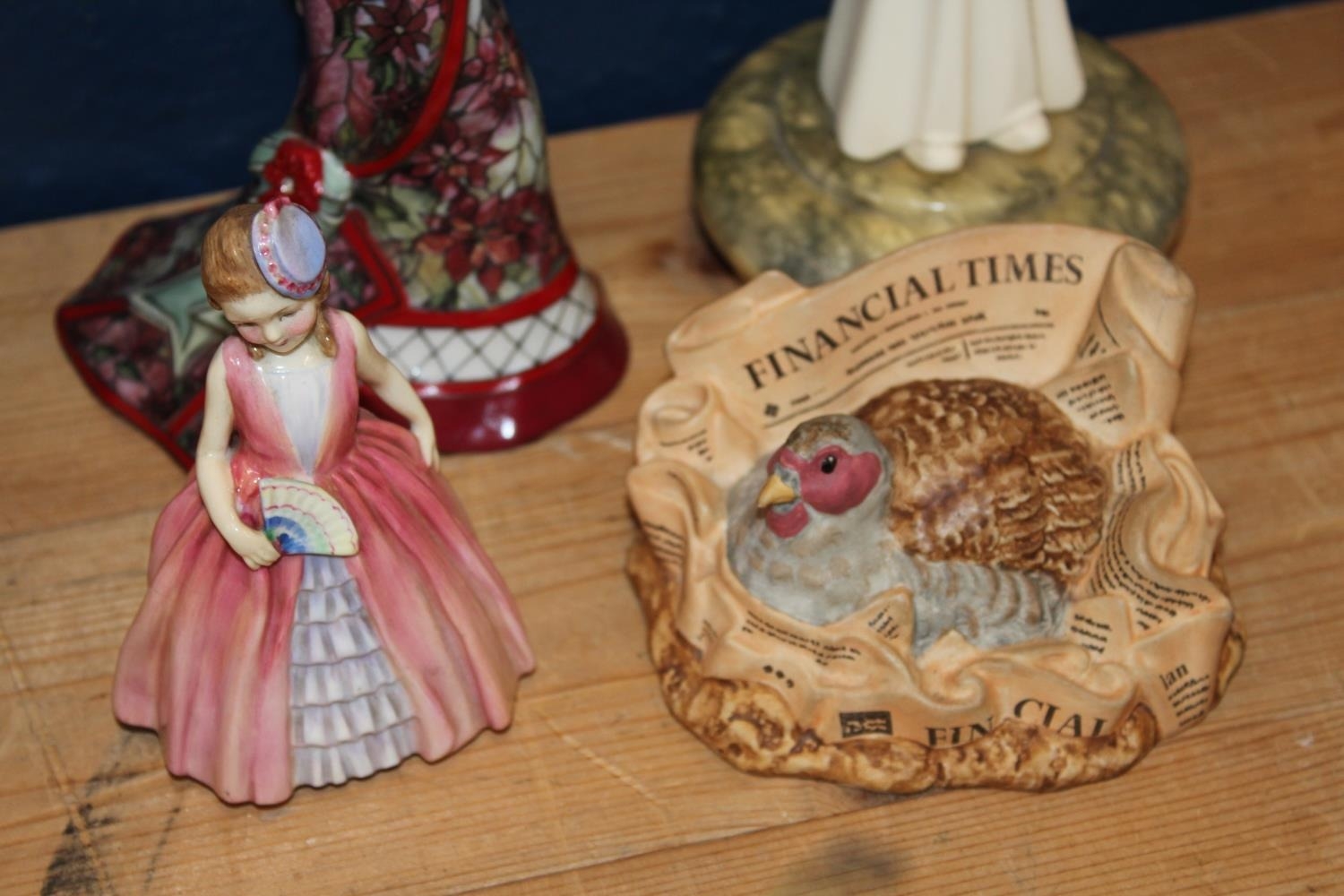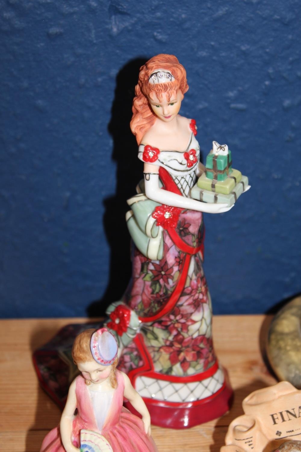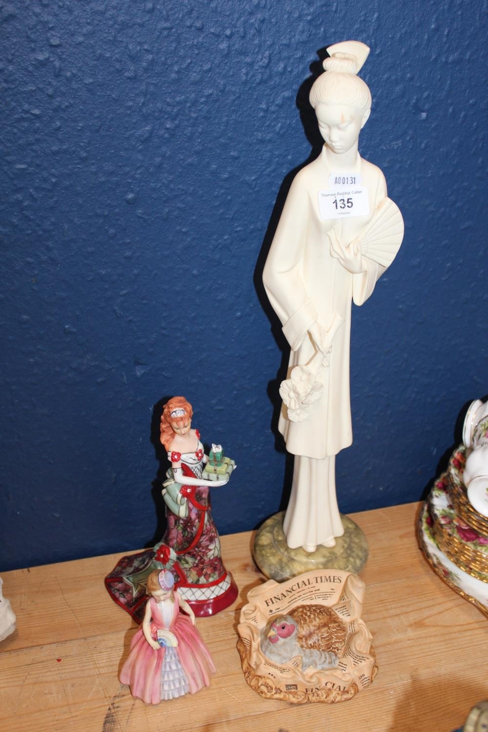 Royal Doulton HN1799 Nana figurine, a Royal Doulton Partridge in an FT limited edition model, a Bradford Exchange Thomas Kinkade Classic Inspirations Holiday Glamour figure and an Italian A Gianelli Geisha figure on marble base.