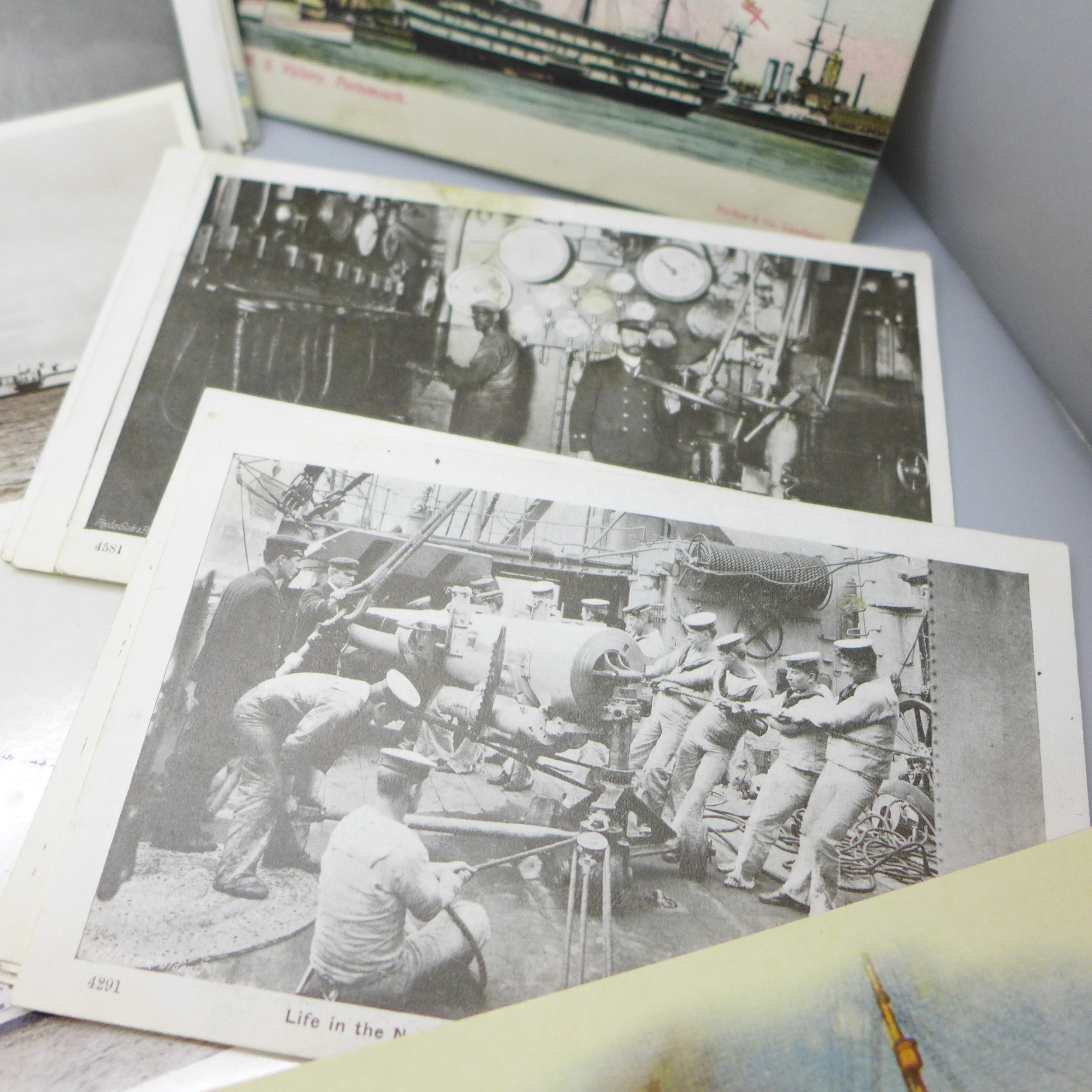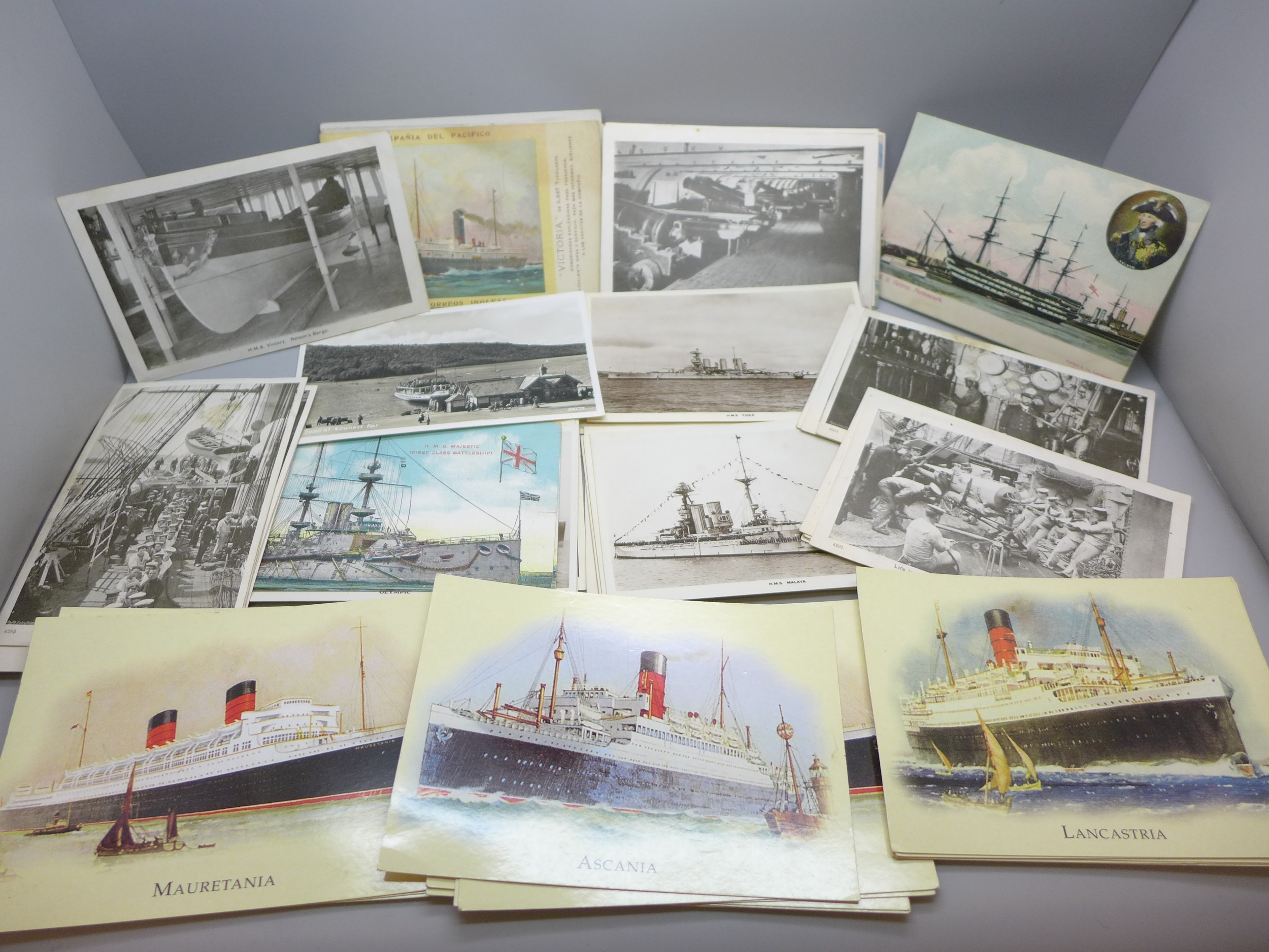 A collection of over 60 shipping and naval related postcards