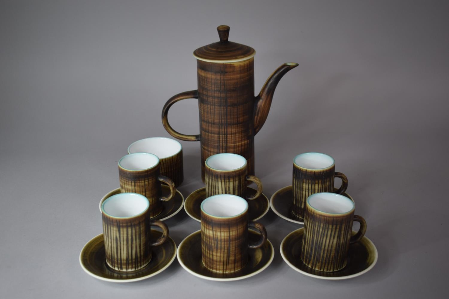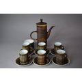 A Stoneware Coffee Set to Comprise Coffee Pot, Six Cans, Saucers and Sugar Bowl