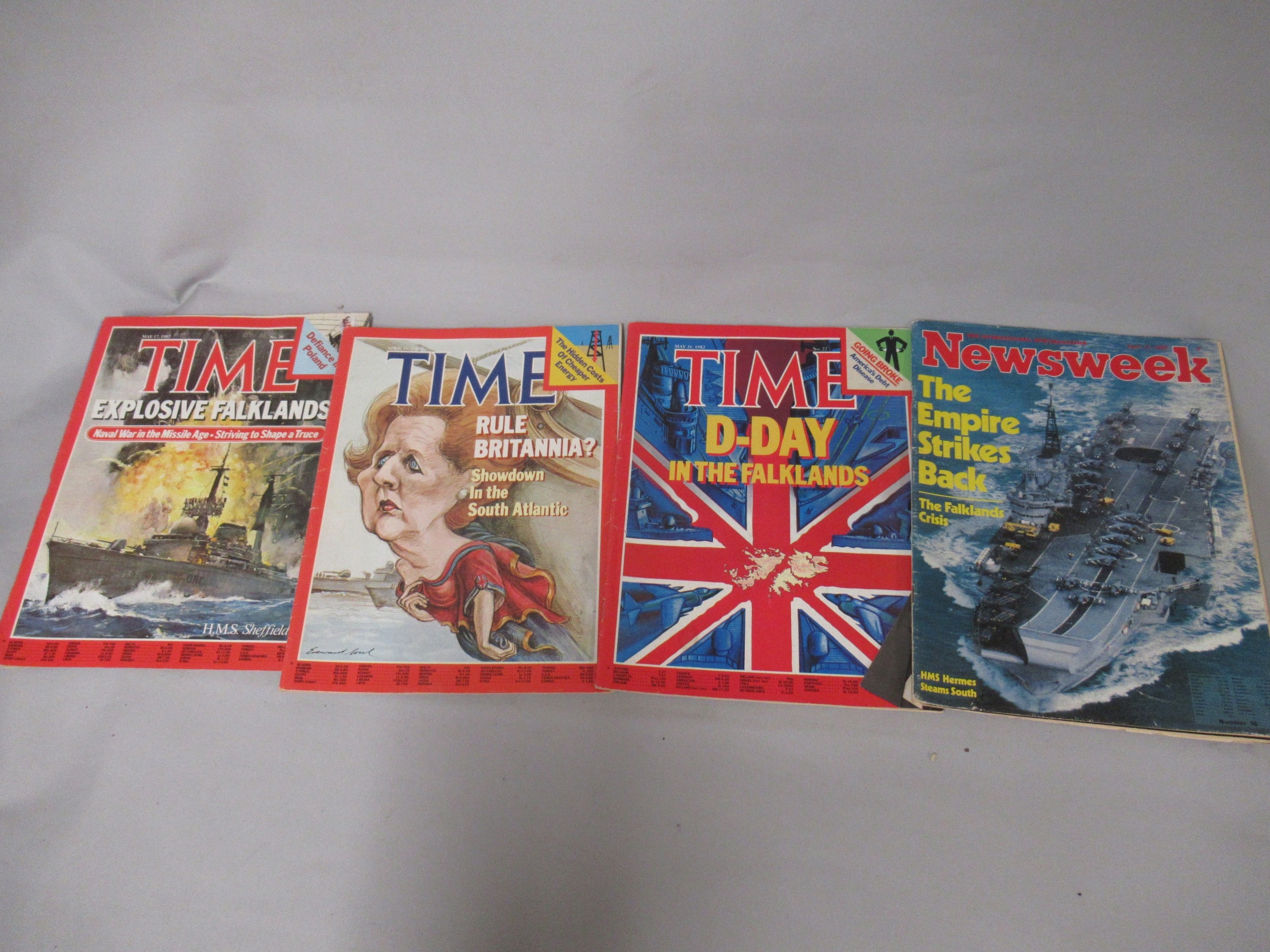 Three 1982 Time magazines referencing the Falklands war together with a similar copy of Newsweek magazine
