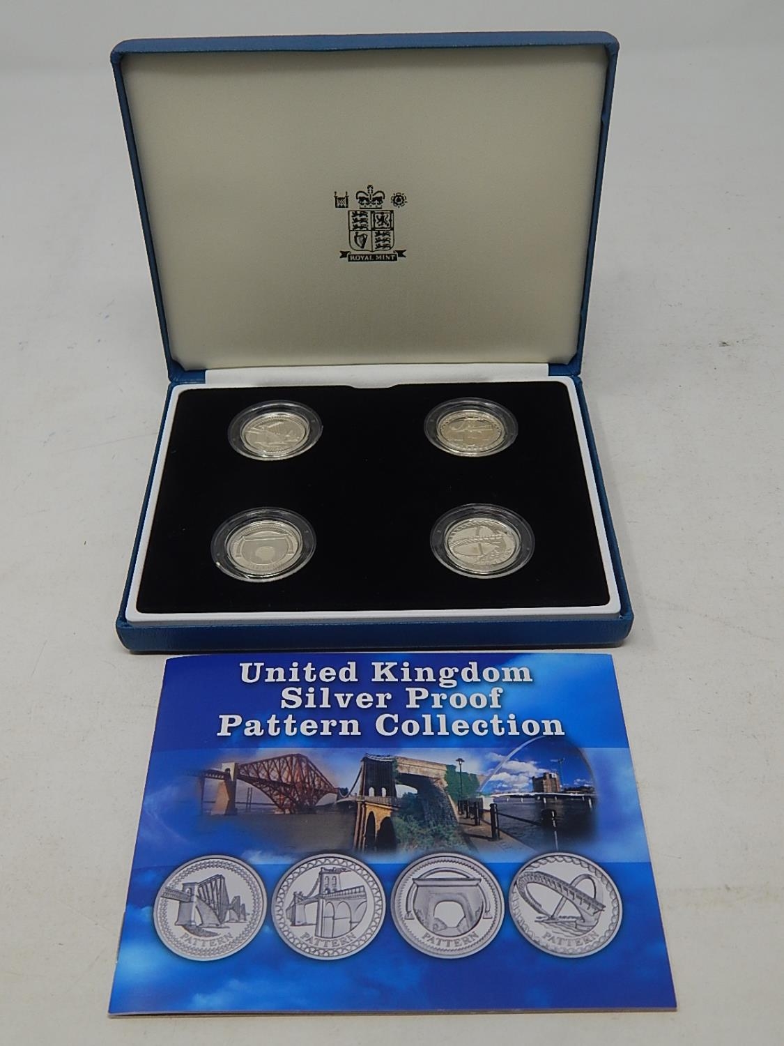 UK Silver Proof Pattern One Pound collection in case with COA about as struck